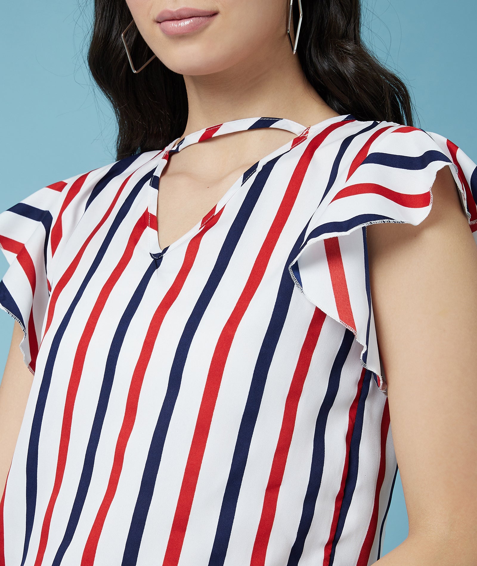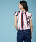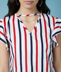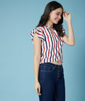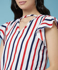 Chimpaaanzee Women Ruffled Sleeve Striped Multicolor Crepe Top