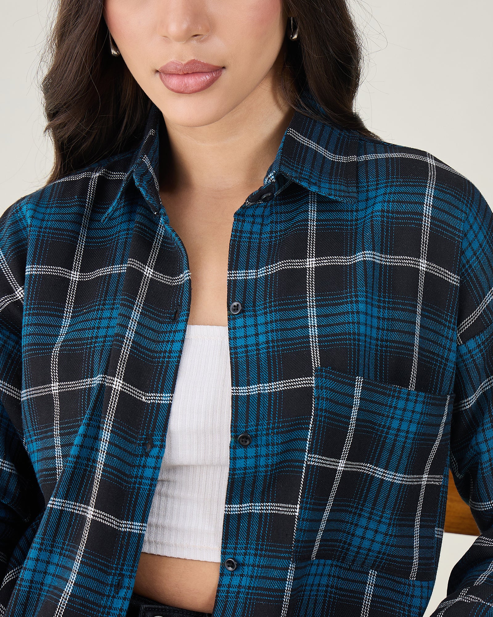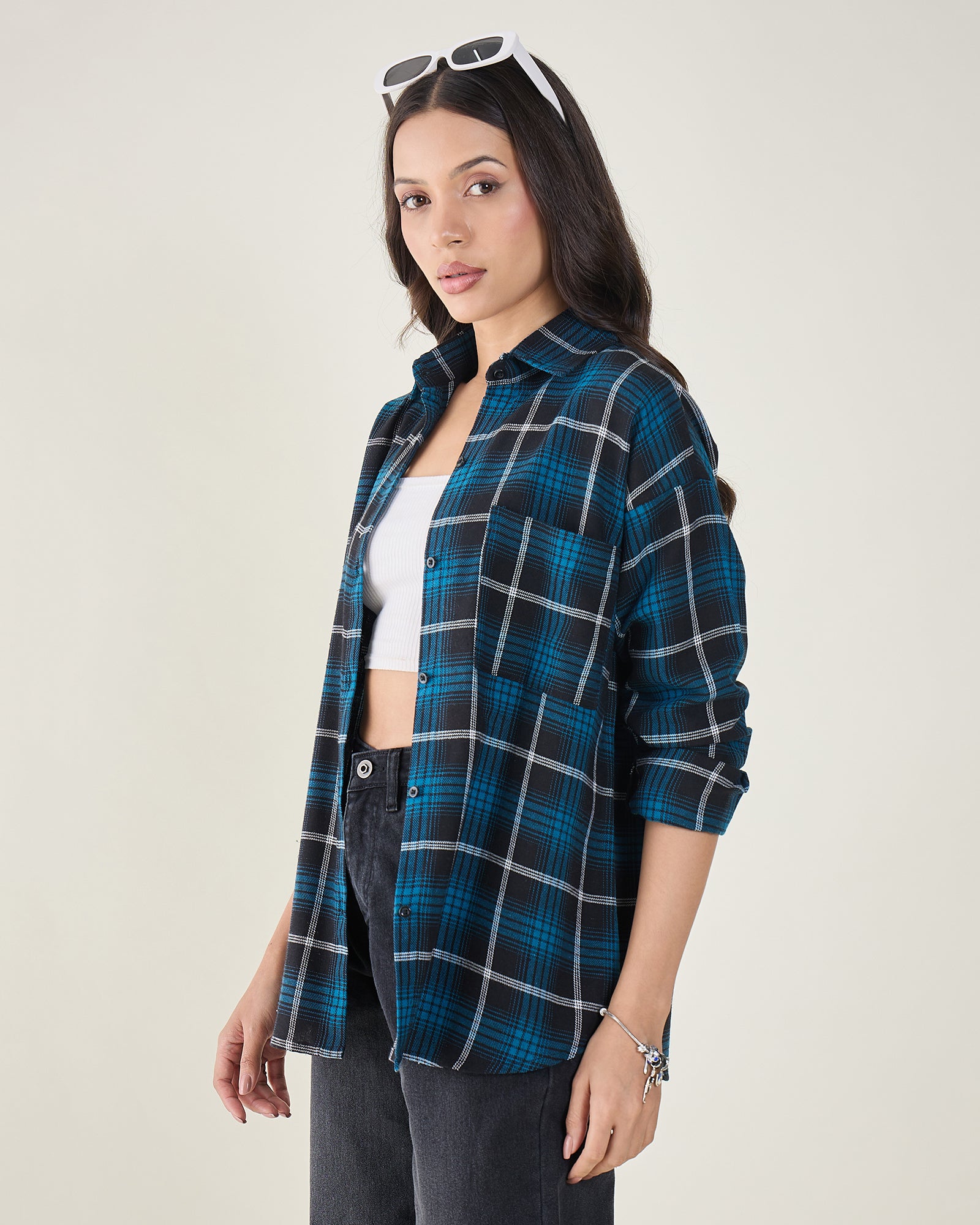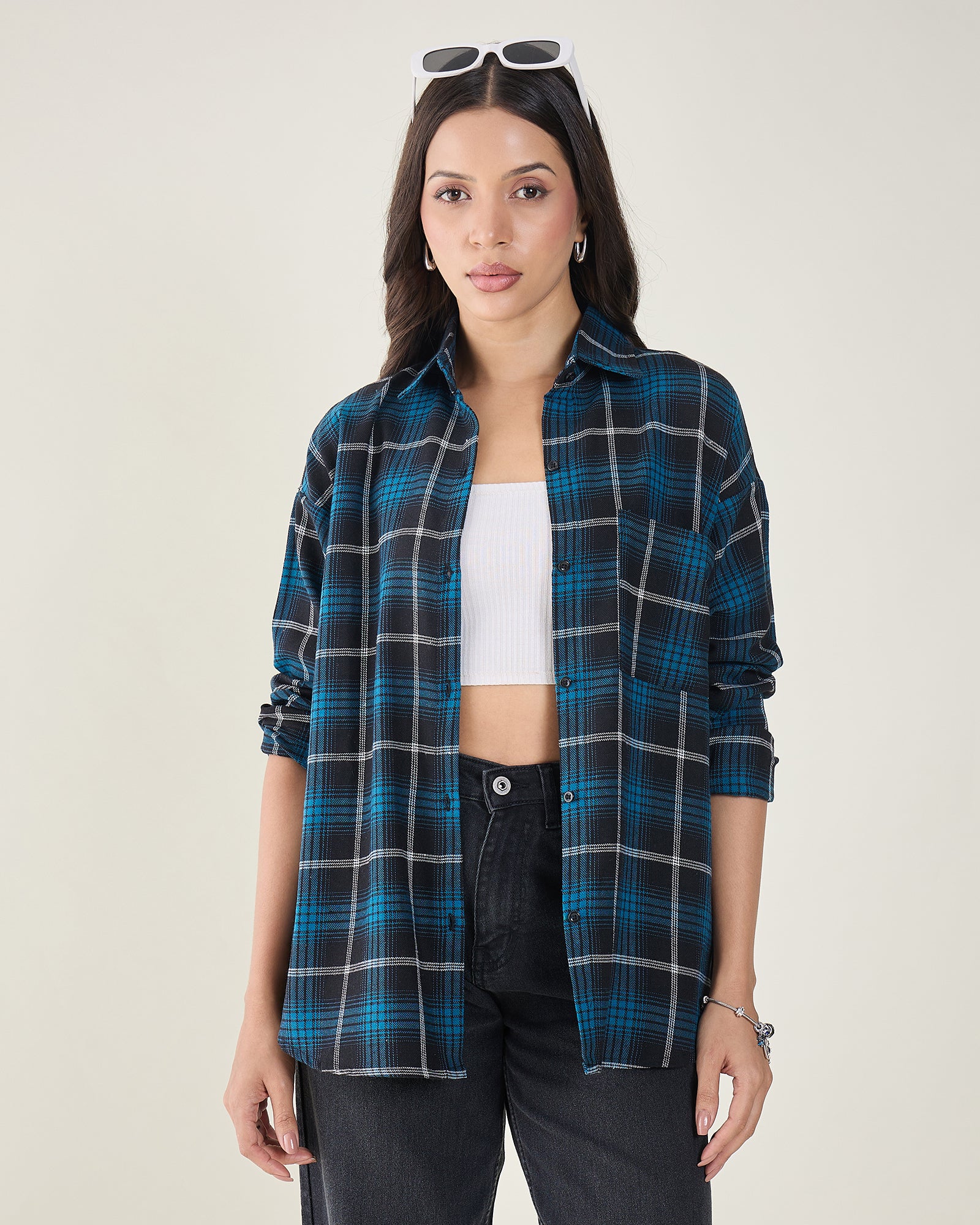 Chimpaaanzee Women Black & Tealblue Oversized Shirt