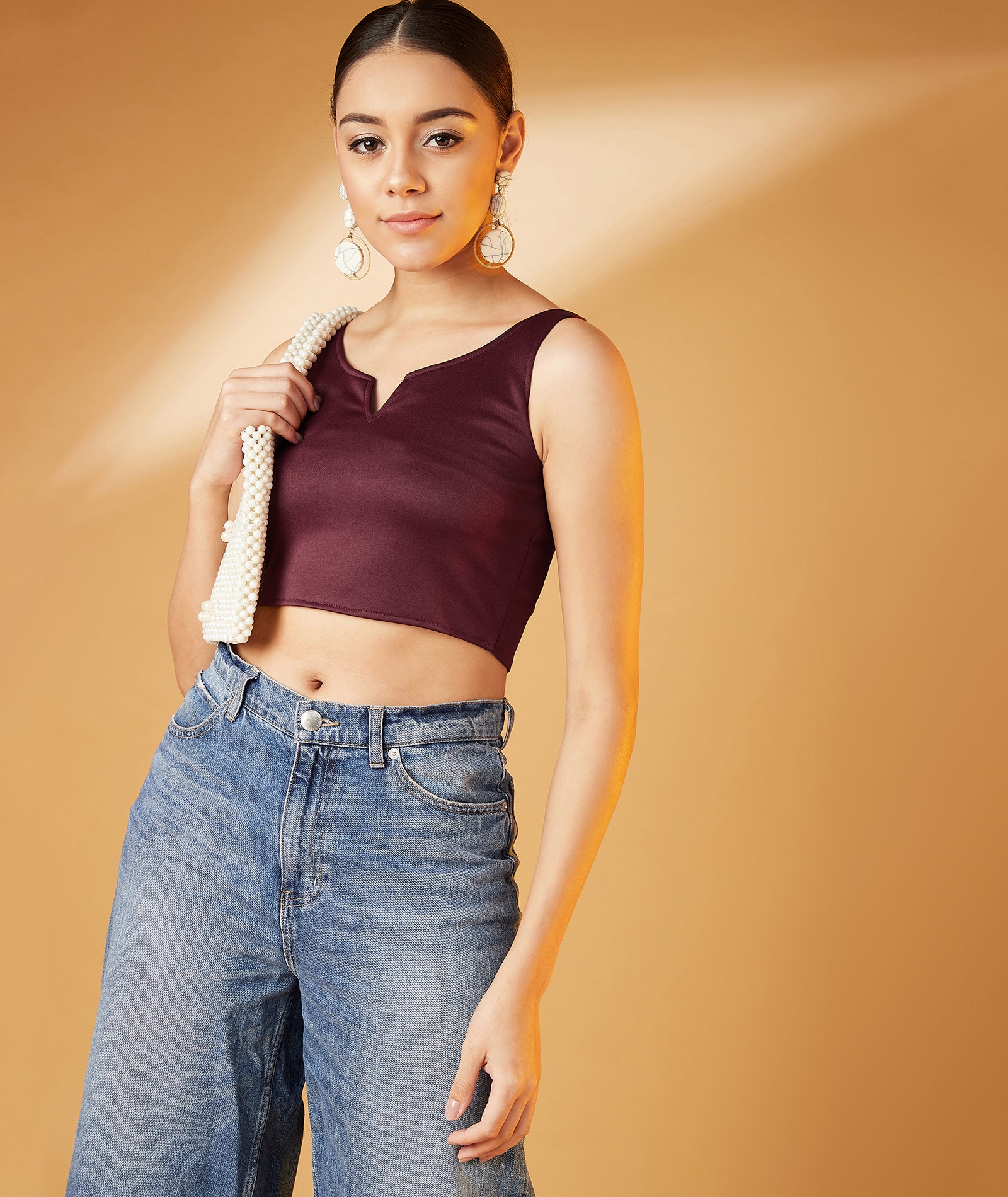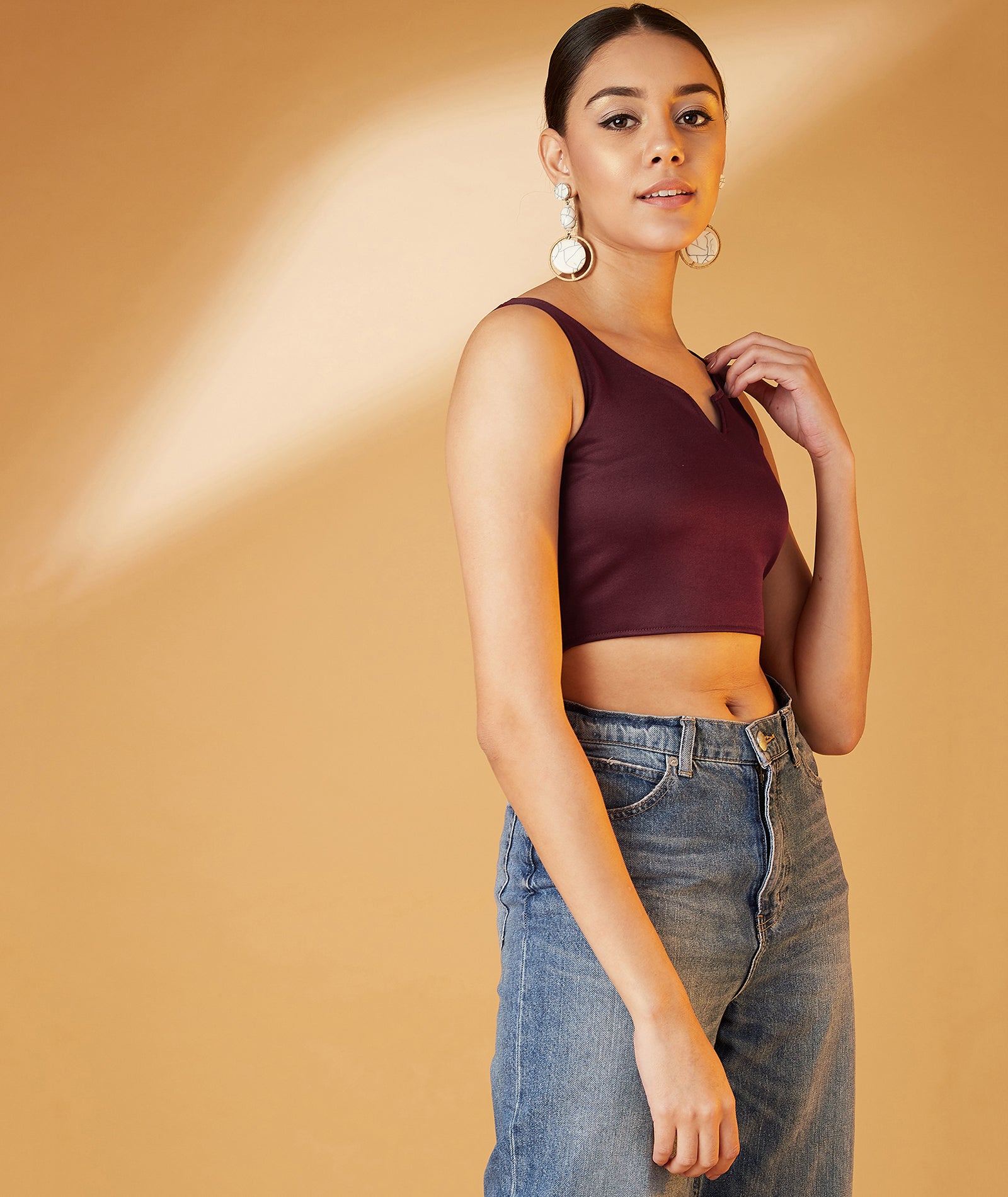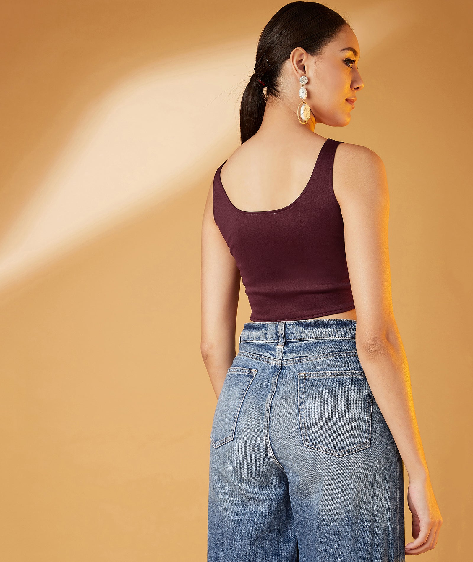 Chimpaaanzee Women Sleeveless Bodycon Maroon Top