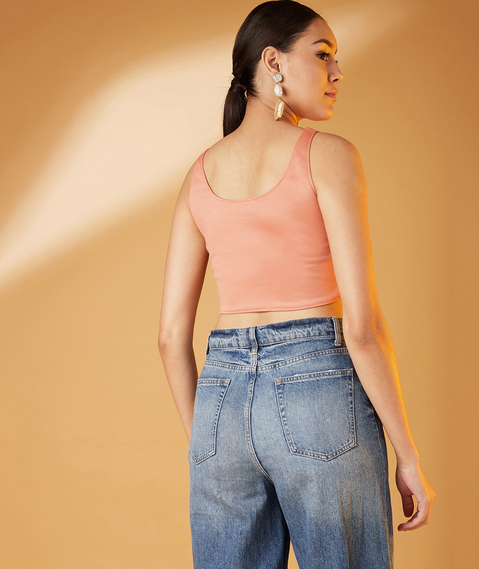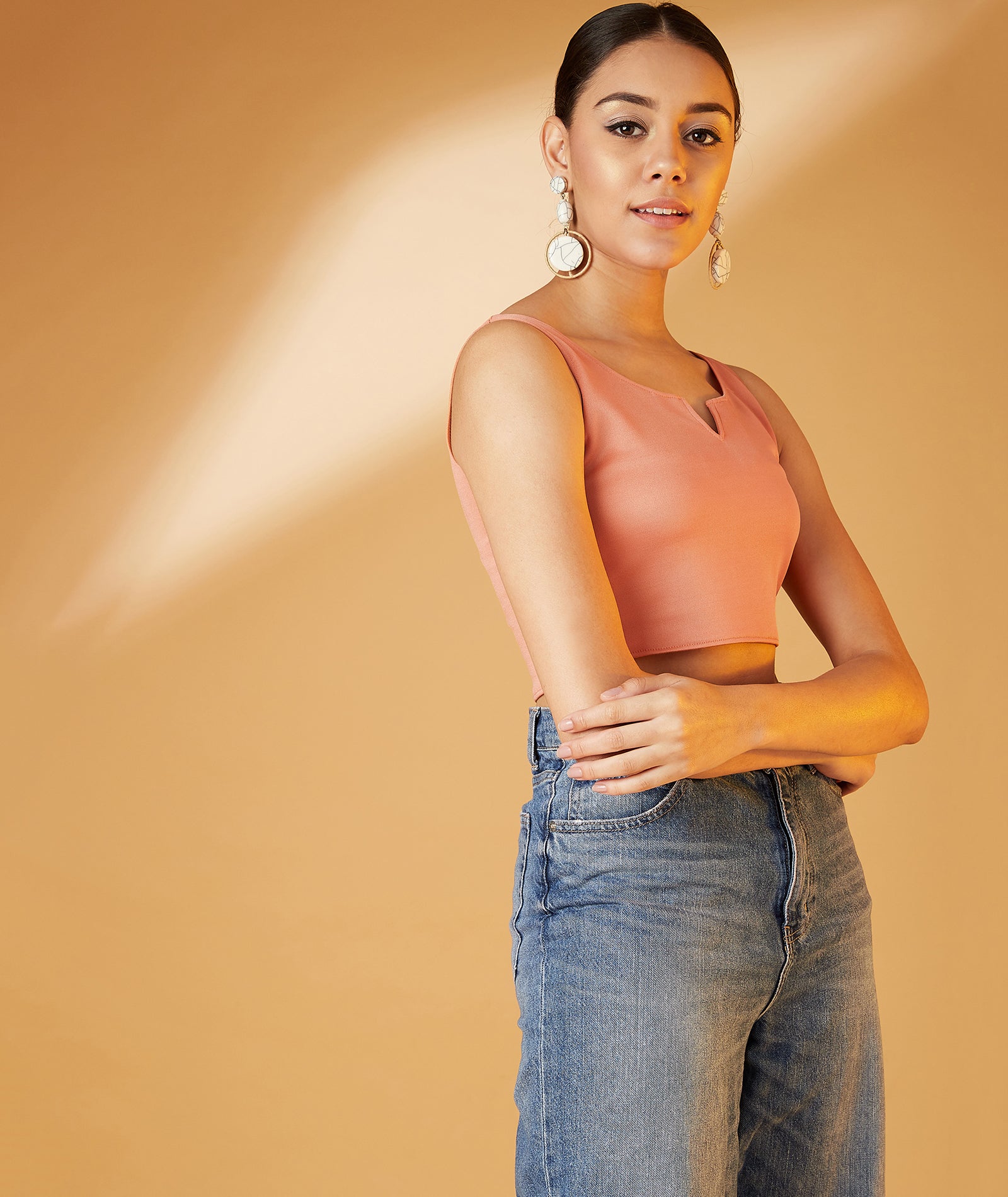 Chimpaaanzee Women Sleeveless Bodycon Orange Top