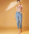Chimpaaanzee Women Sleeveless Bodycon Pink Top