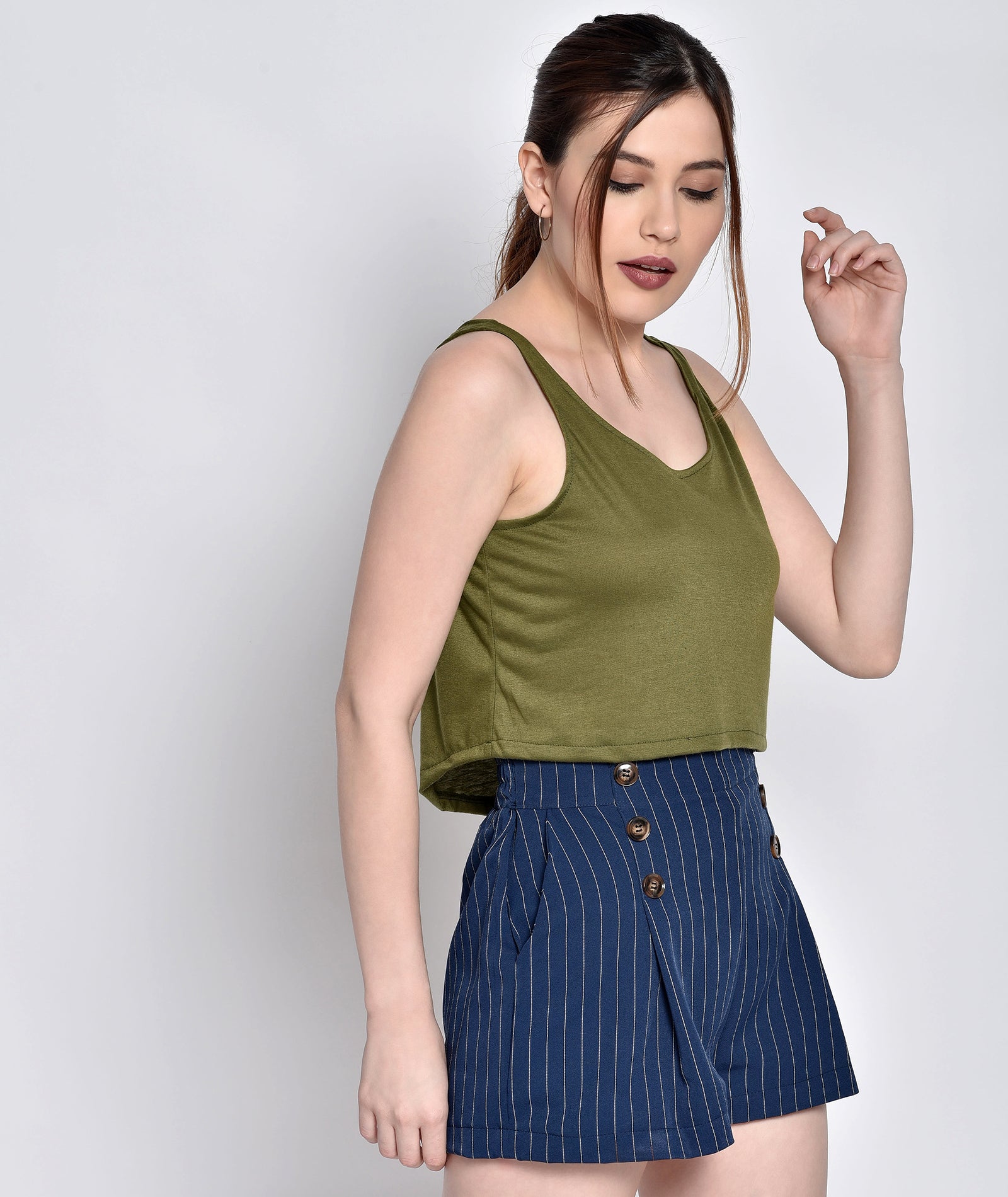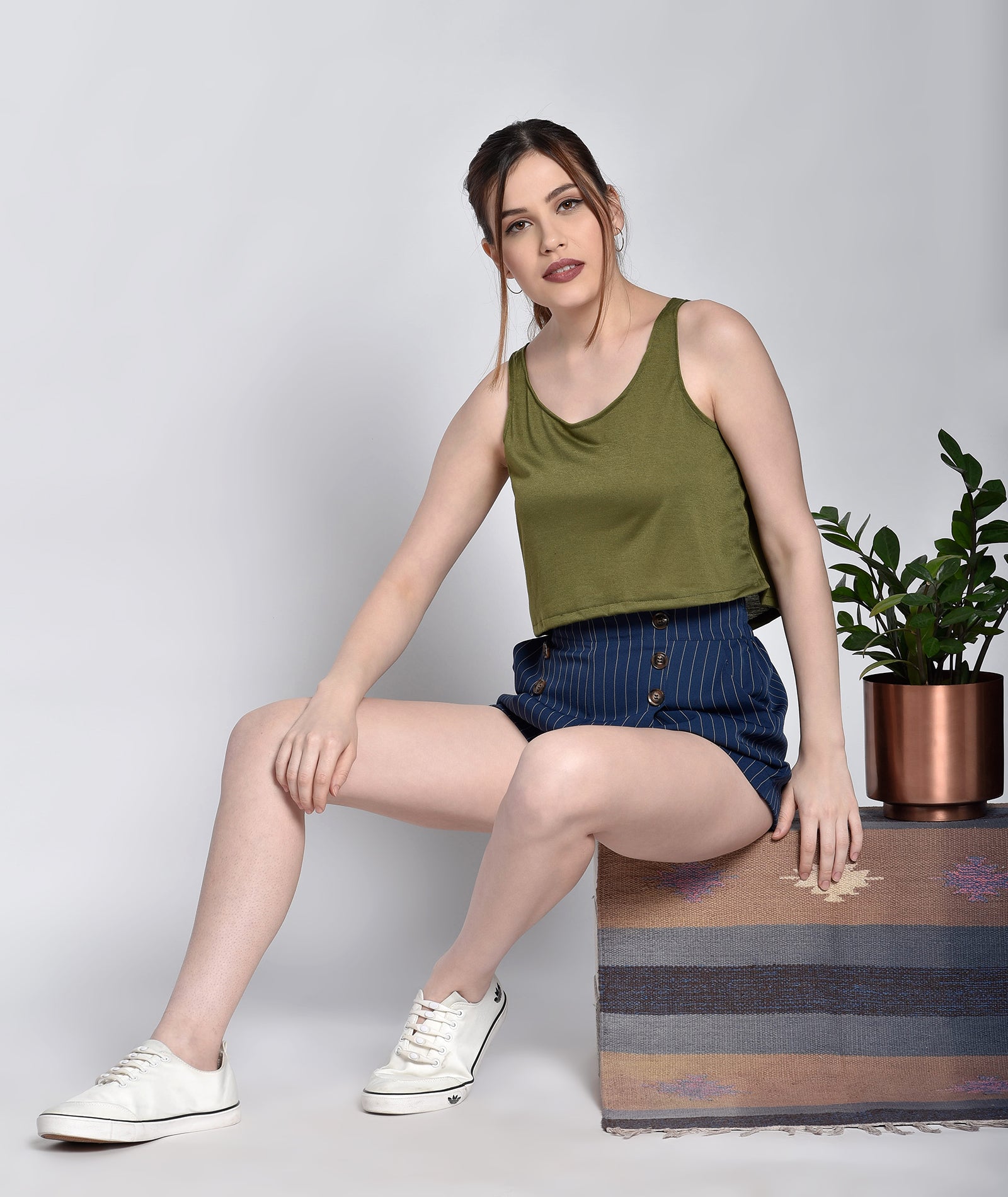 Chimpaaanzee Women Sleeveless Olive Tank Top