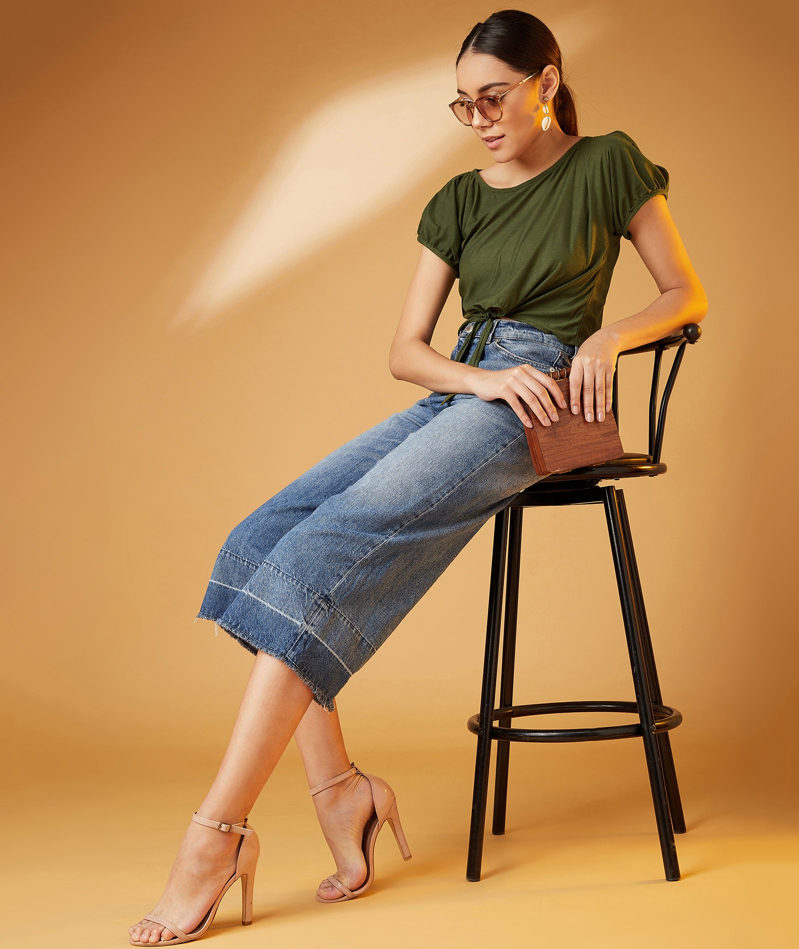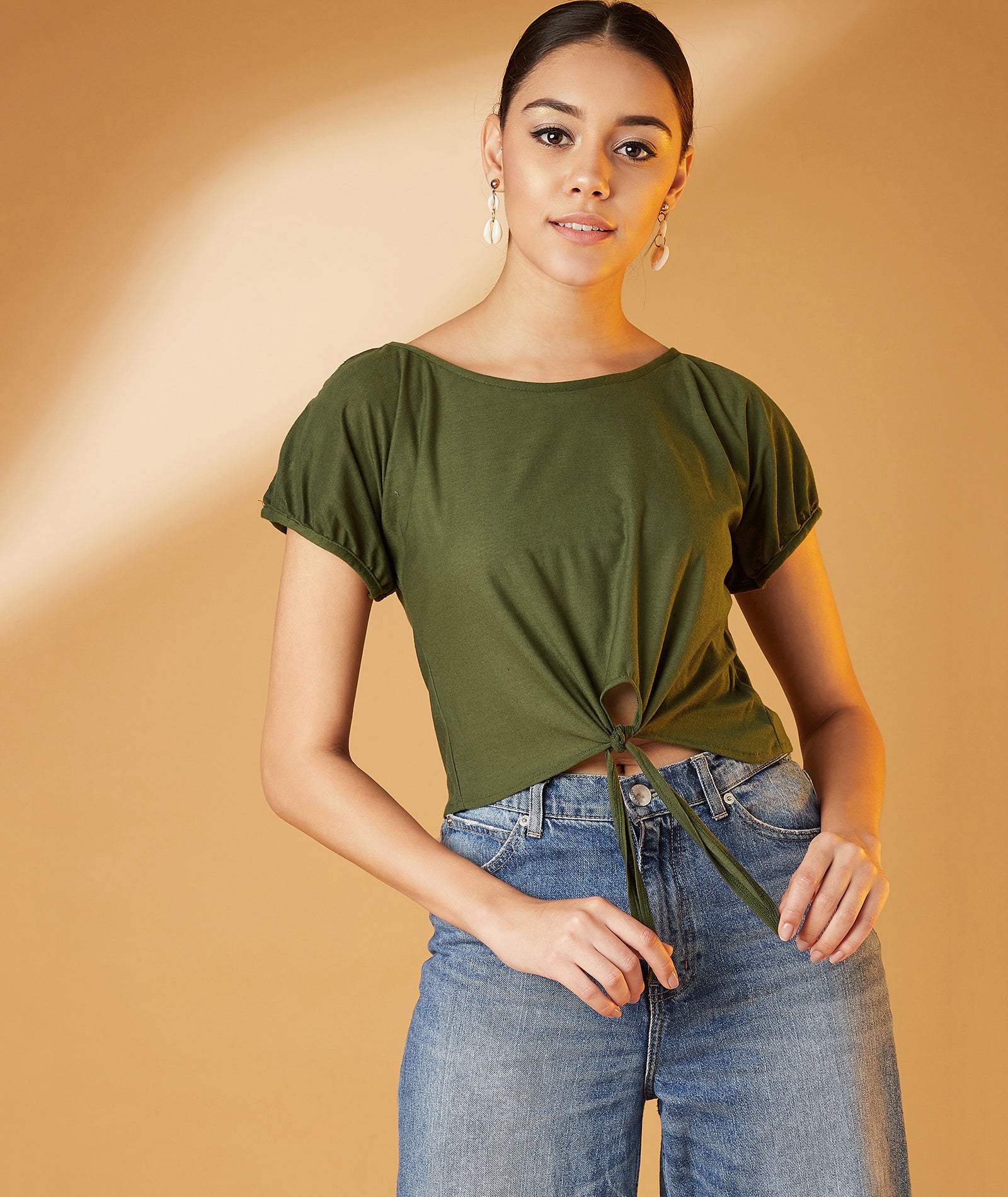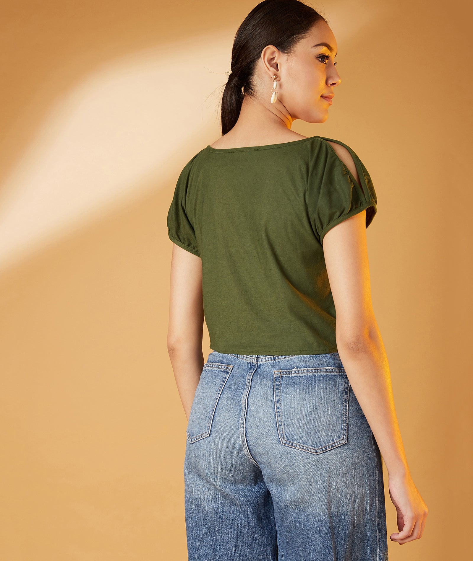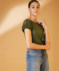 Chimpaaanzee Women Slit Sleeve Olive Tee