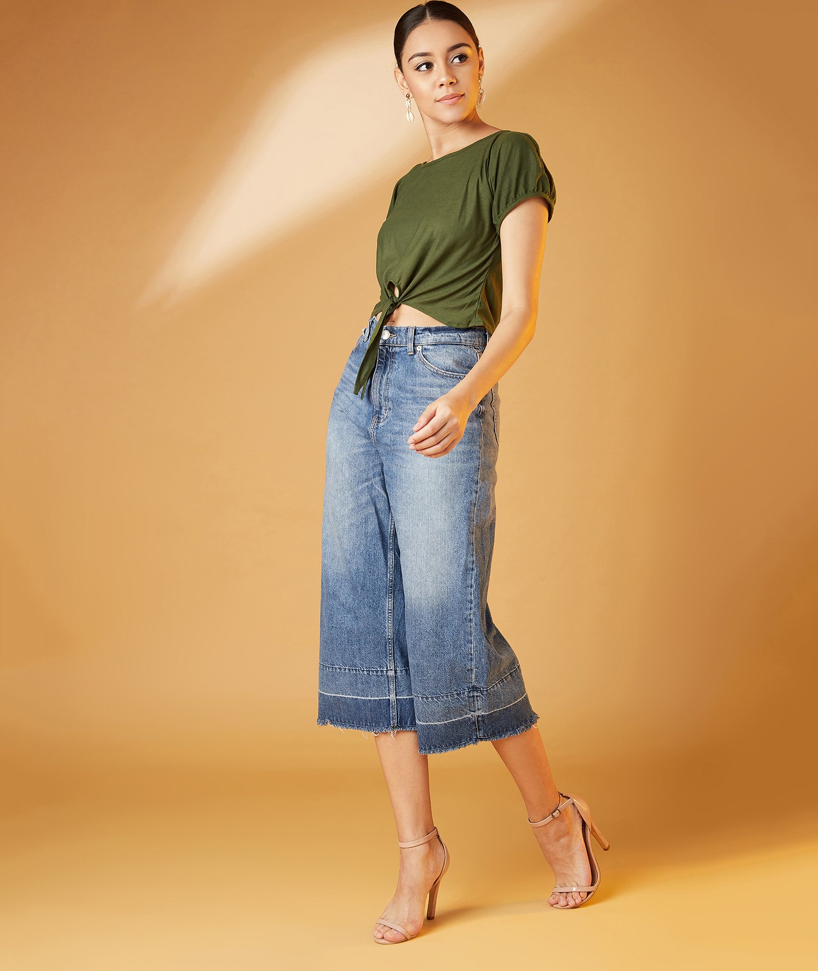 This model has a height of 5 feet 9 inches and is wearing a Top of Size "S"
