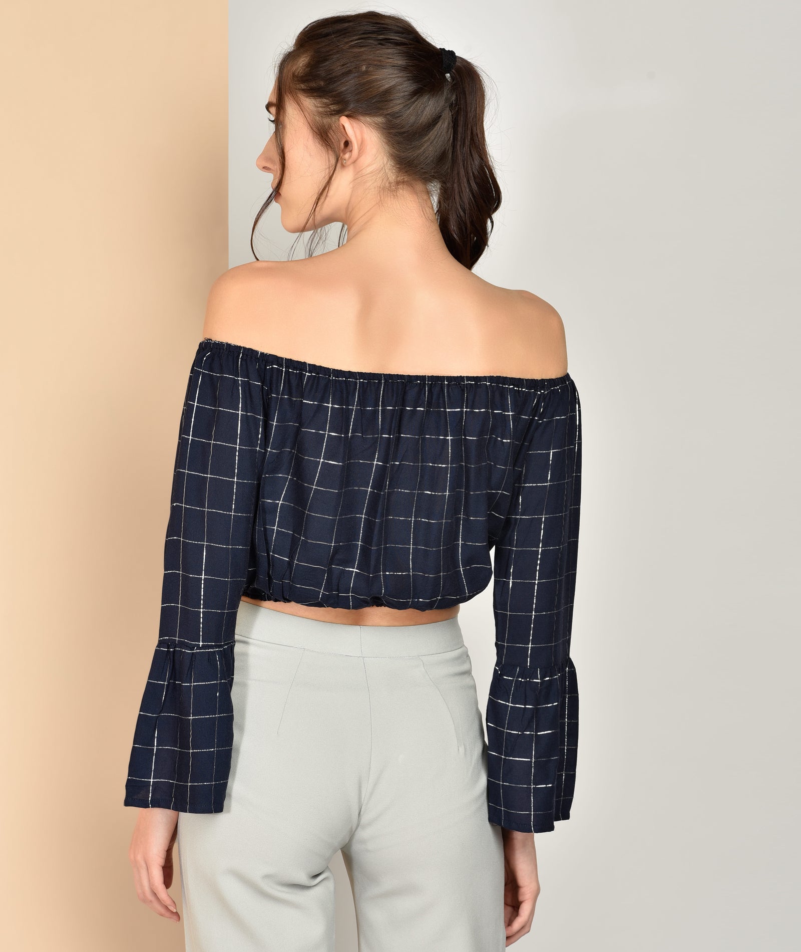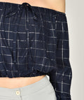 This model has a height of 5 feet 7 inches and is wearing a Top of Size "S"