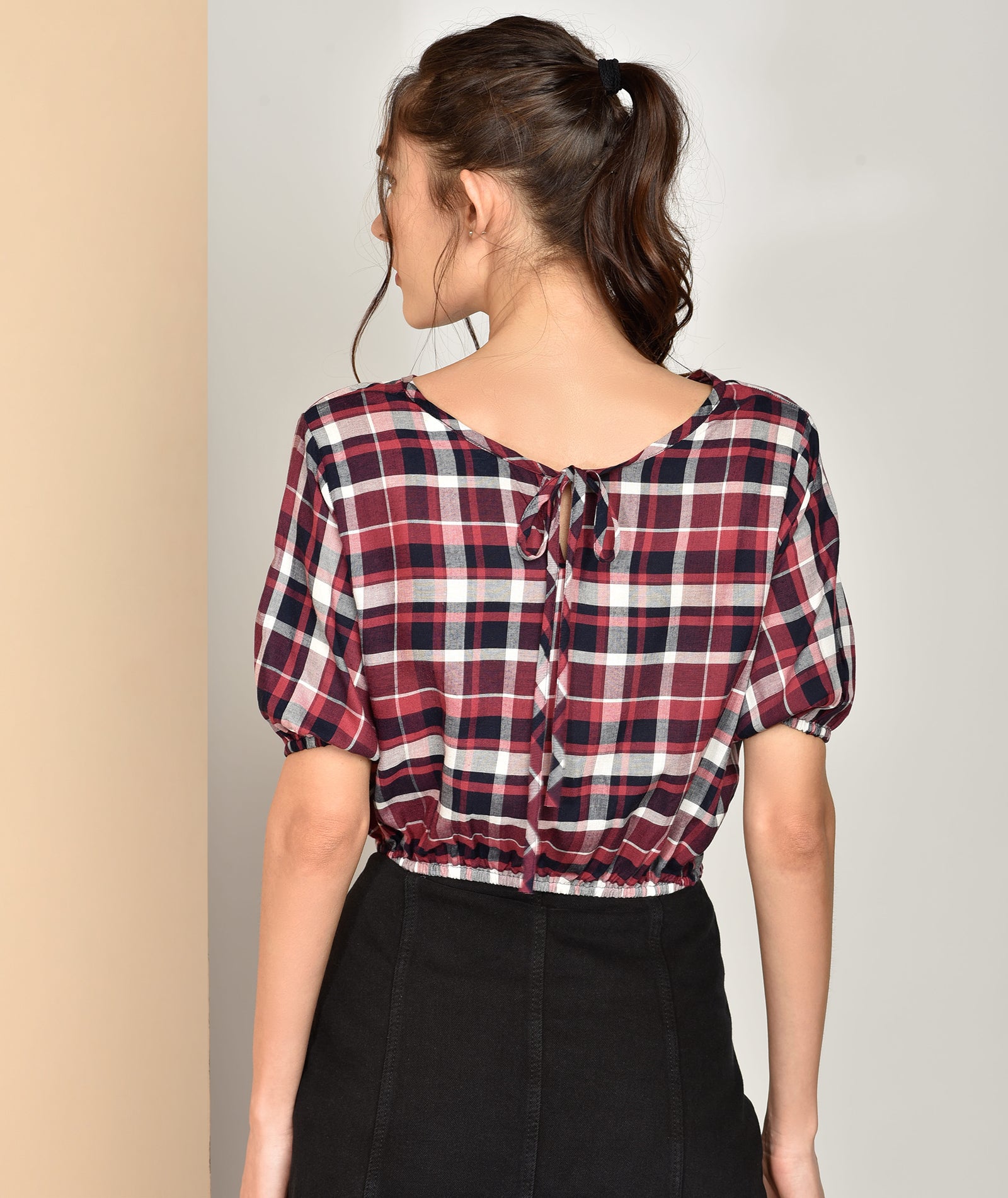 This model has a height of 5 feet 10 inches and is wearing a Top of Size "S"