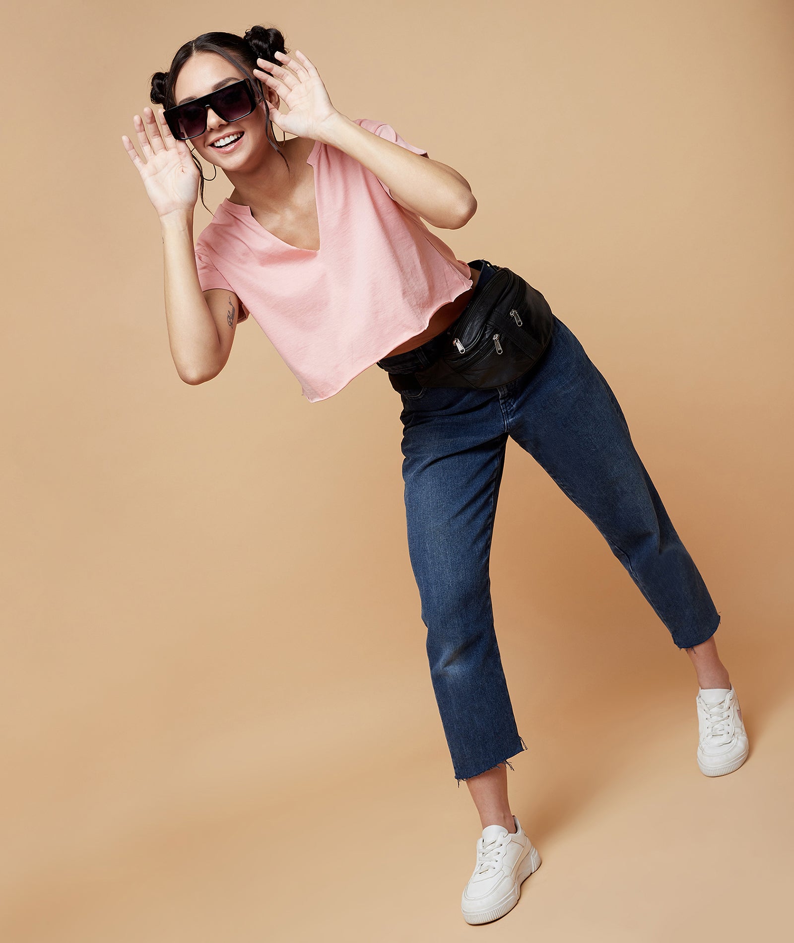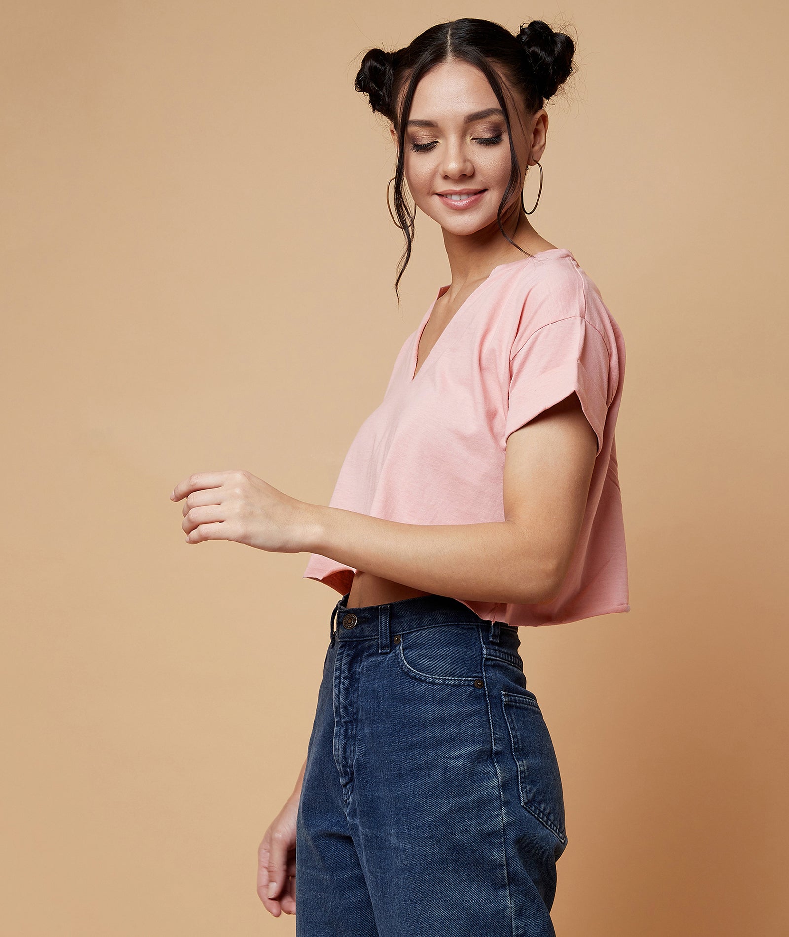 Chimpaaanzee Women V-Neck Crop Top Pink