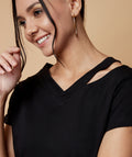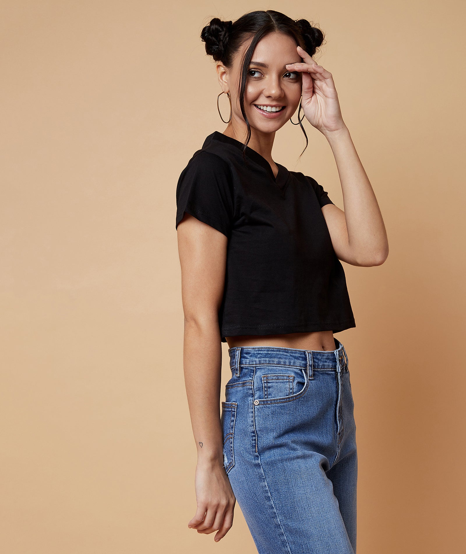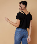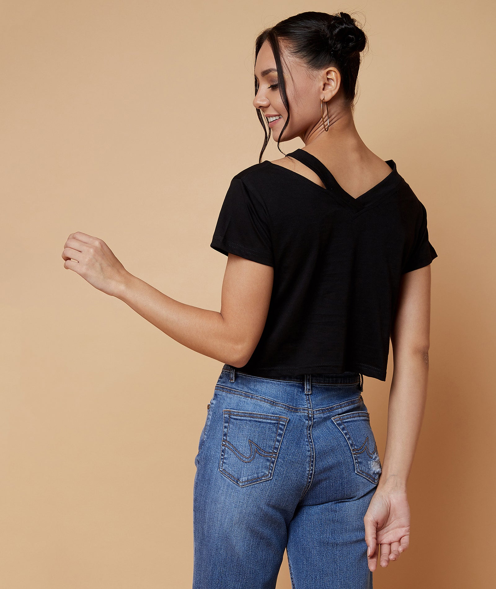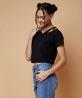Chimpaaanzee Women Cut Out Neck Crop Top Black