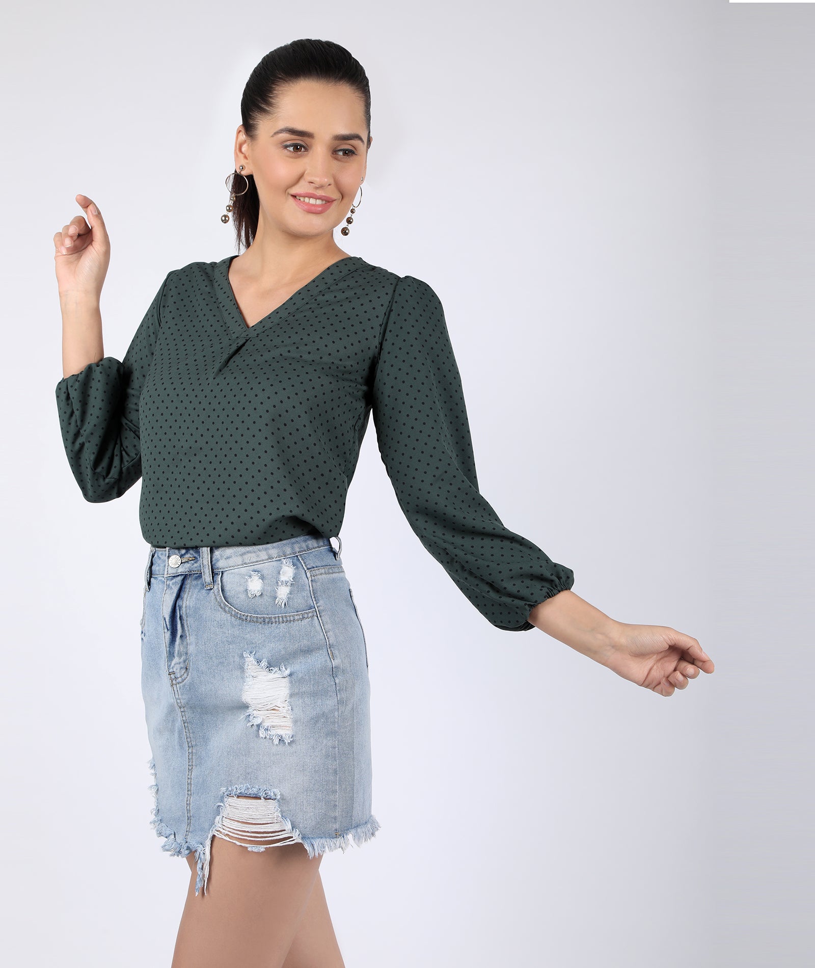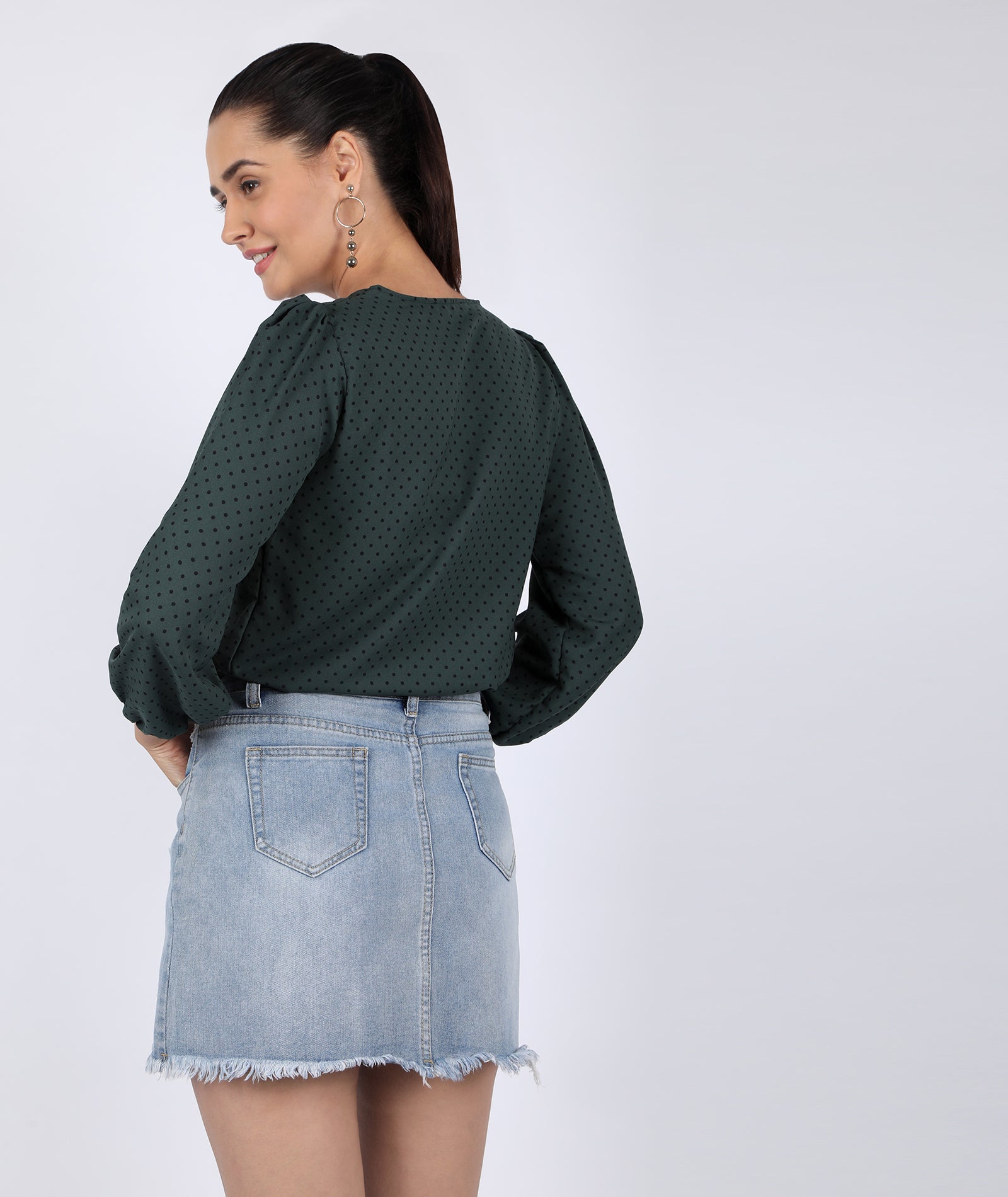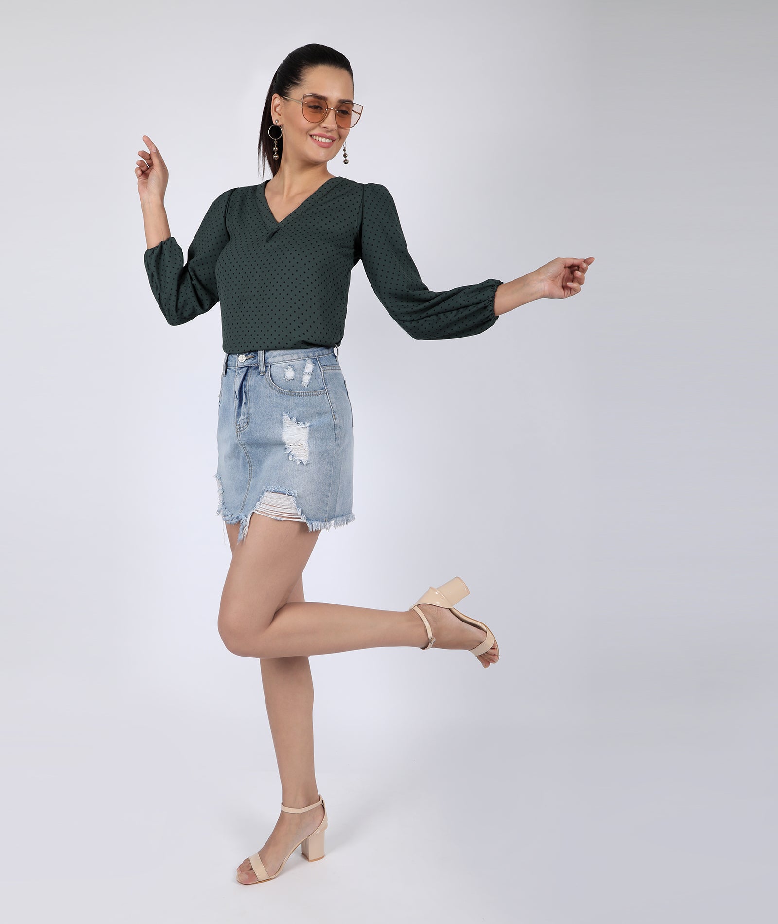 Chimpaaanzee Women V-Neck Blue Polka Printed Top