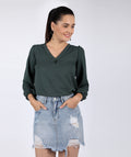 This model has a height of 5 feet 9 inches and is wearing a Top of Size "S"