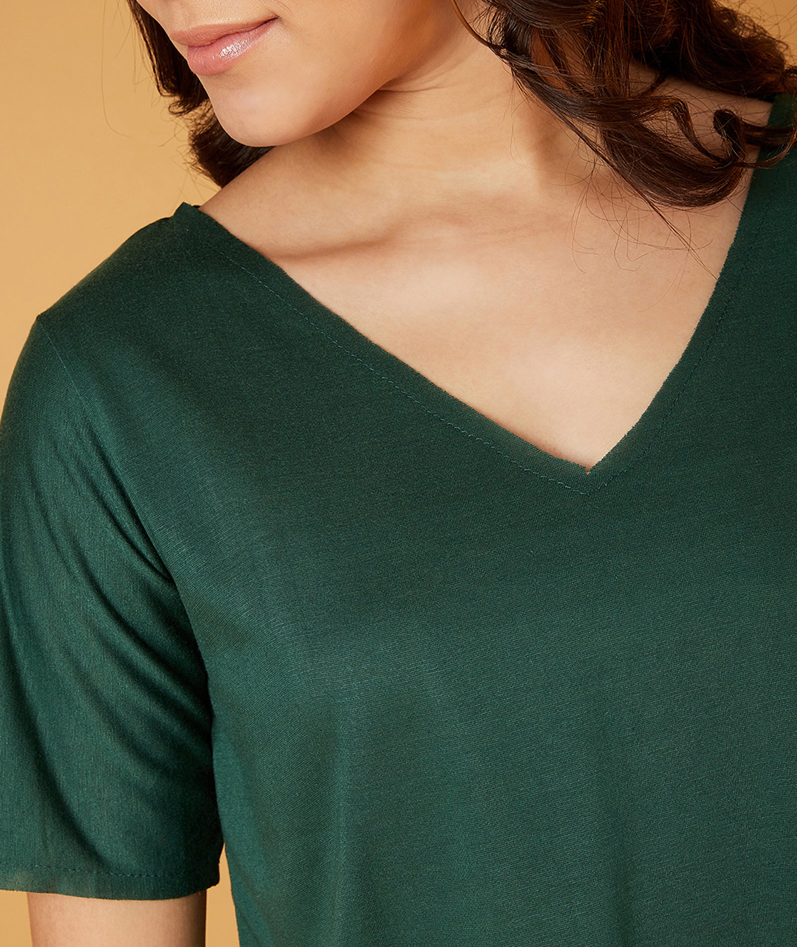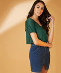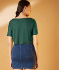 Chimpaaanzee Women V-Neck Cropped Green Tee