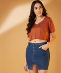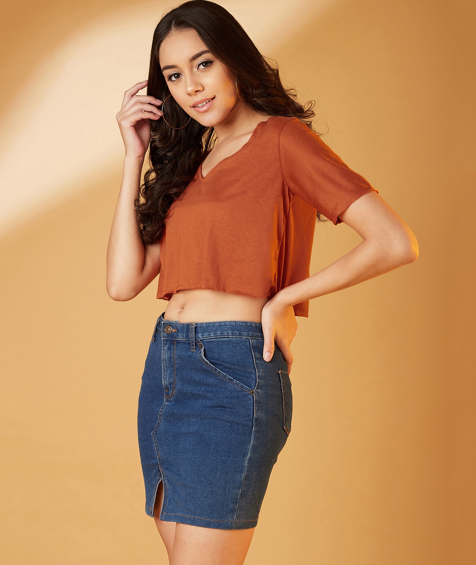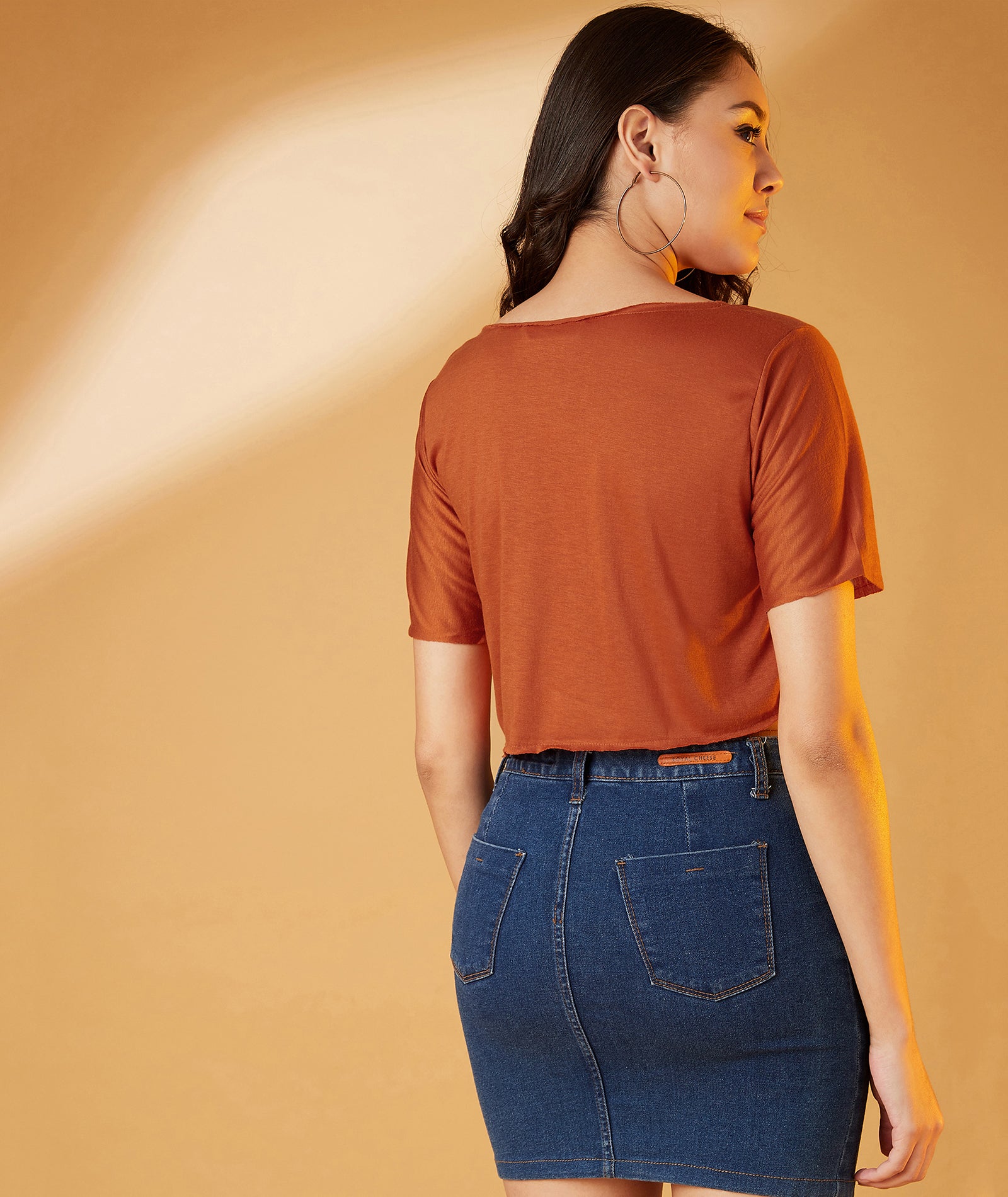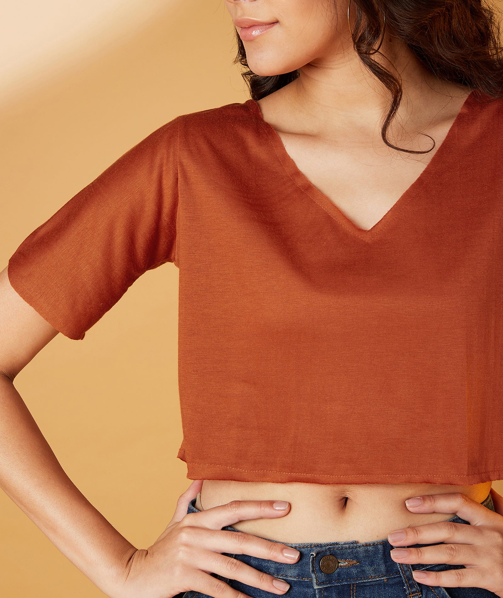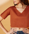 Chimpaaanzee Women V-Neck Cropped Orange Tee