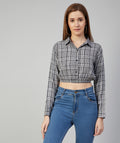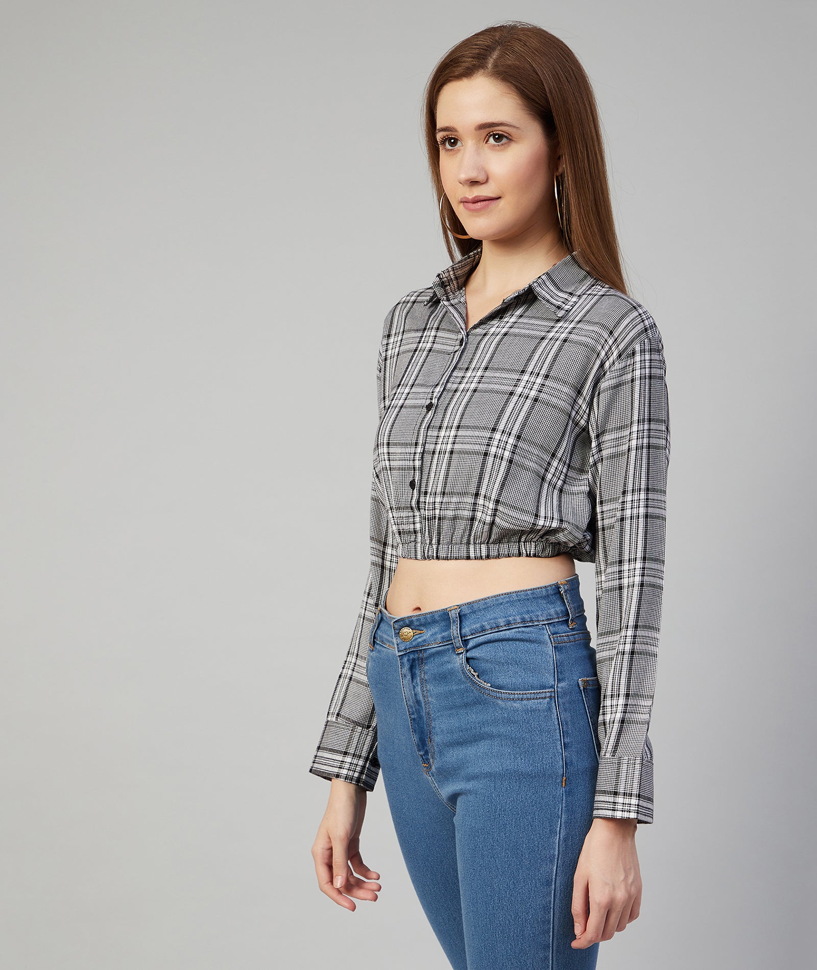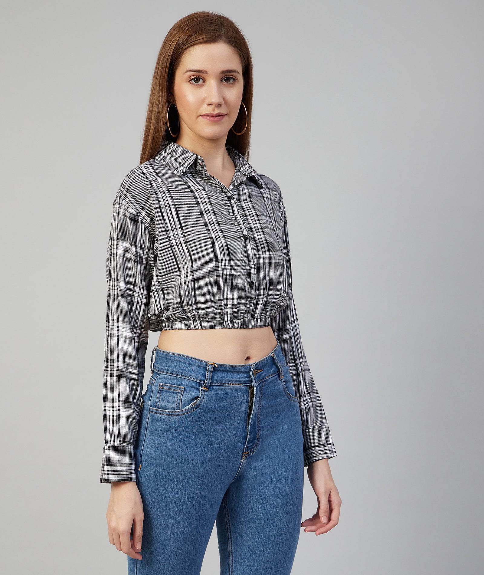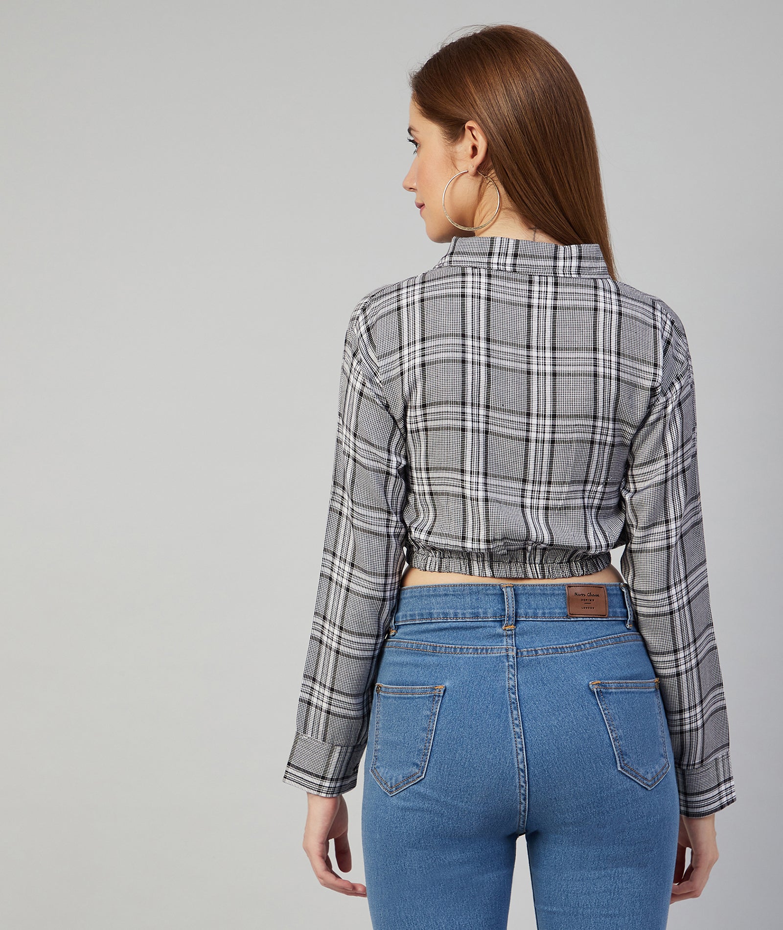 Chimpaaanzee Women Viscose Black and White Checkered Crop Shirt