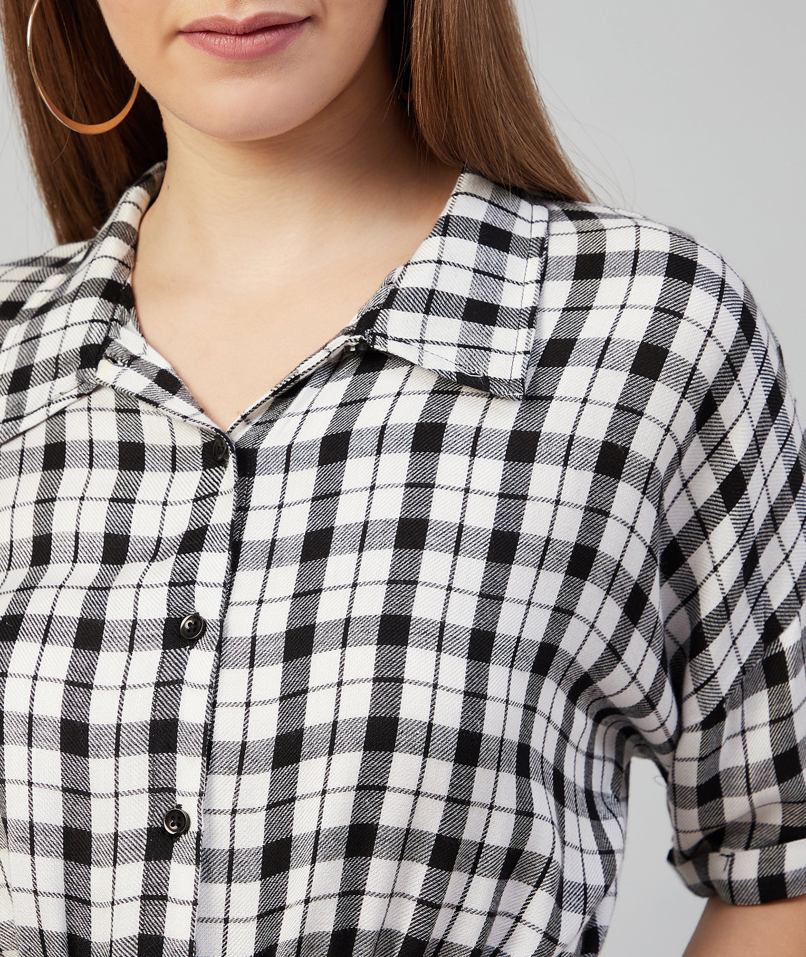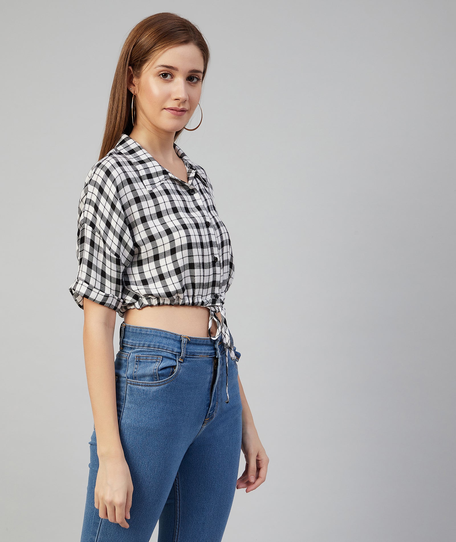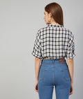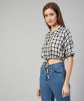Chimpaaanzee Women Viscose Black and White Checkered Knotted Crop Shirt