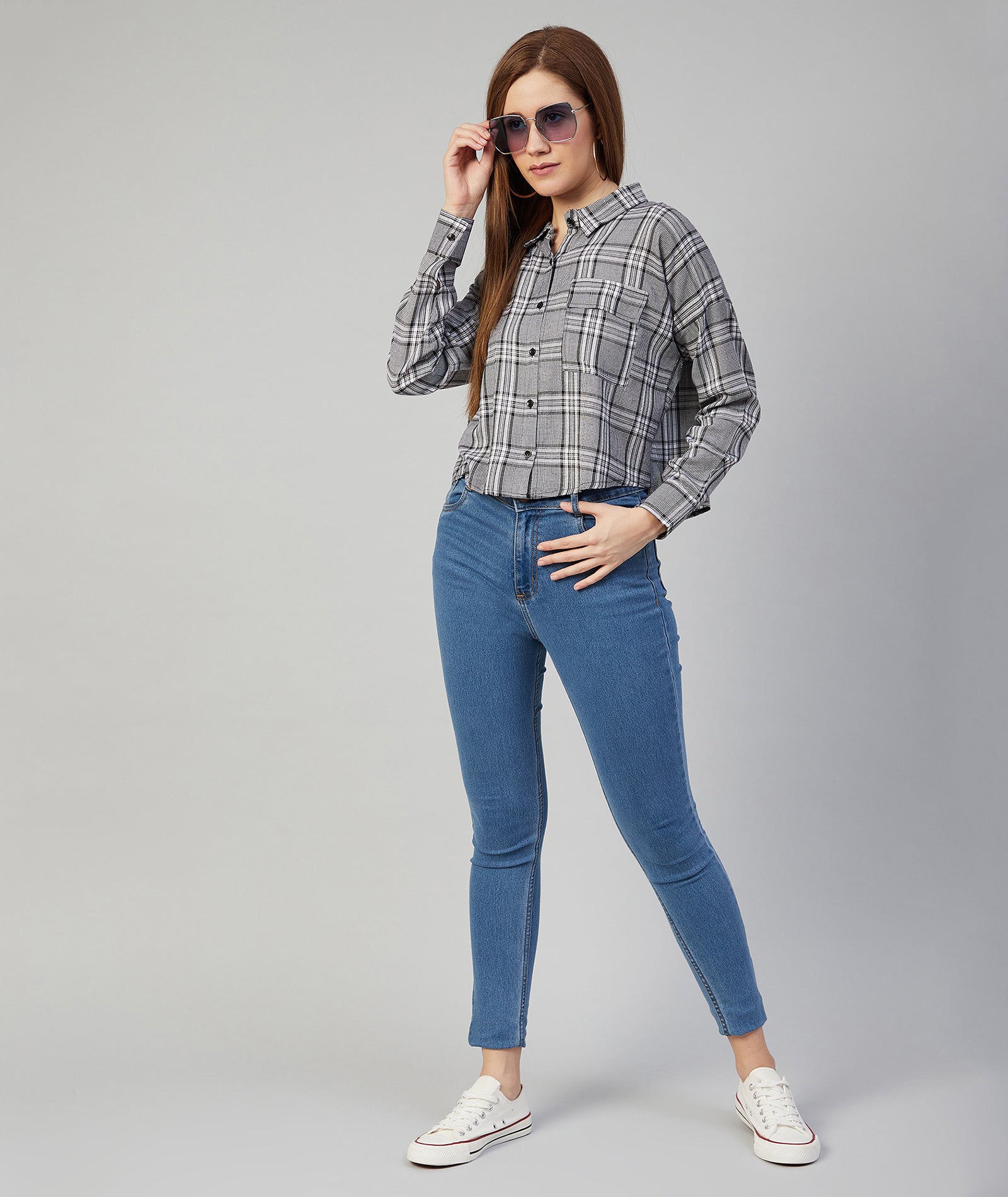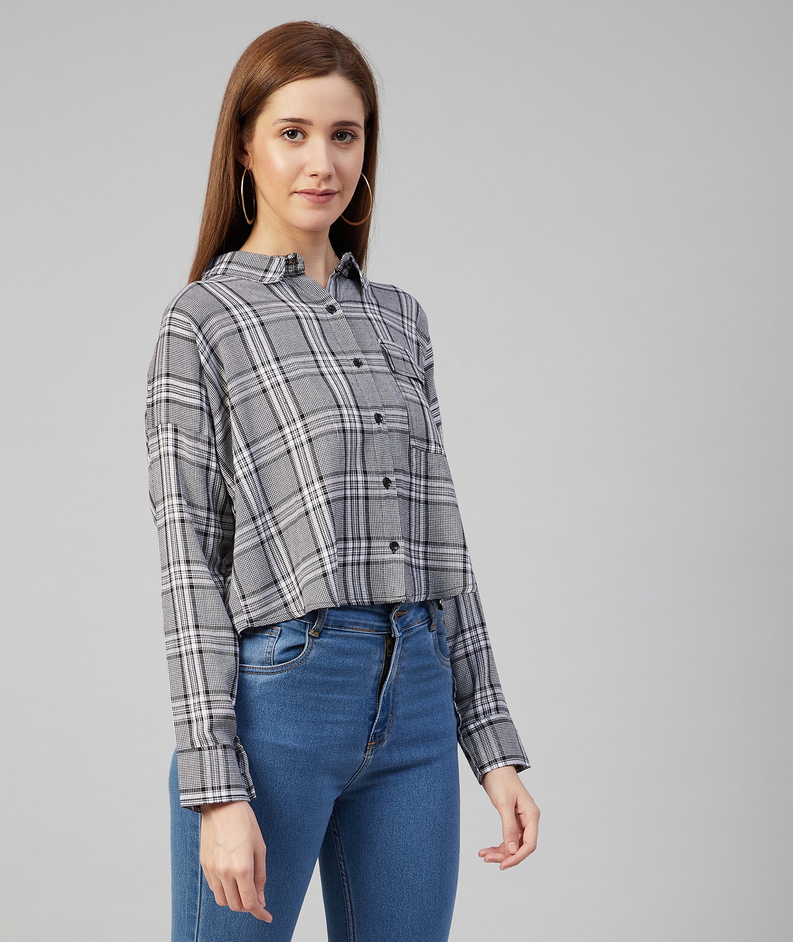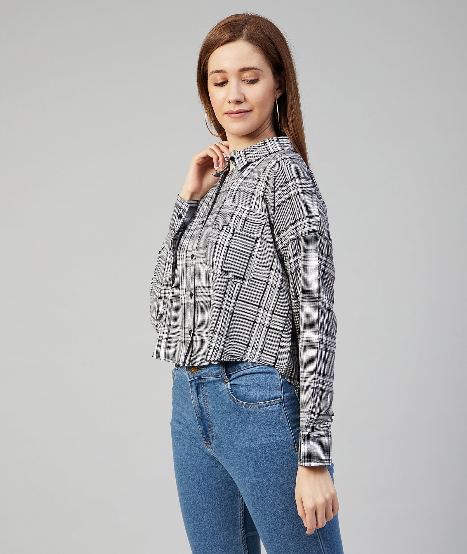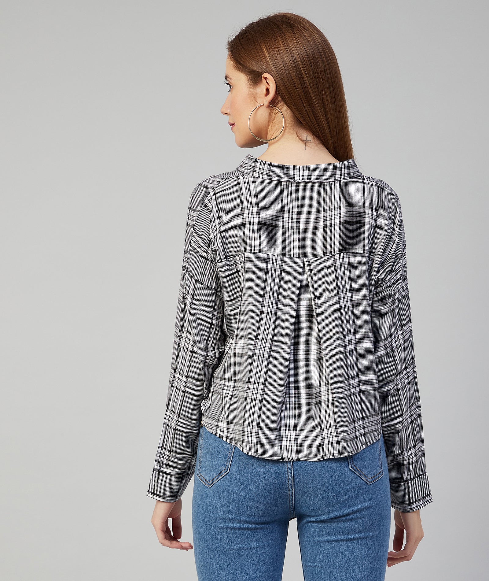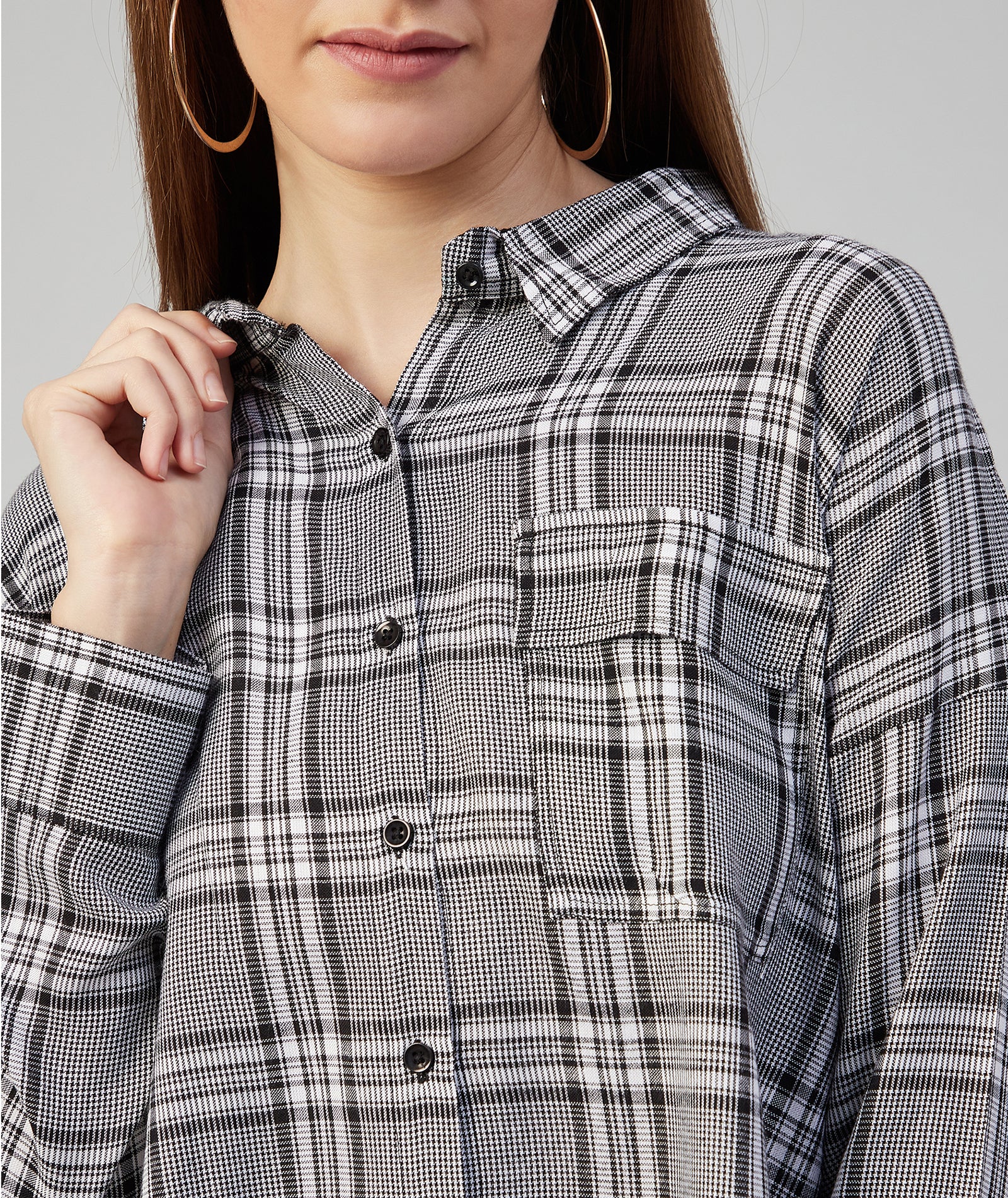 Chimpaaanzee Women Viscose Black and White Checkered Loose Fit Shirt