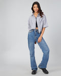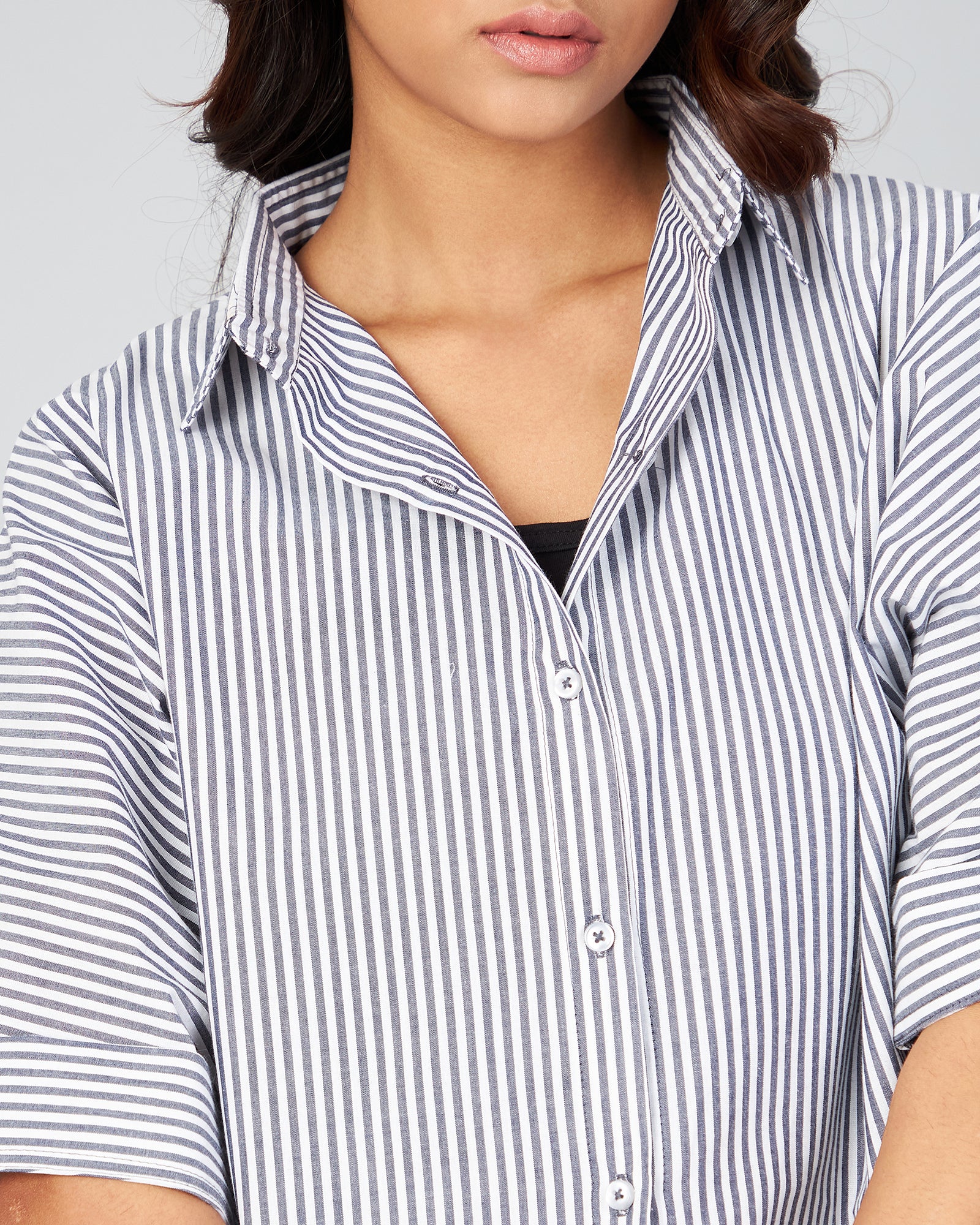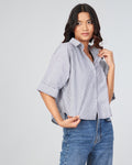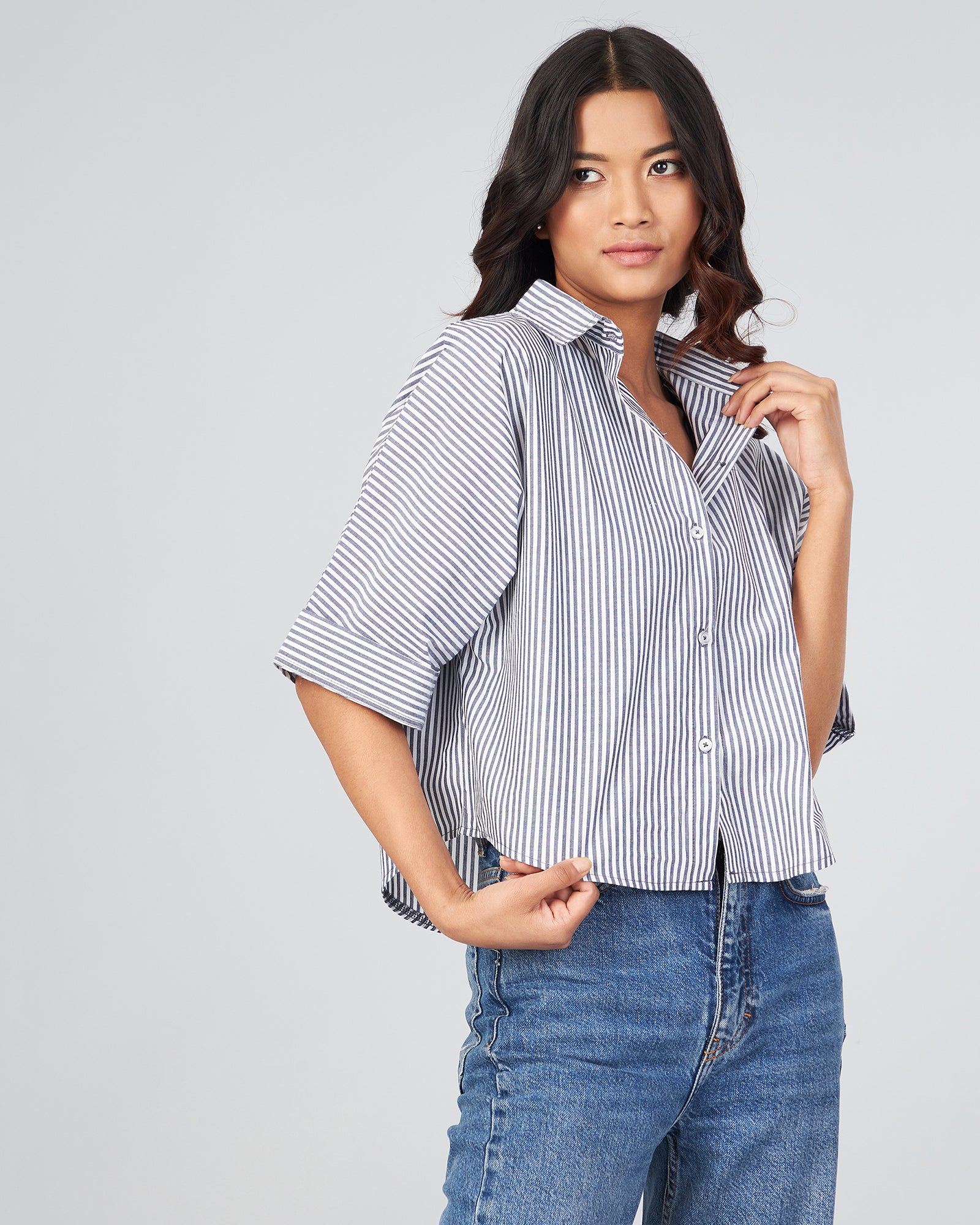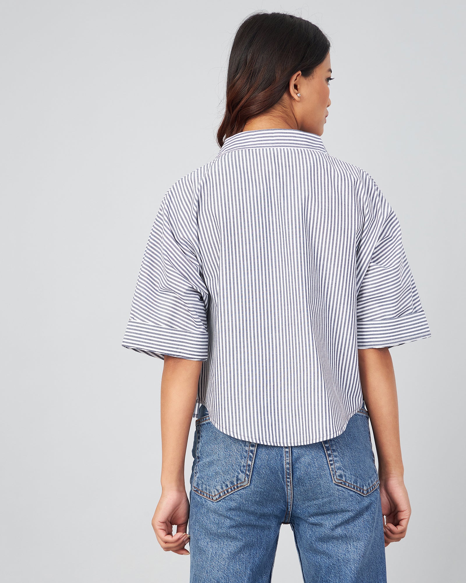 Chimpaaanzee Women Viscose Black & White Striped Crop Shirt