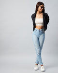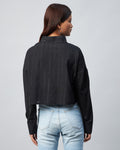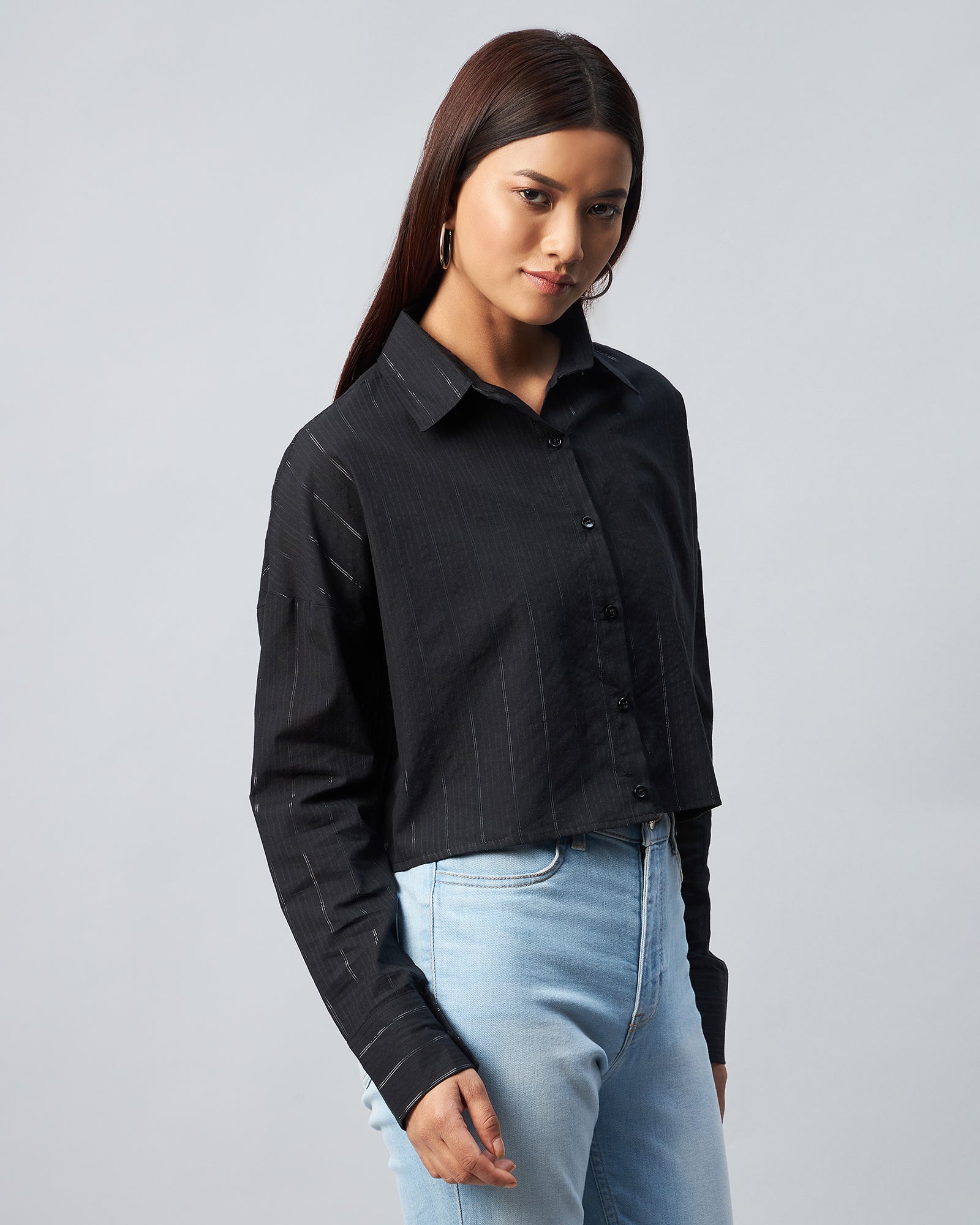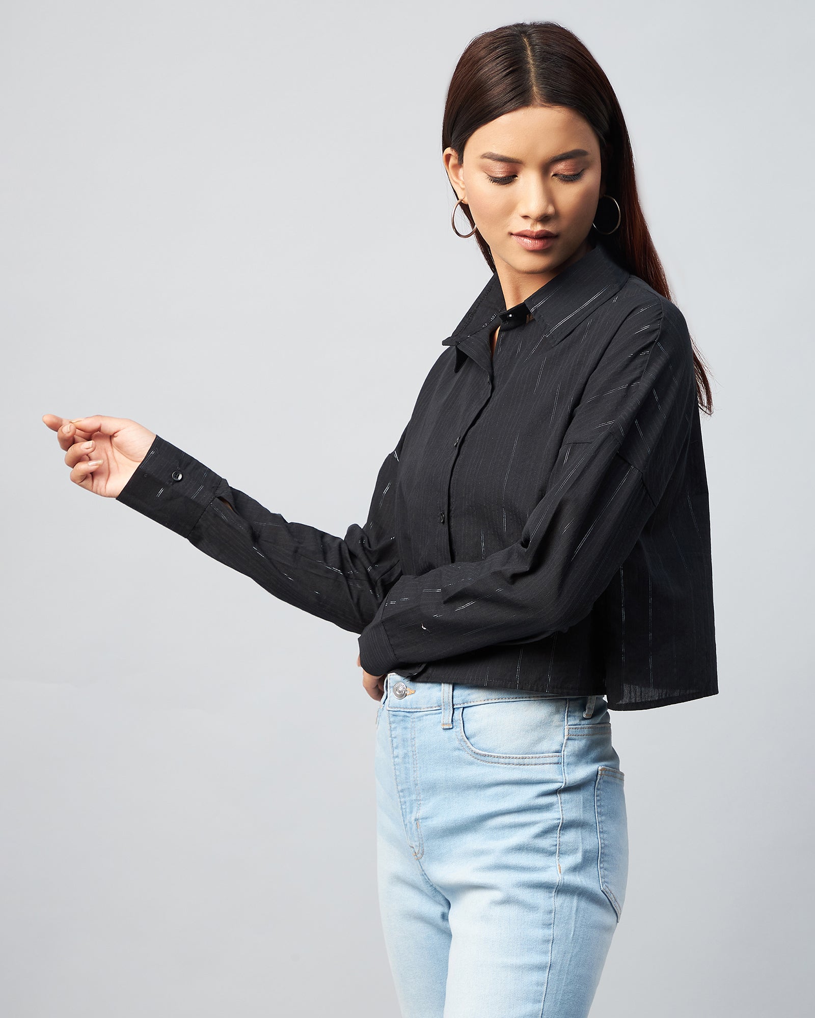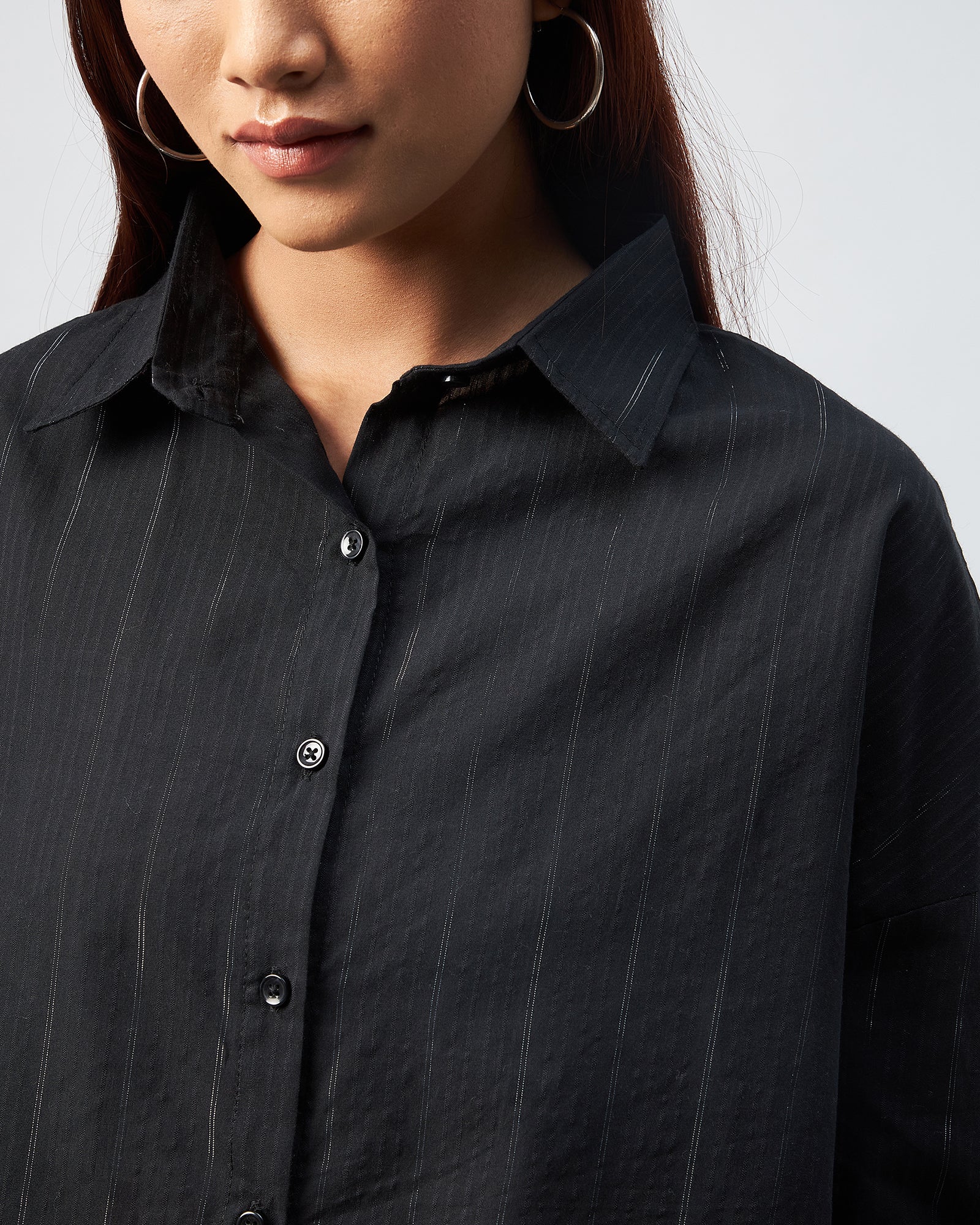 Chimpaaanzee Women Viscose Black & White Striped Full Sleeve Drop Shoulder Shirt