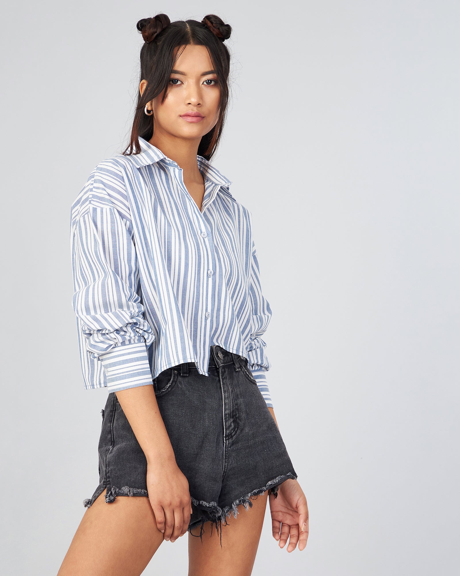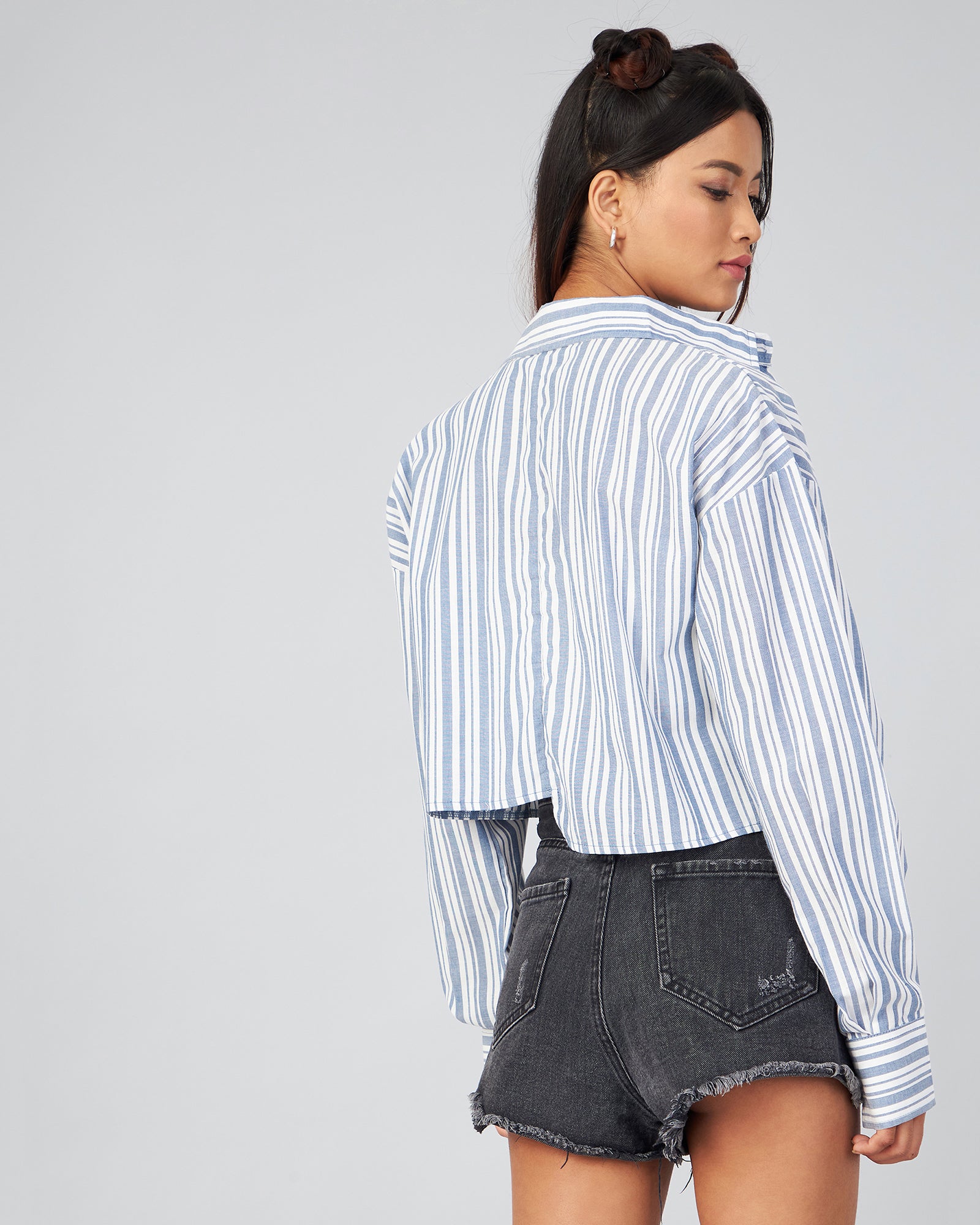 Style: Full Sleeve Up Down Crop Shirt