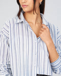 Chimpaaanzee Women Viscose Black & White Striped Full Sleeve Up Down Crop Shirt