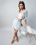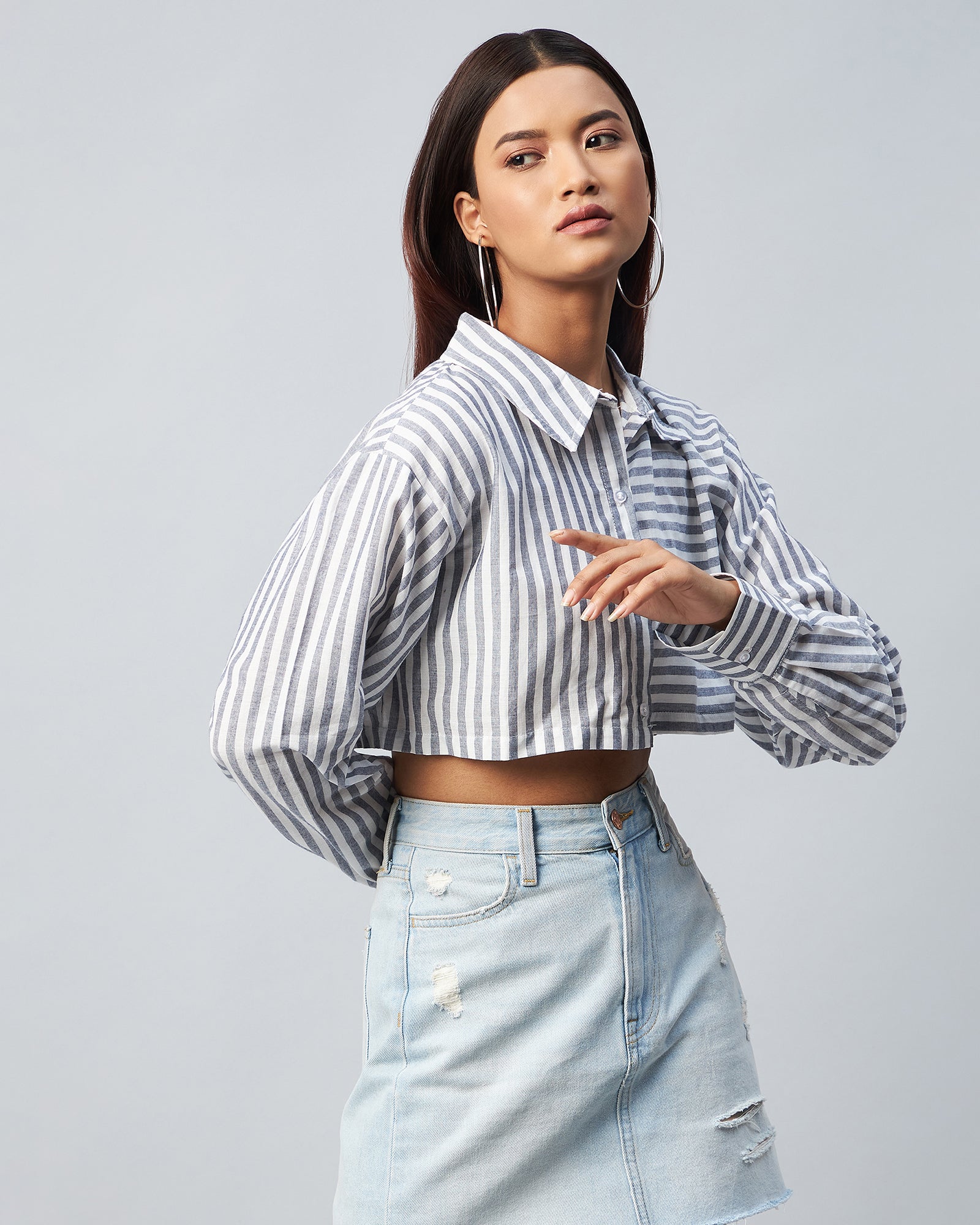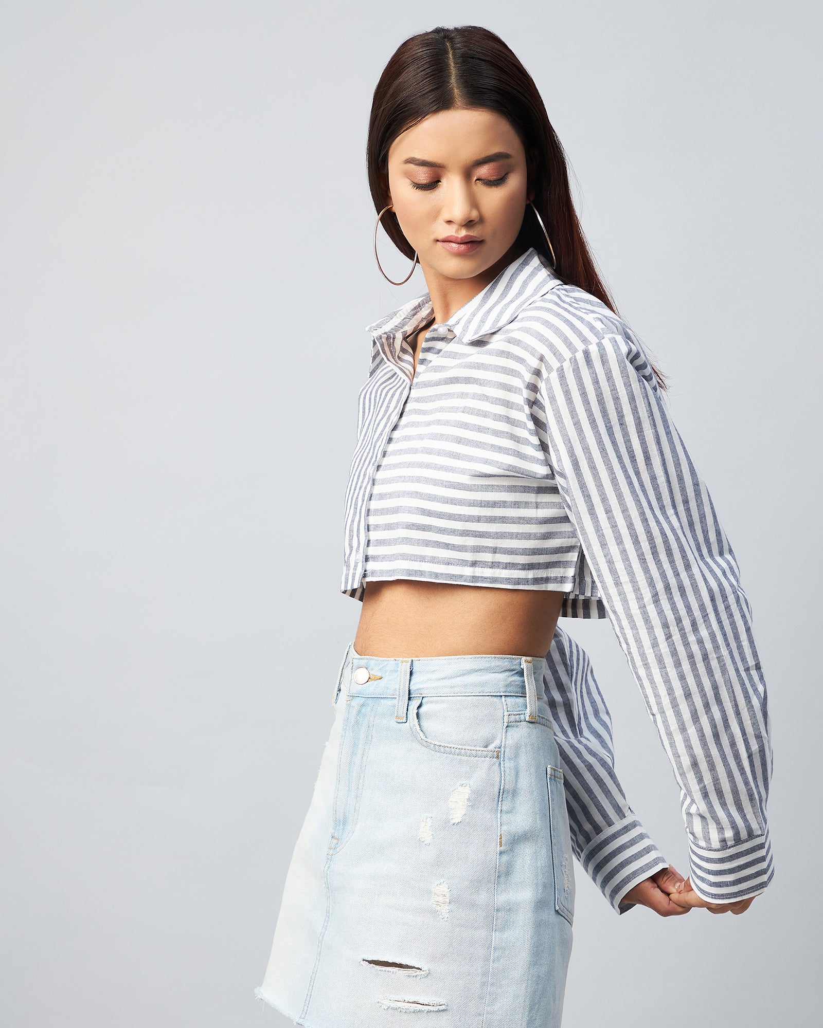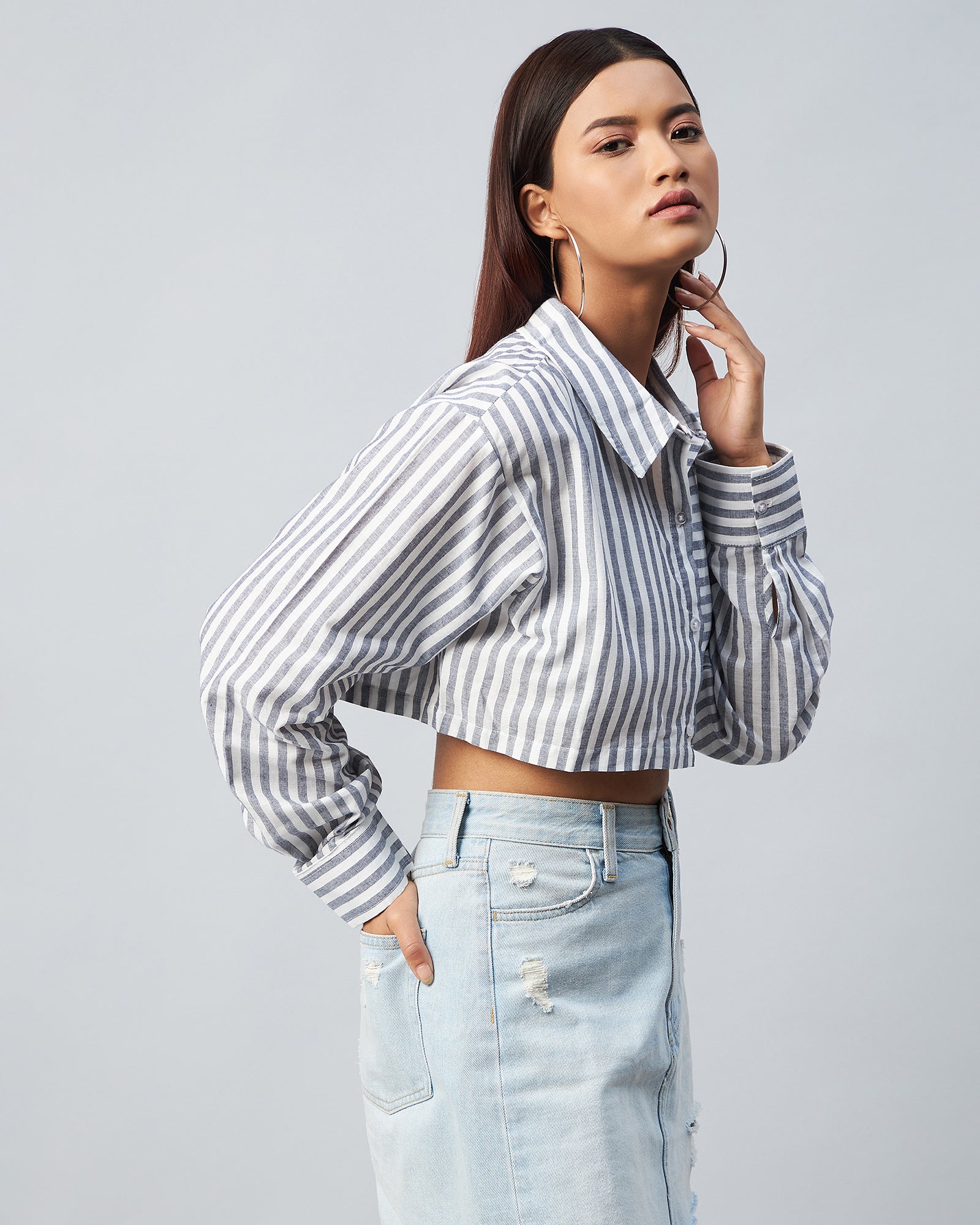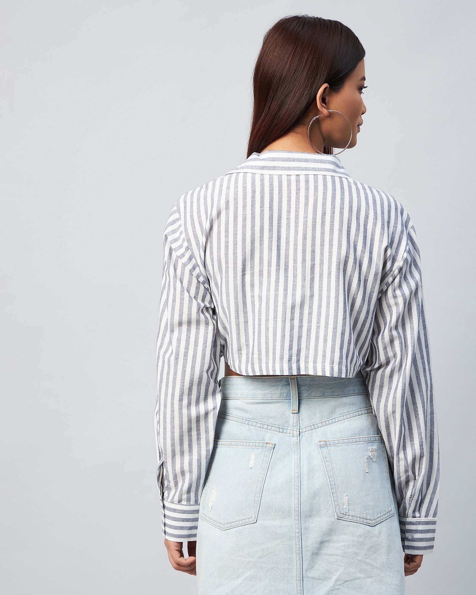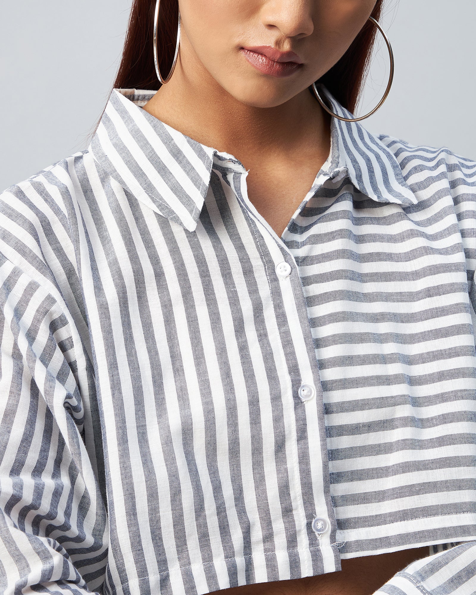 Chimpaaanzee Women viscose Black & White Striped Fully Cropped Shirt
