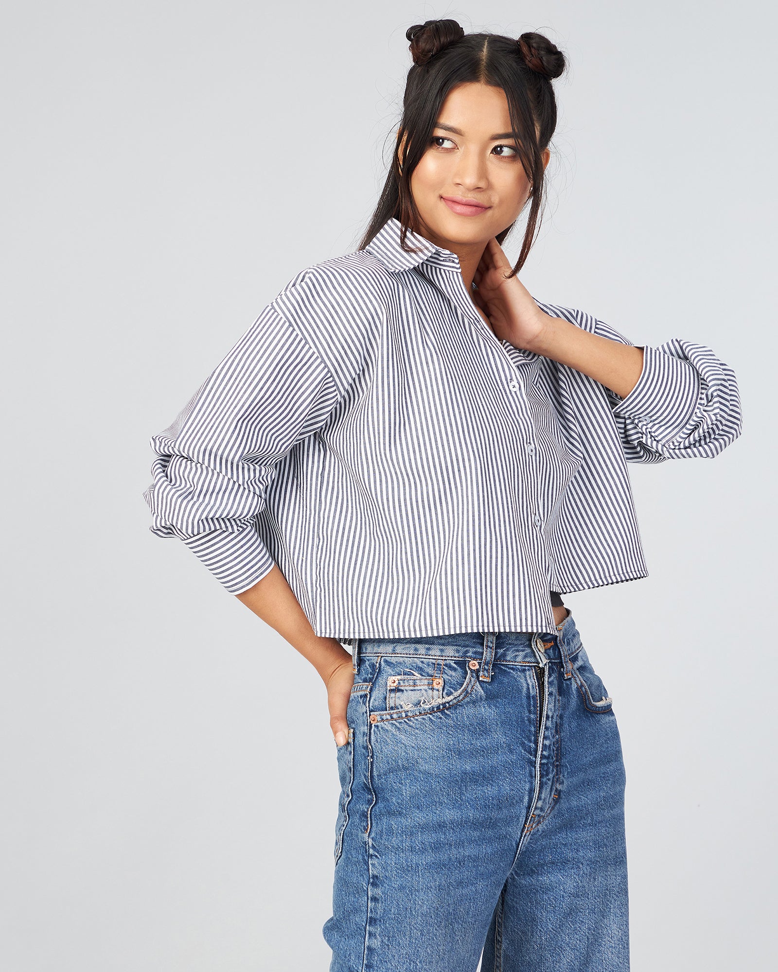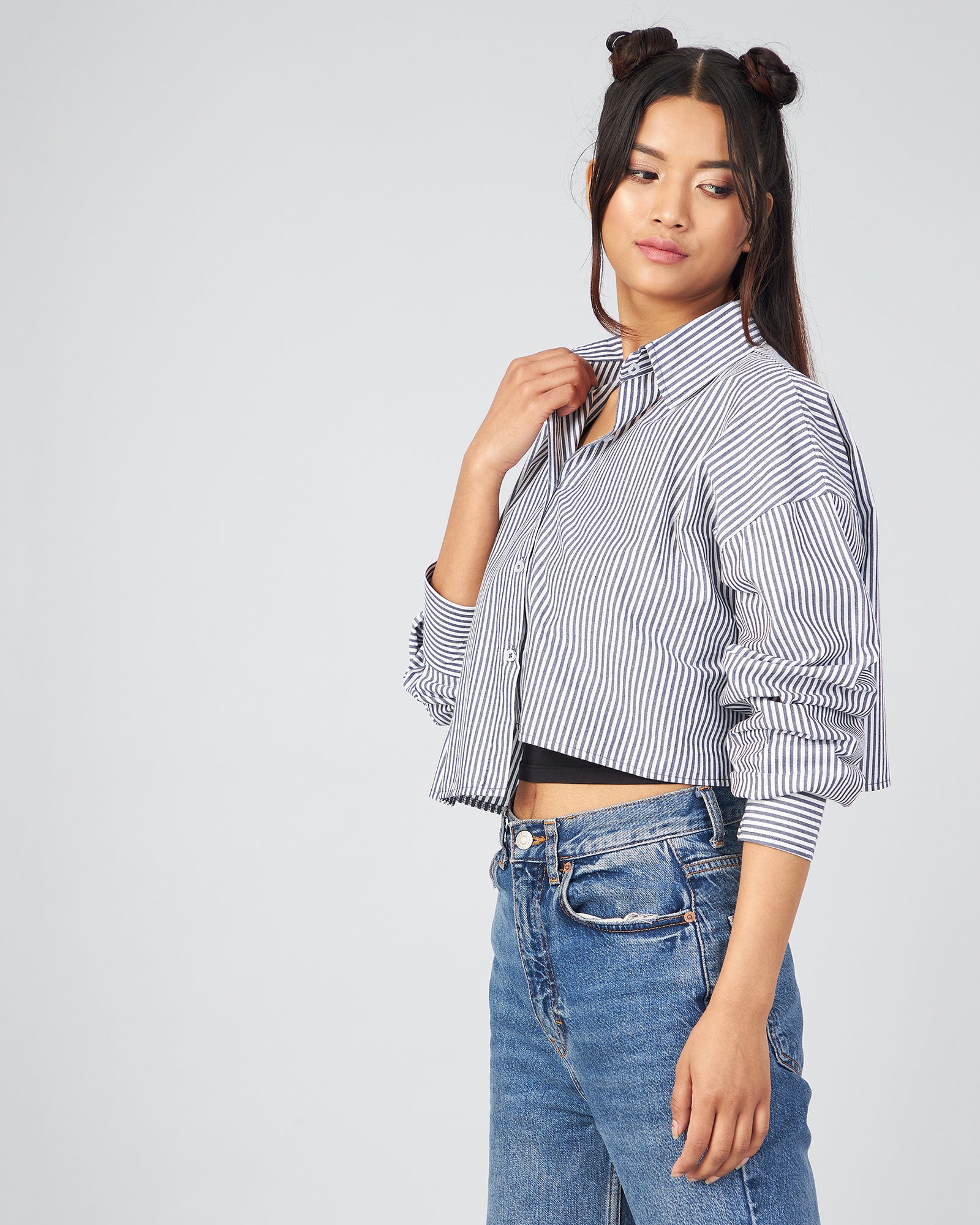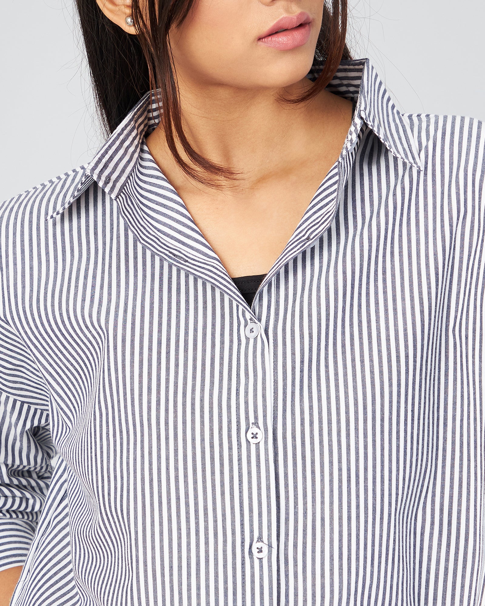 Style: Full Sleeve Up Down Crop Shirt