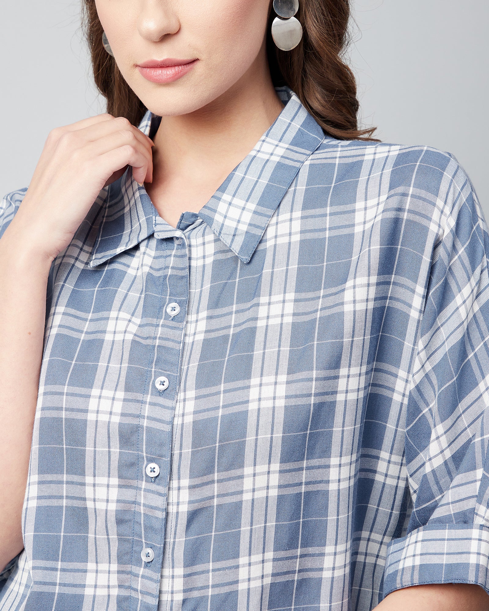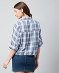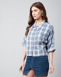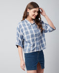 Chimpaaanzee Women Viscose Blue Checks Half Sleeve Crop Shirt