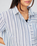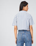 Chimpaaanzee Women Viscose Blue & White Striped Short Sleeve Crop Shirt