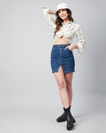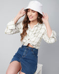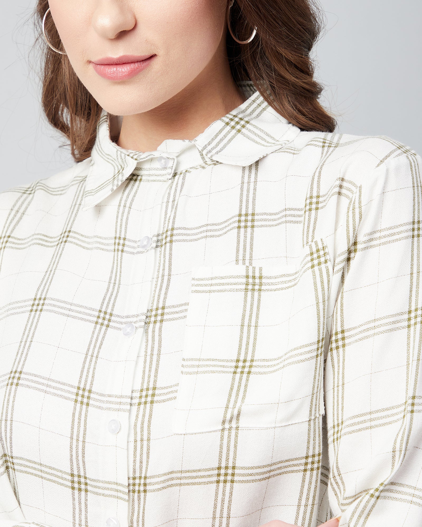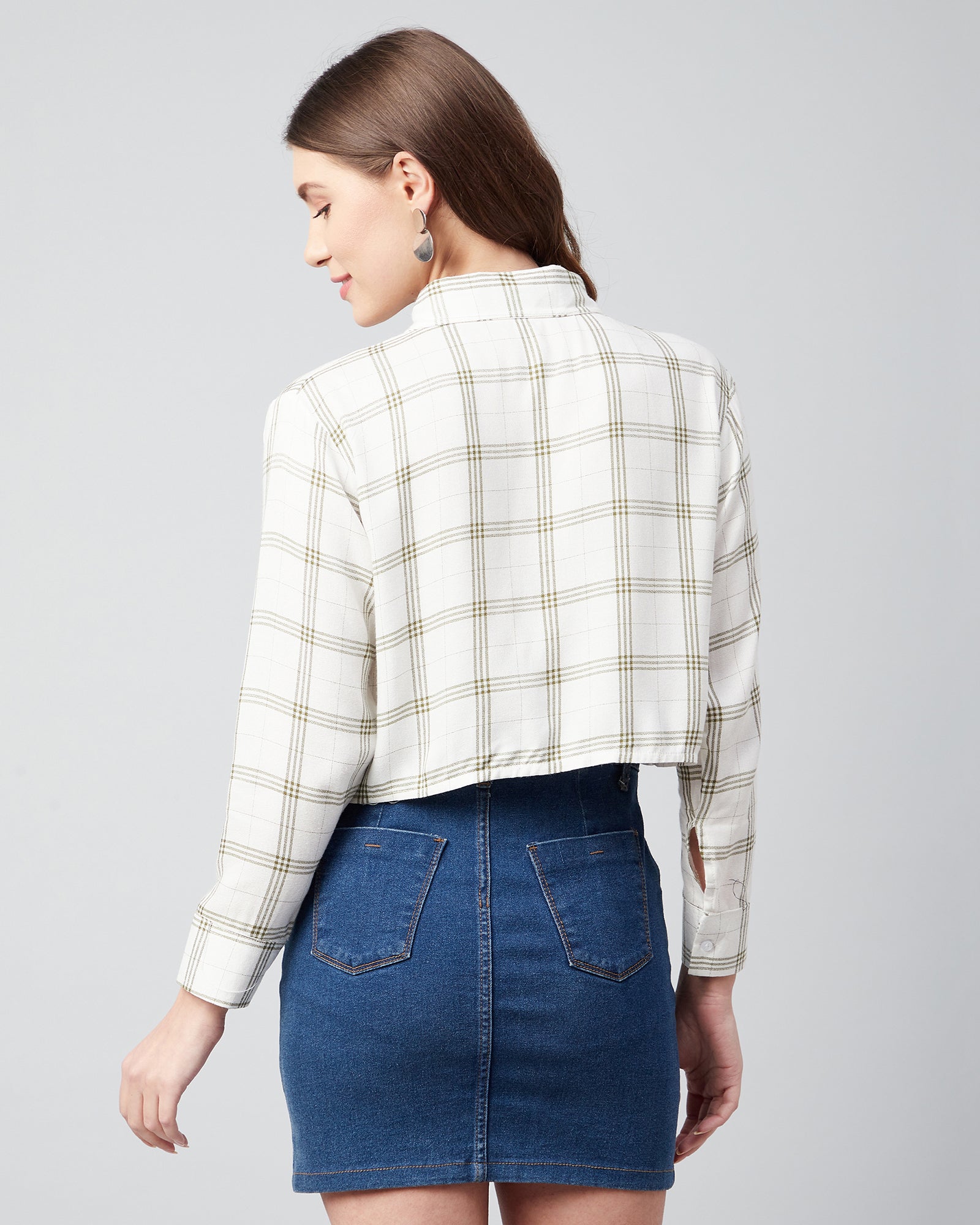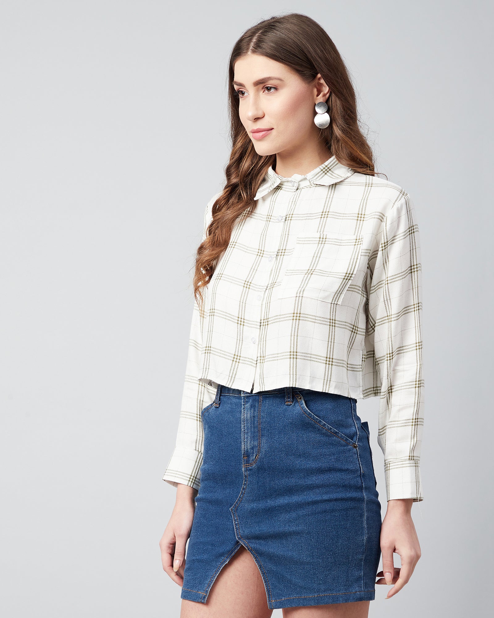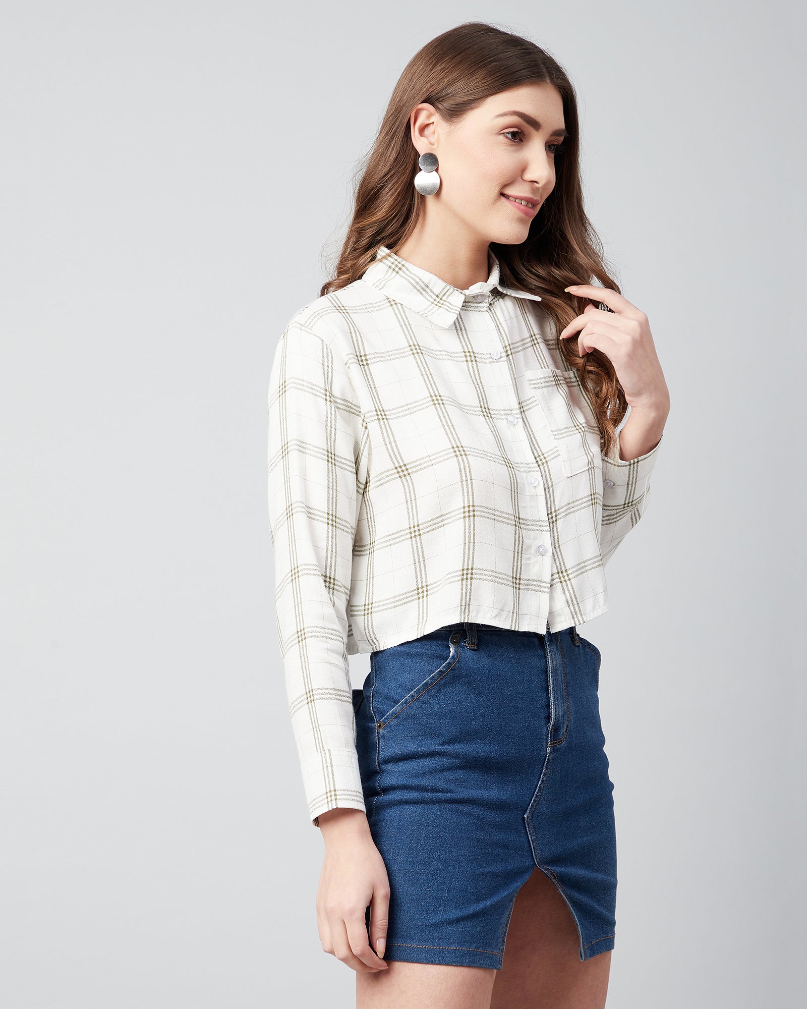 Chimpaaanzee Women Viscose Green & White Drop Shoulder Crop Shirt