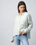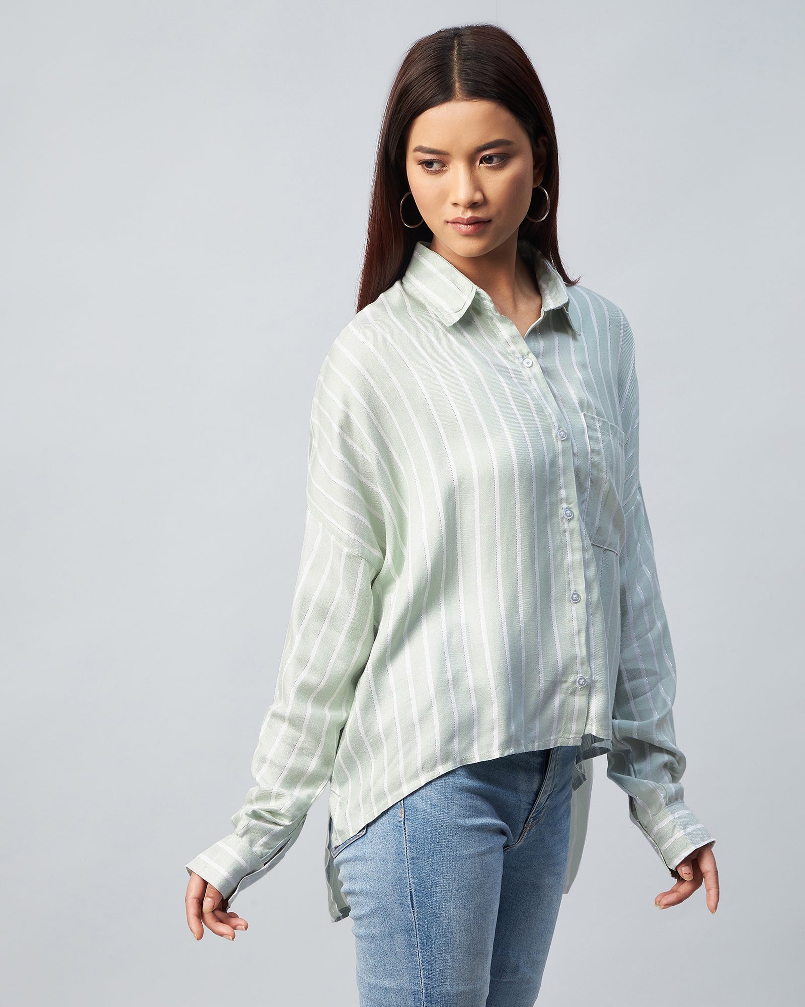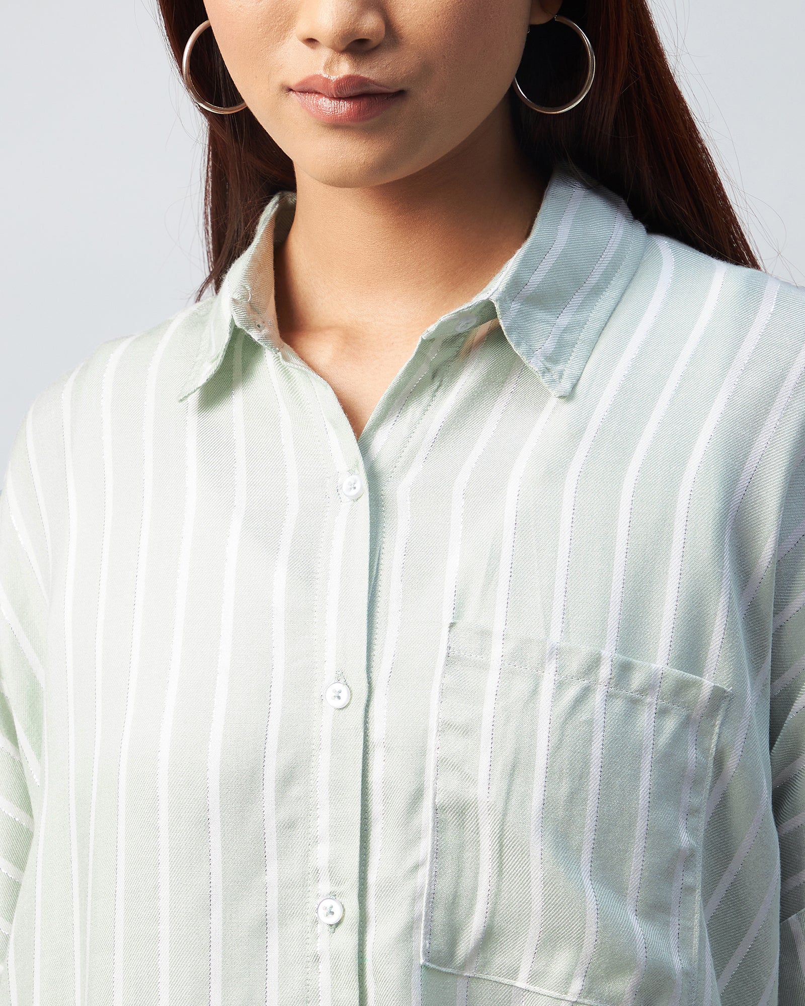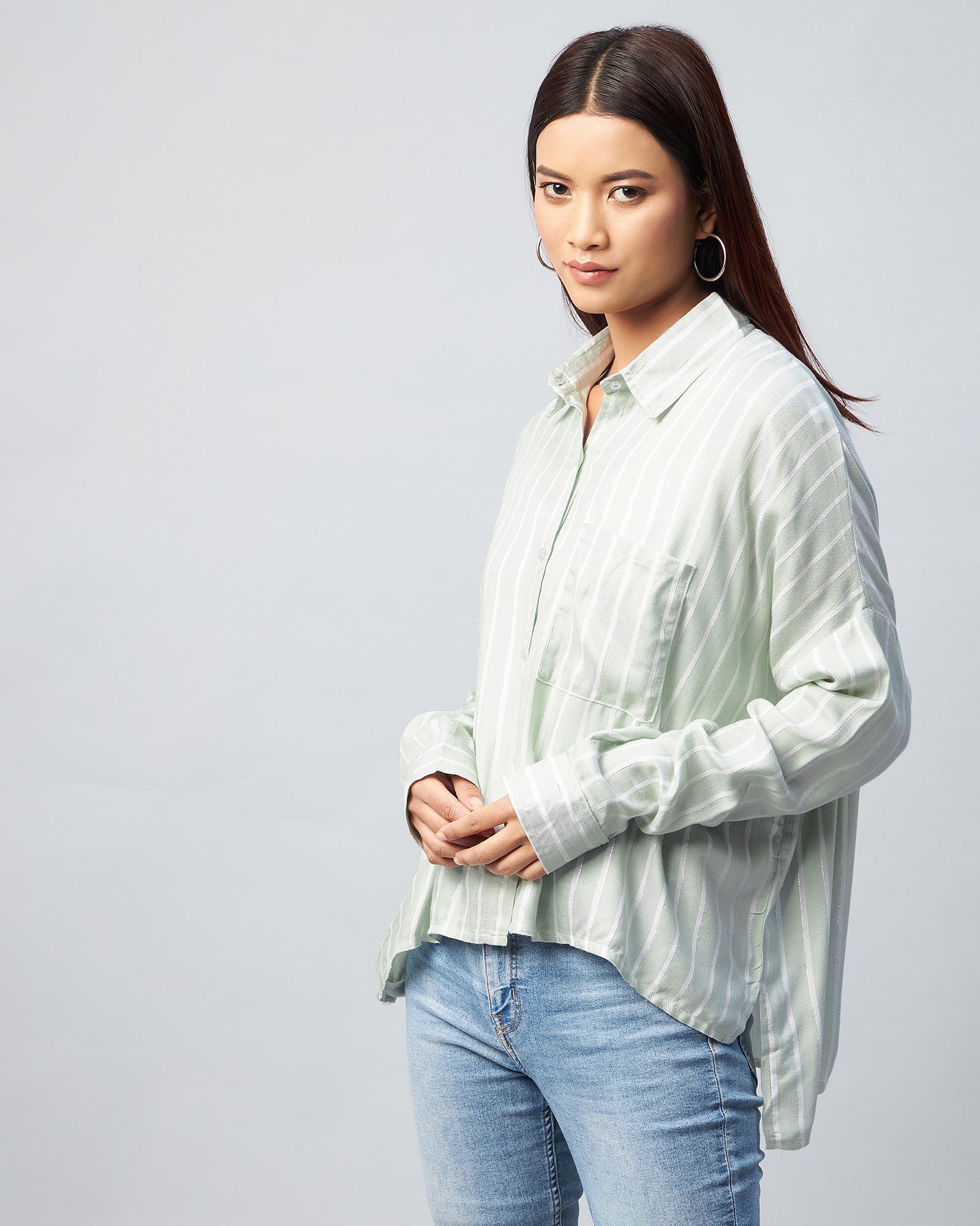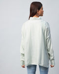 Chimpaaanzee Women Viscose Green & White Striped Oversized Fit Shirt