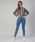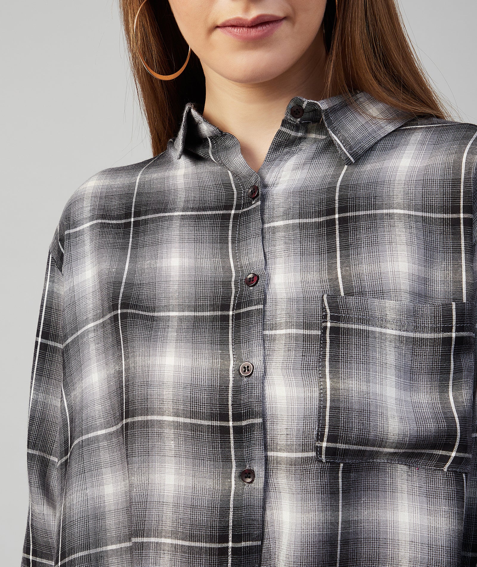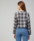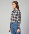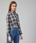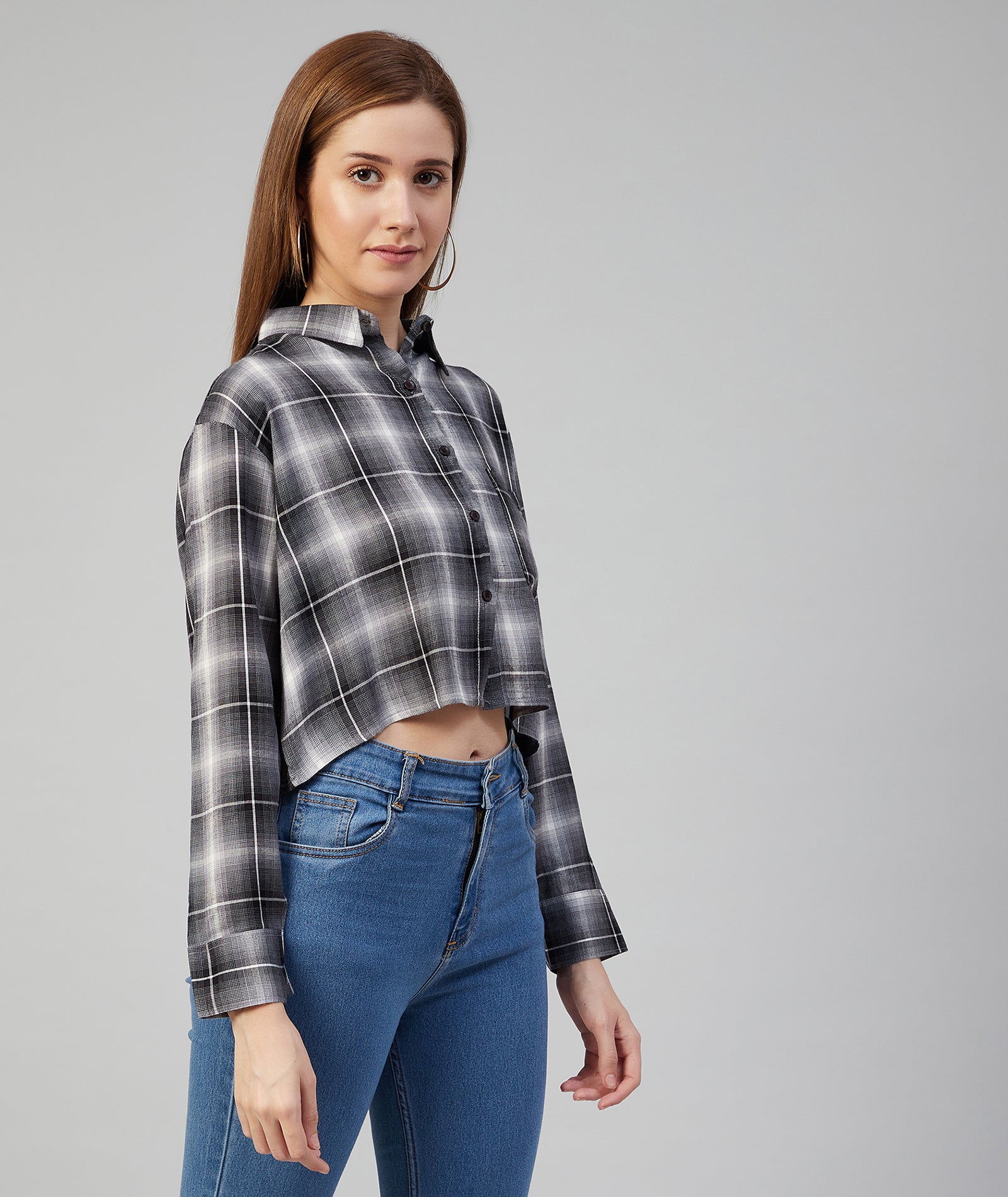 Chimpaaanzee Women Viscose Grey Checkered Full Sleeve Crop Shirt