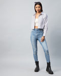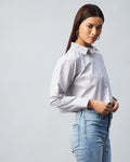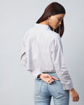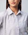 Chimpaaanzee Women Viscose Grey Solid Full Sleeve drop Shoulder Crop Shirt