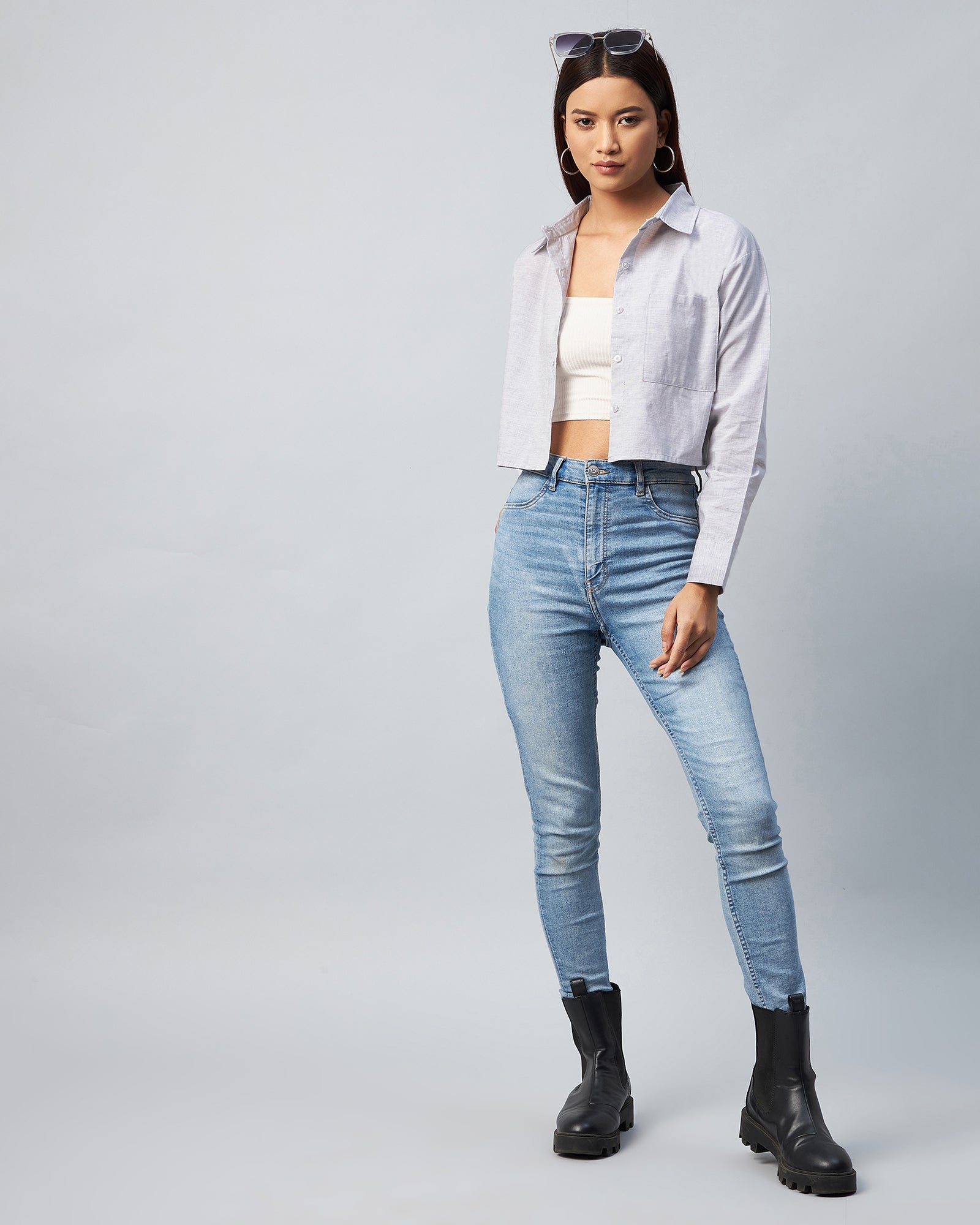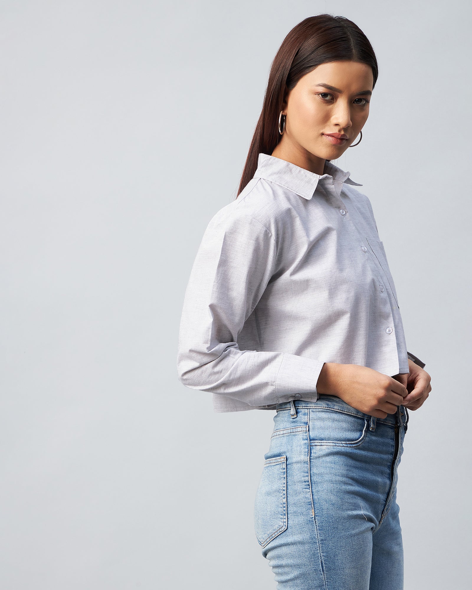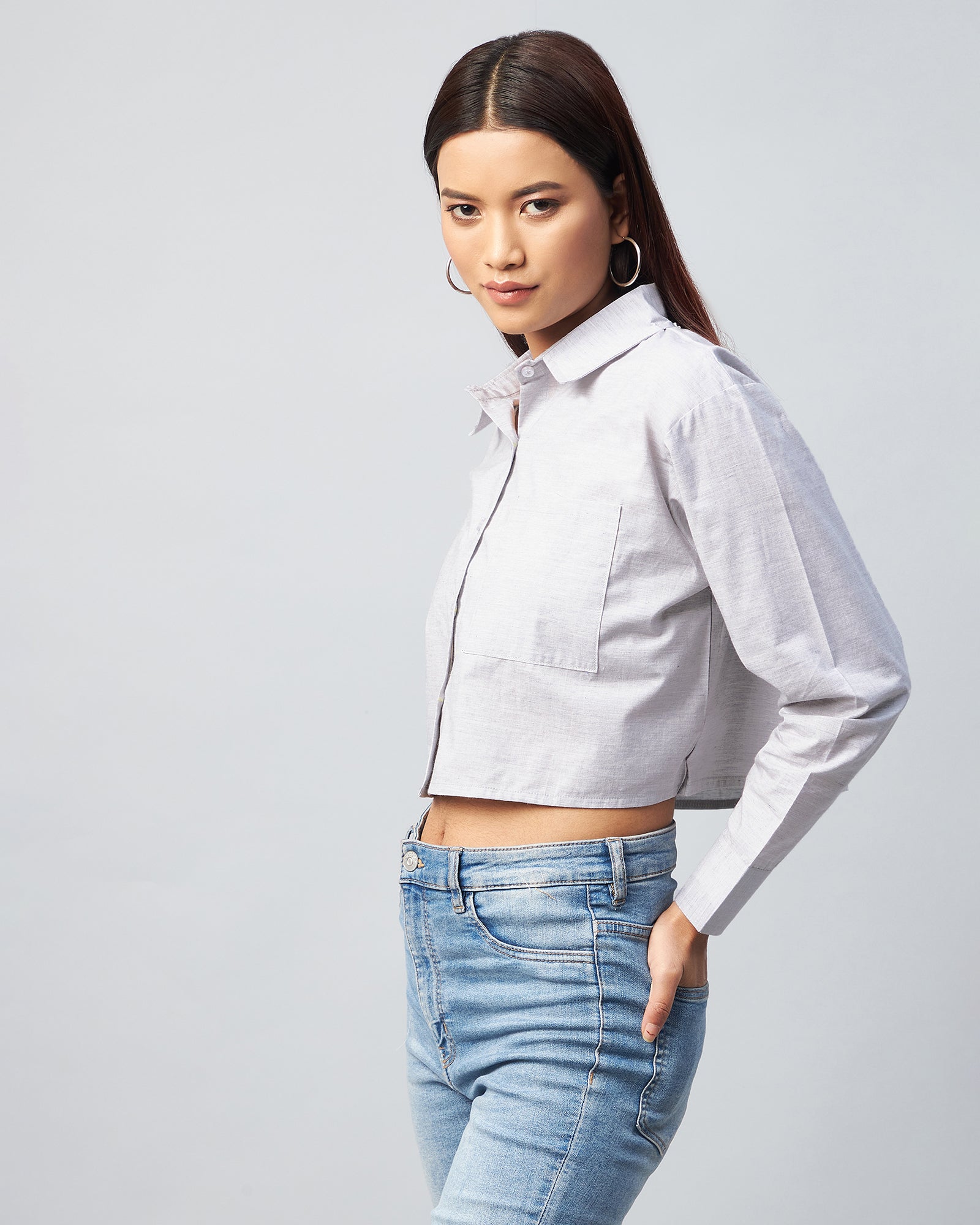 Style: Full Sleeve Drop Shoulder Crop Shirt