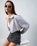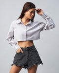 Chimpaaanzee Women Viscose Grey Solid Fully Cropped Shirt