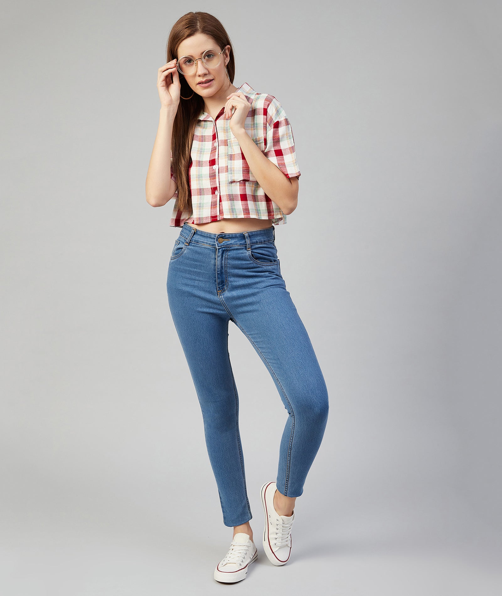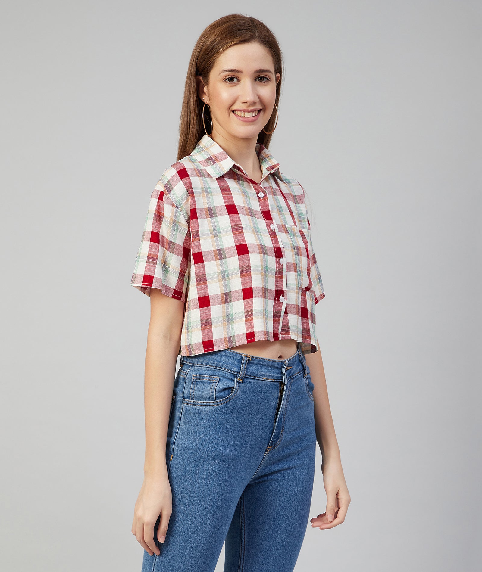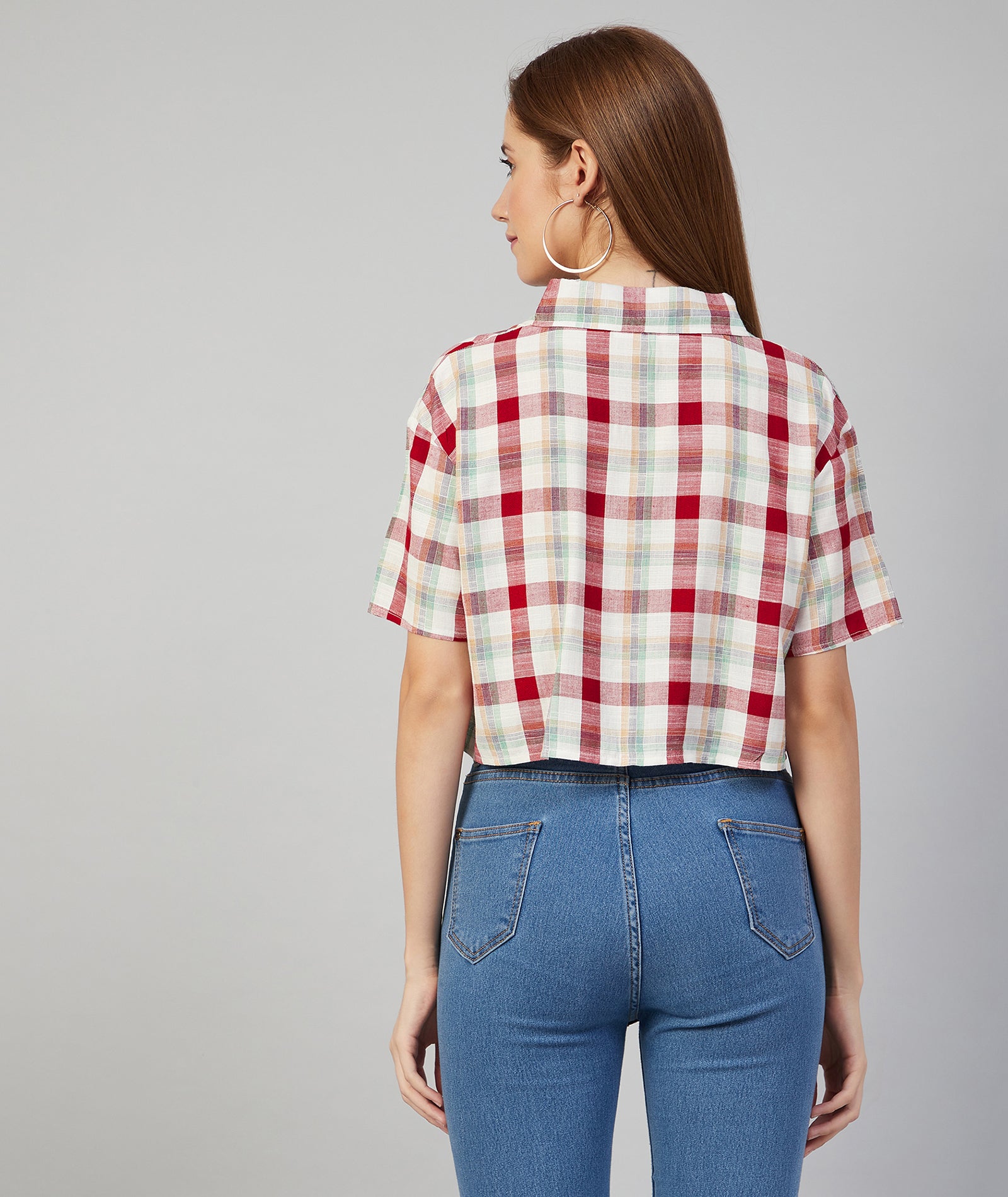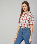 Chimpaaanzee Women Viscose Multicolor Checkered Crop Shirt
