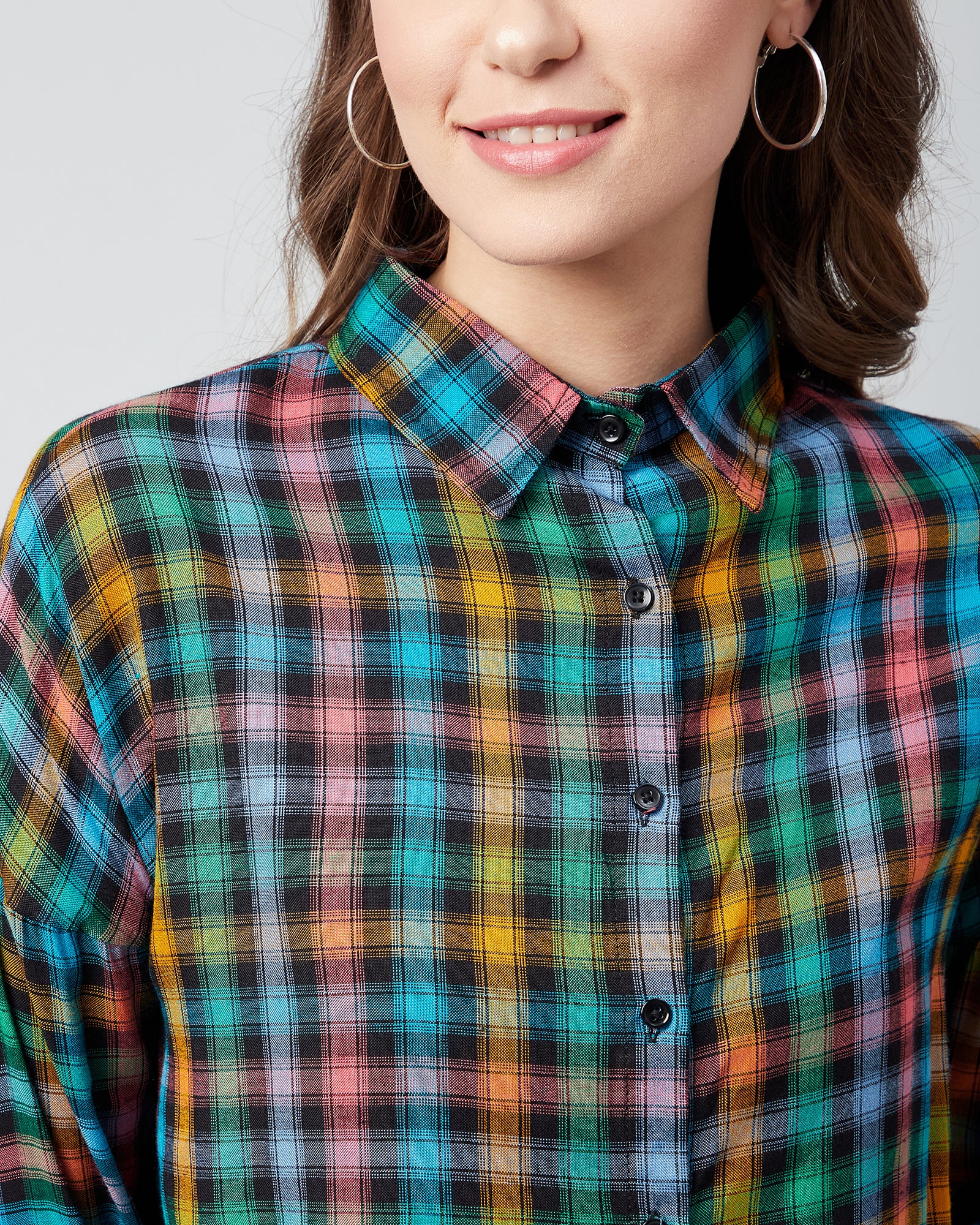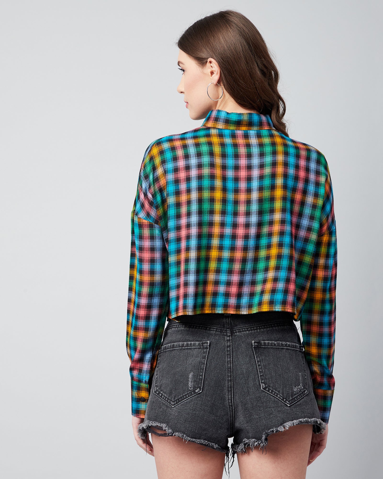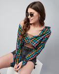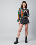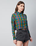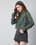Chimpaaanzee Women Viscose Multicolor Drop Shoulder Crop Shirt