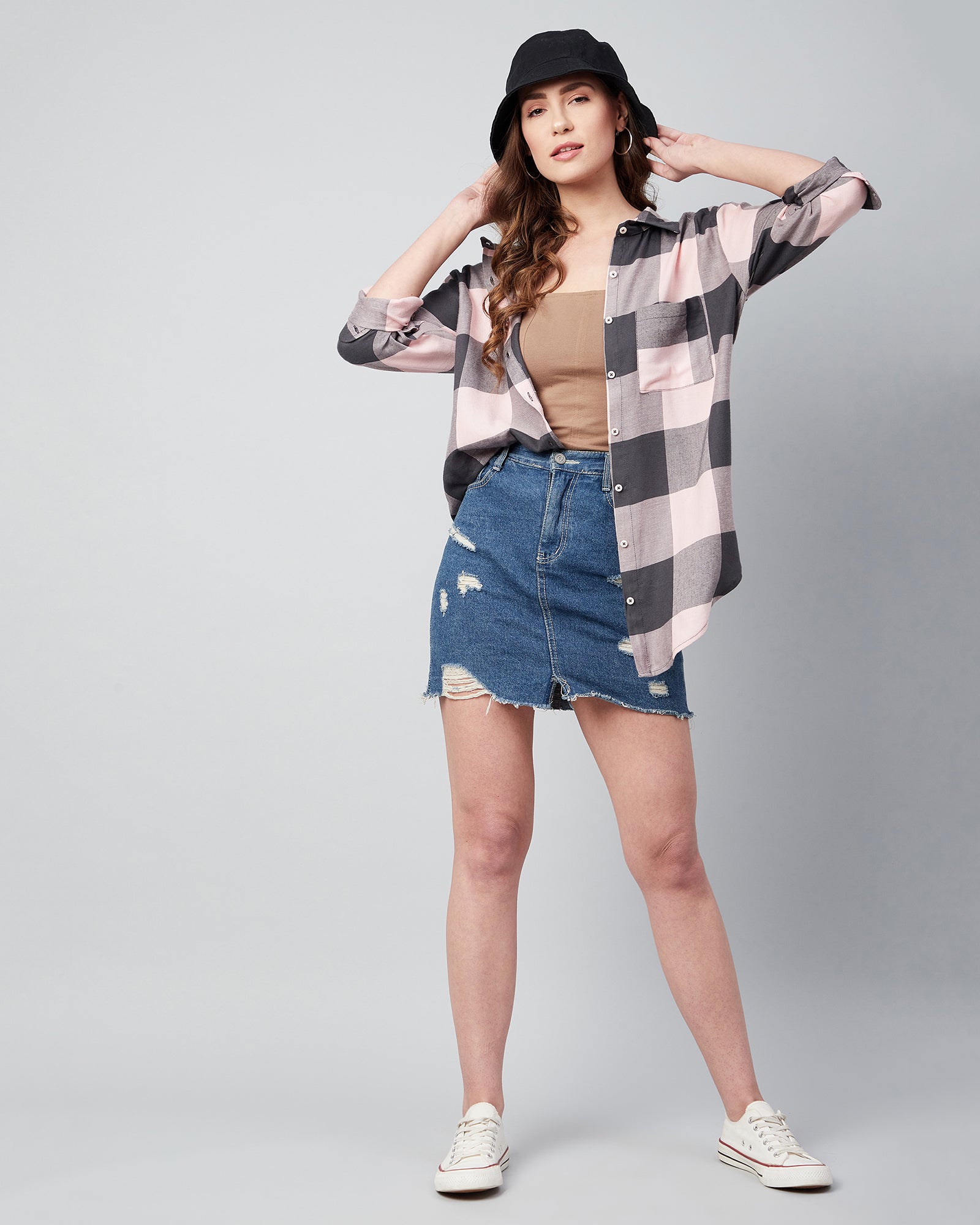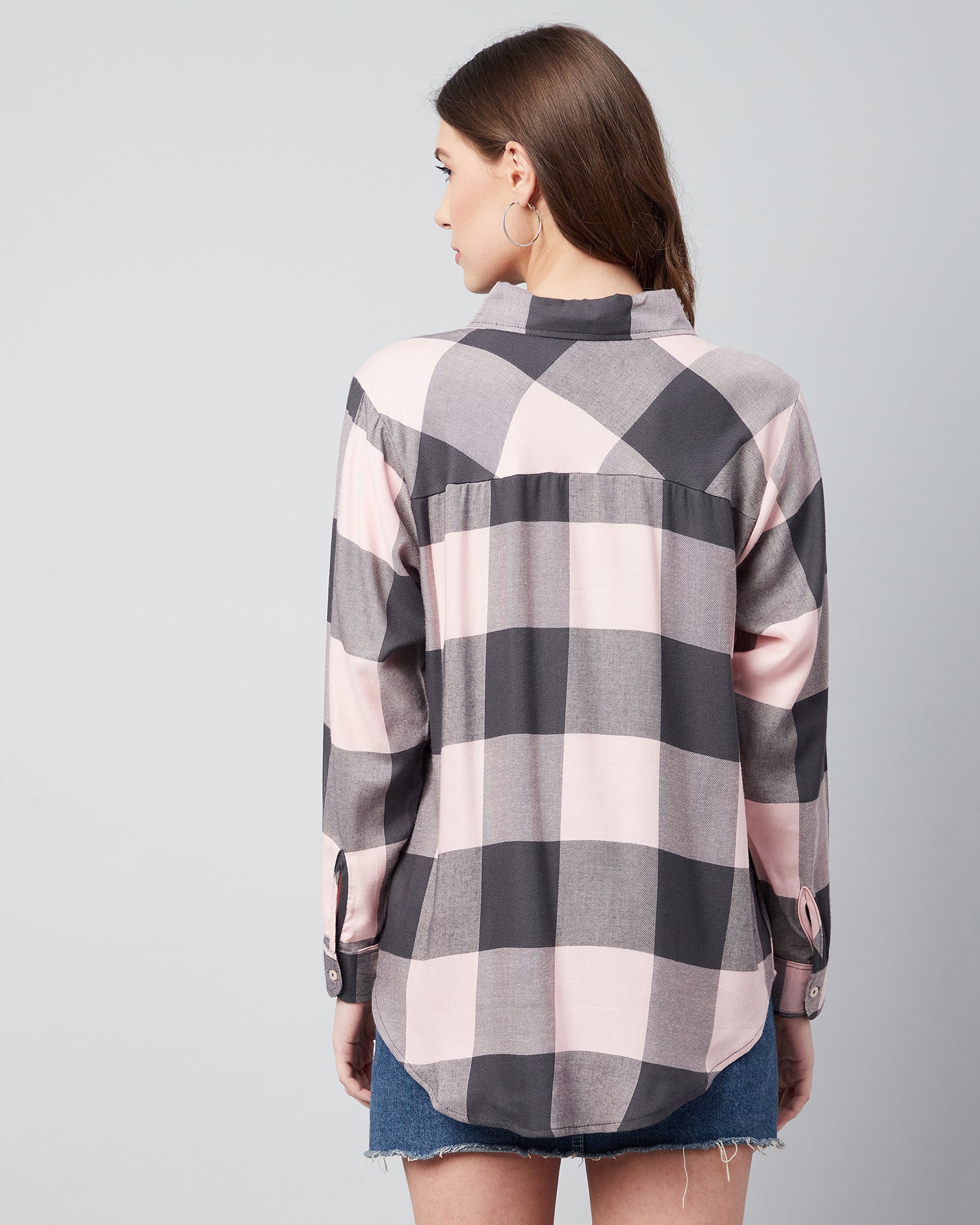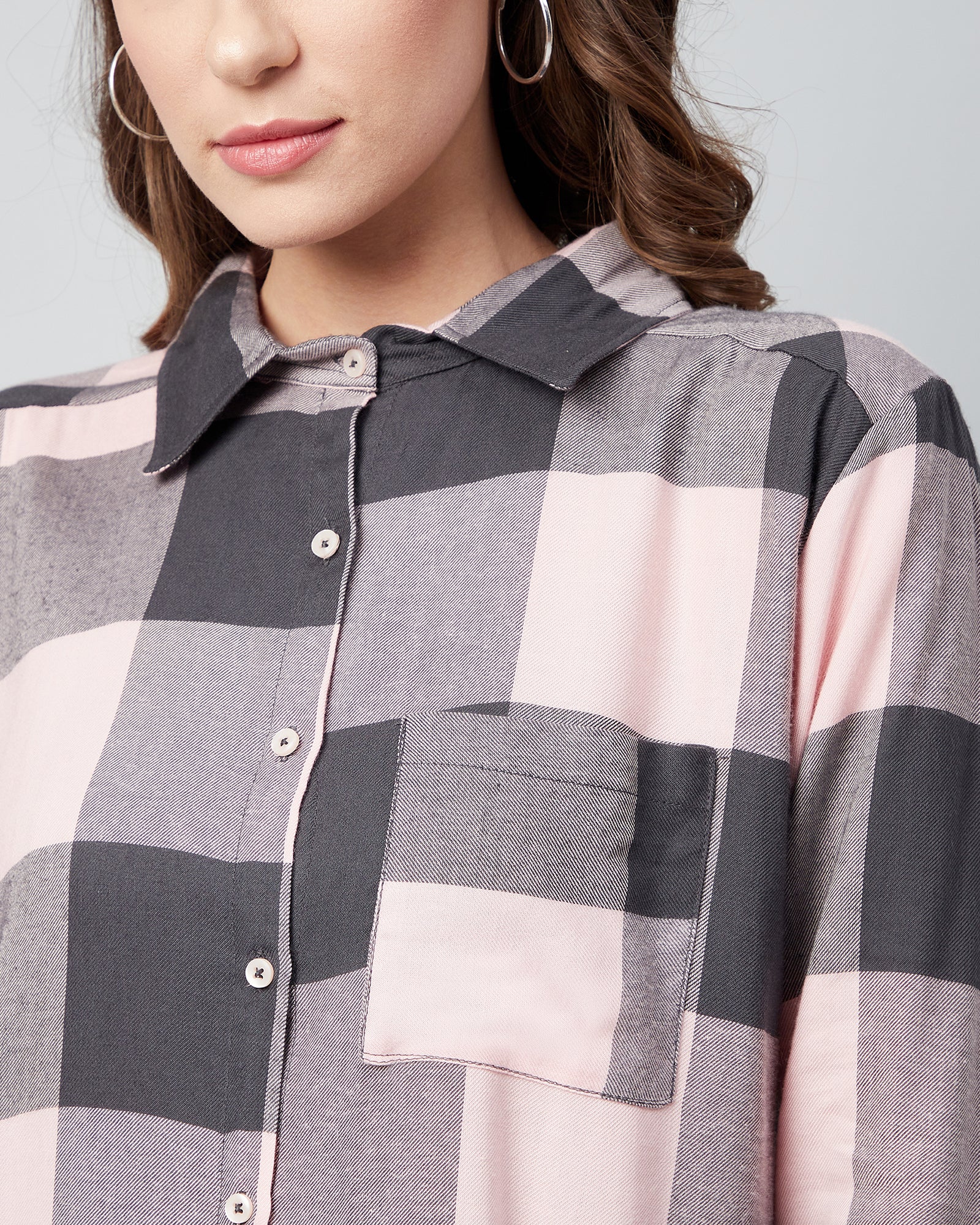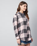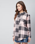 Chimpaaanzee Women Viscose Pink & Grey Checks Loose Shirt