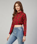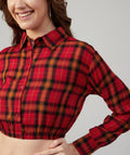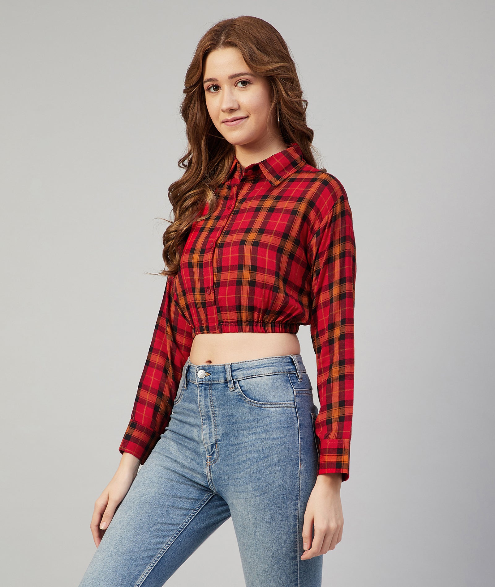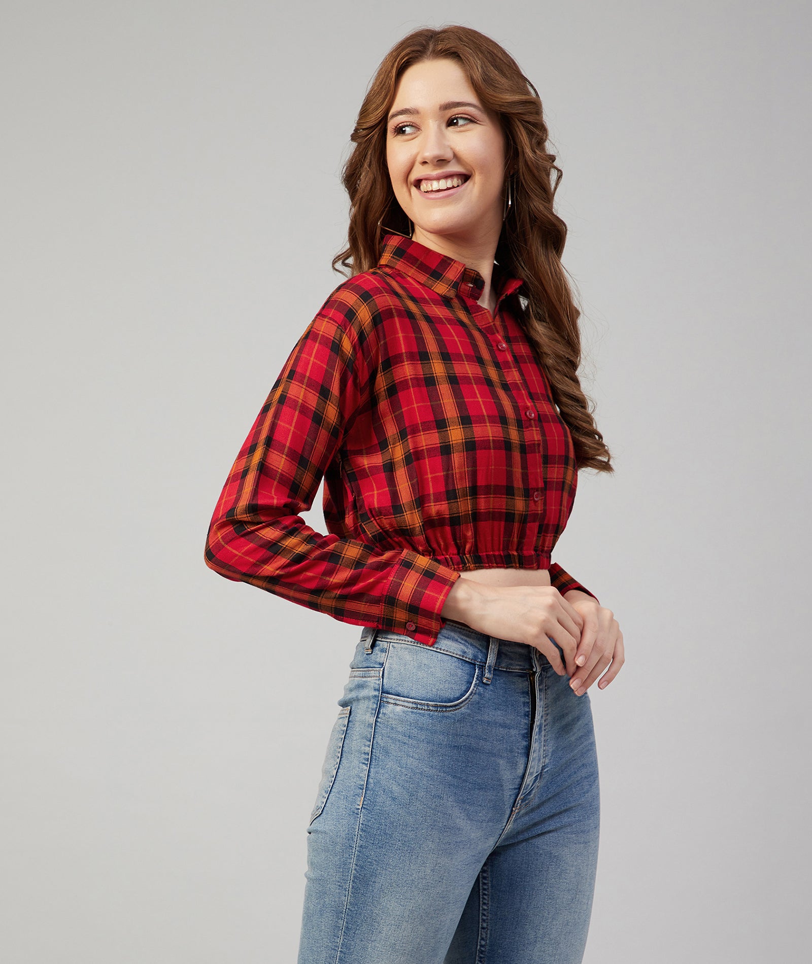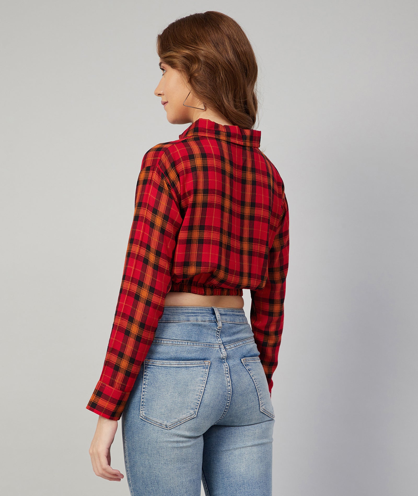 Chimpaaanzee Women Viscose Red and Orange Checkered Crop Shirt