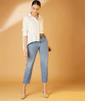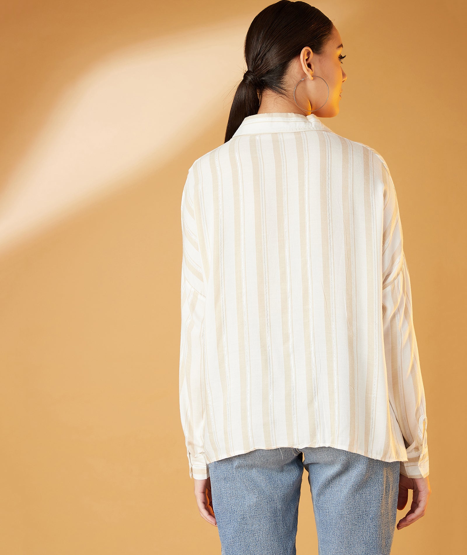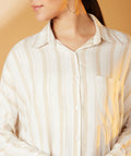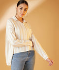 Chimpaaanzee Women Viscose Striped Loose Fit Beige Shirt