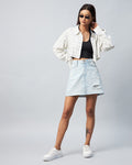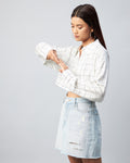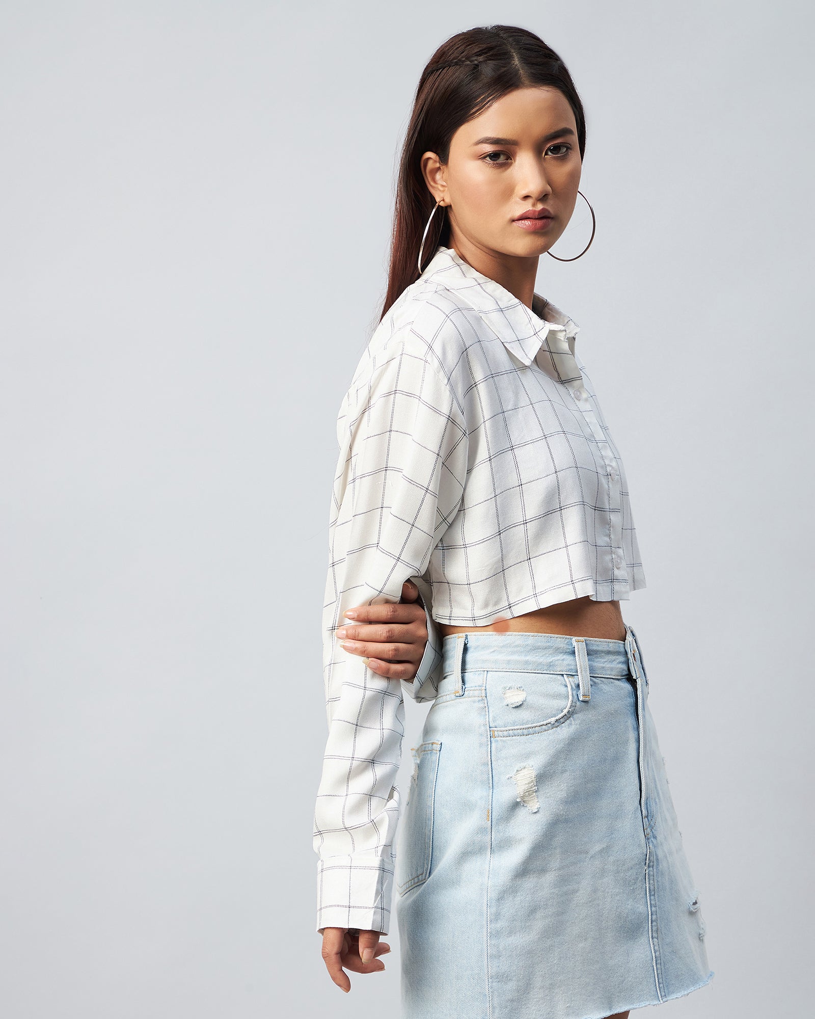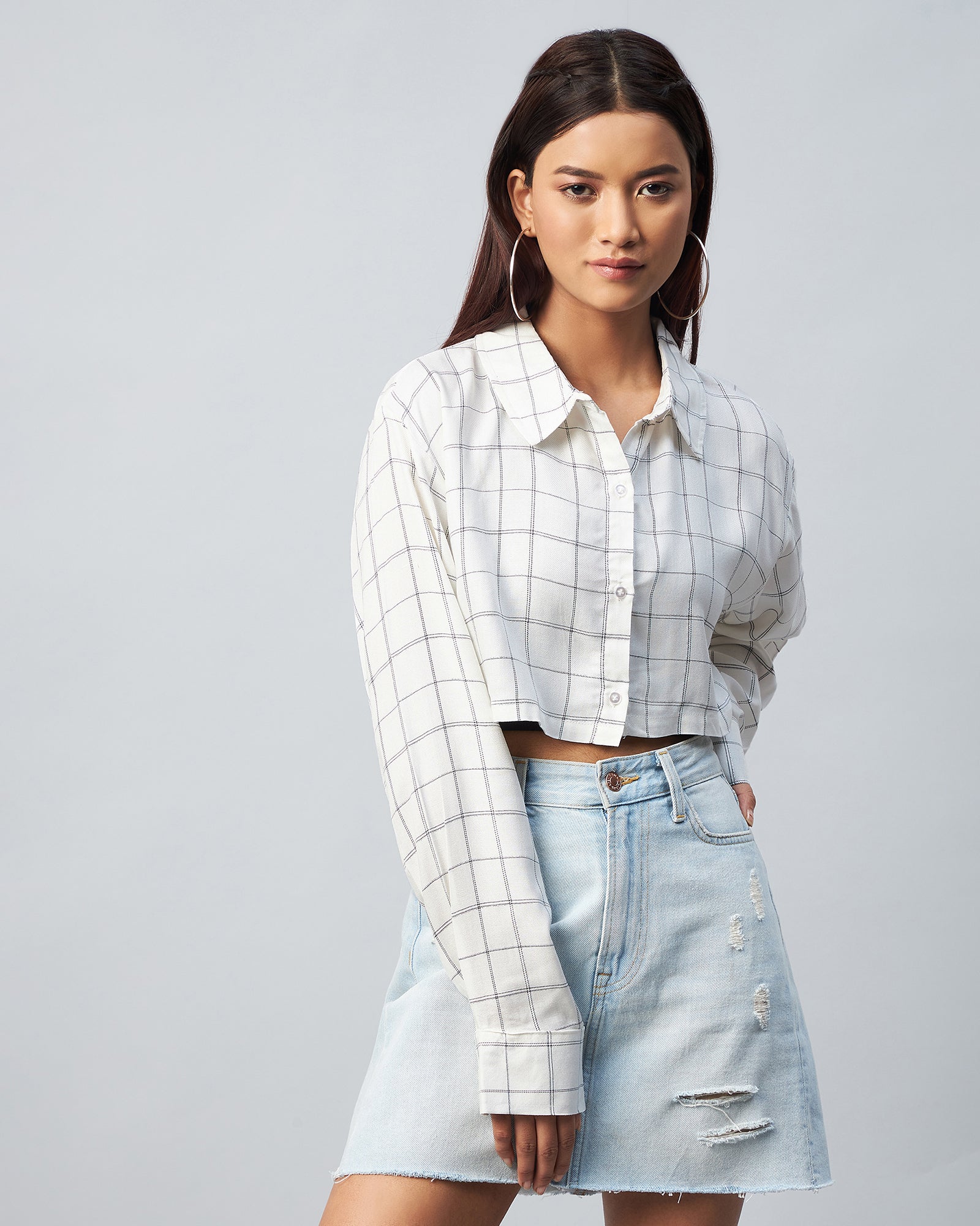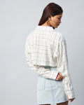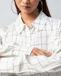 Chimpaaanzee Women Viscose White & Black Spakle Checkered Fully Cropped Shirt