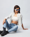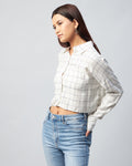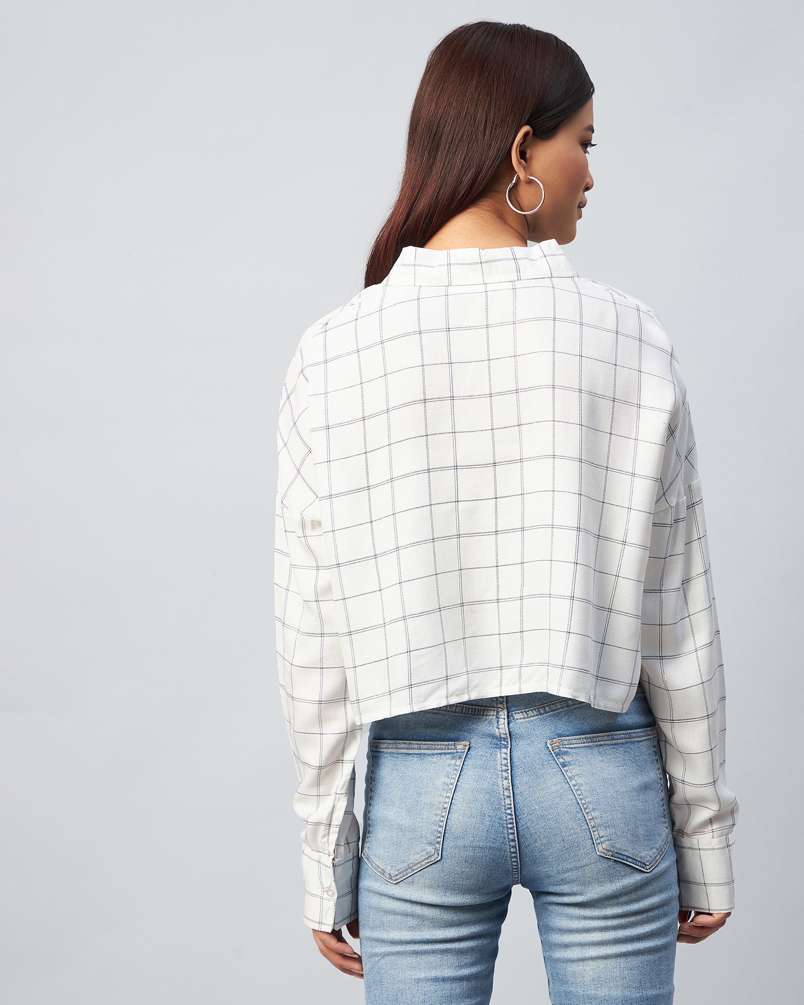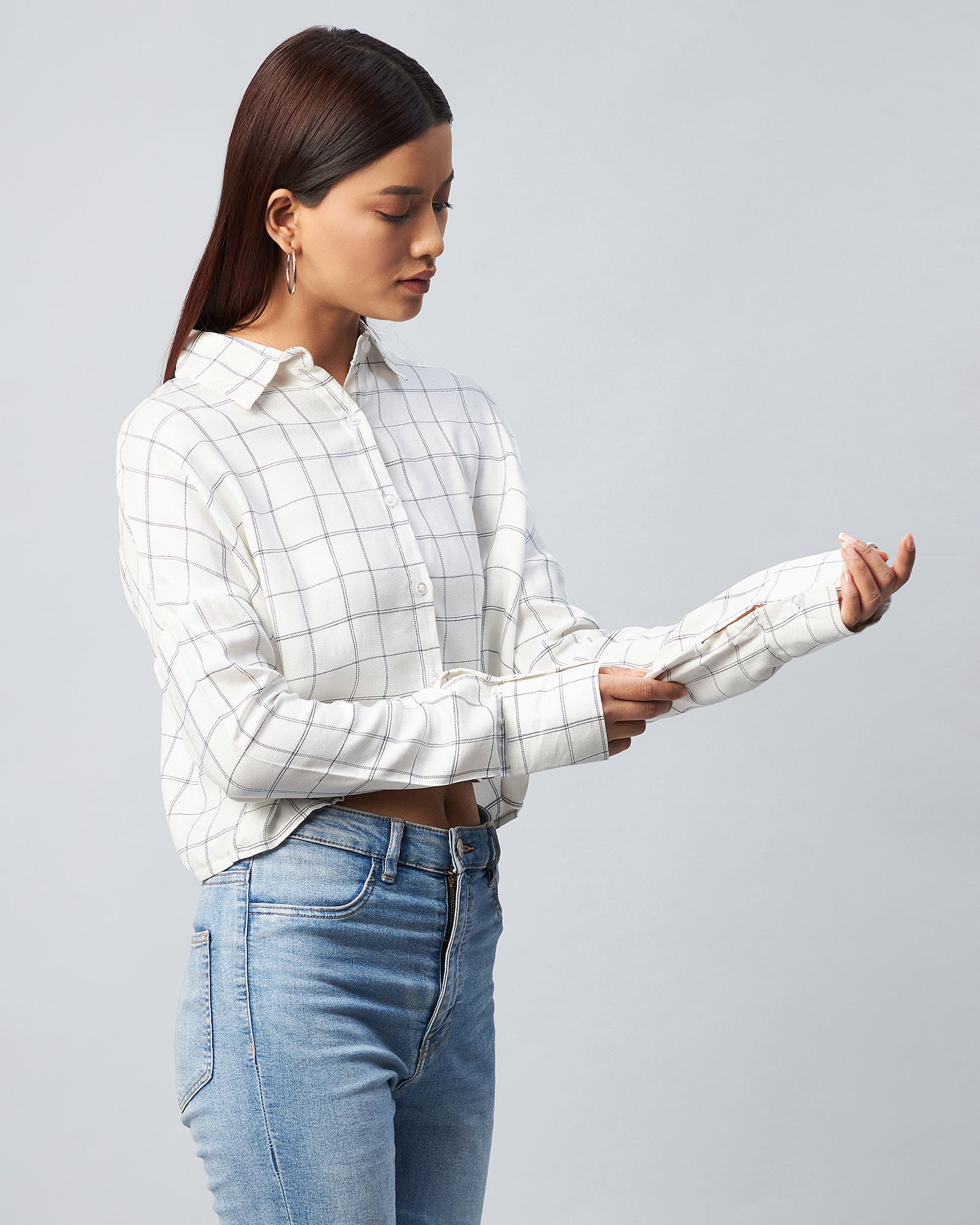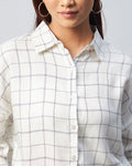 Chimpaaanzee Women Viscose White & Black Spakle Checks Full Sleeve Drop Shoulder Shirt