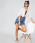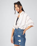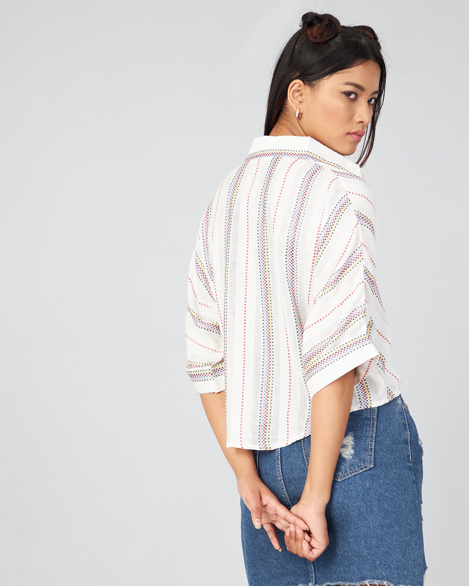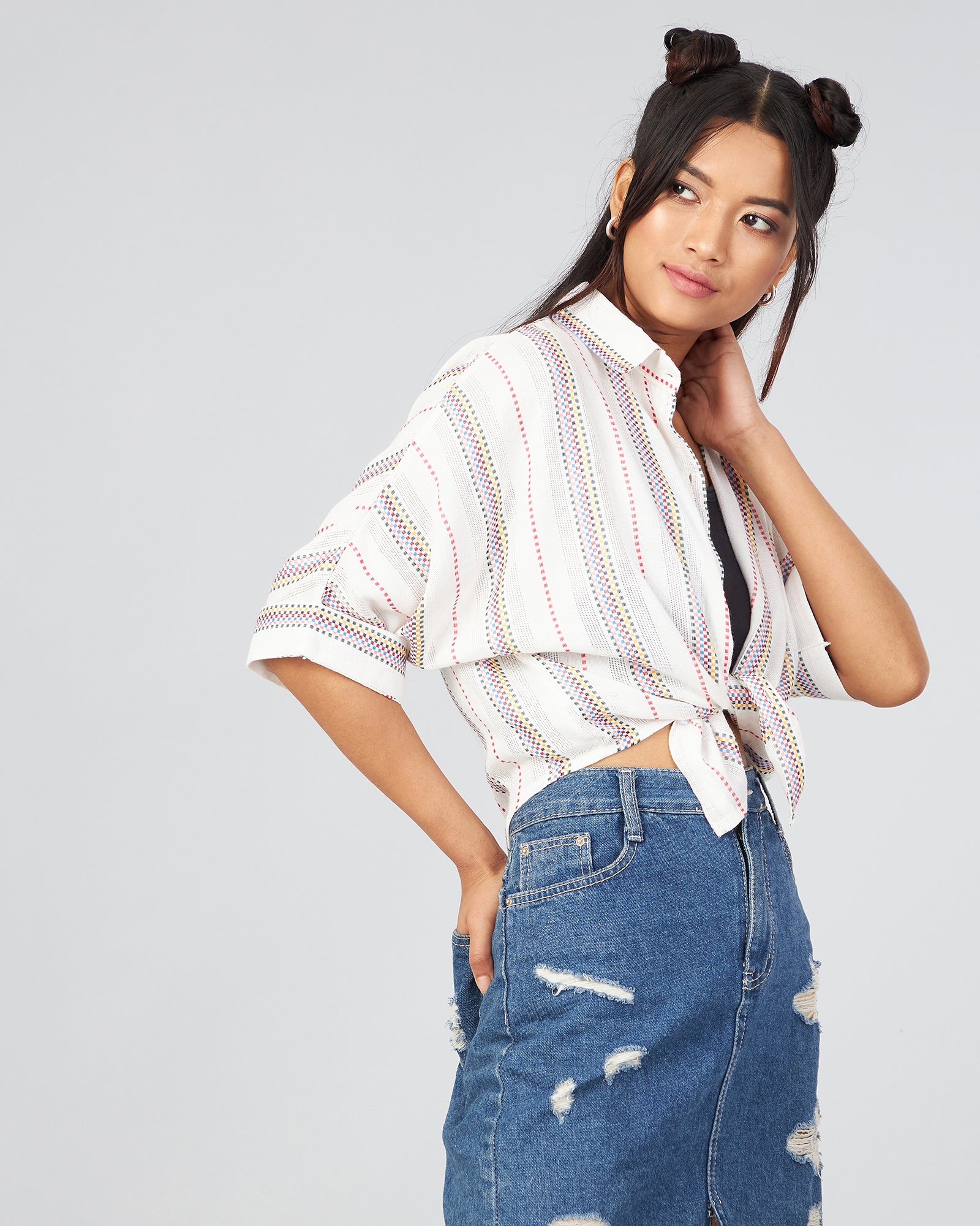 Chimpaaanzee Women Viscose White Striped Crop Shirt