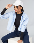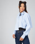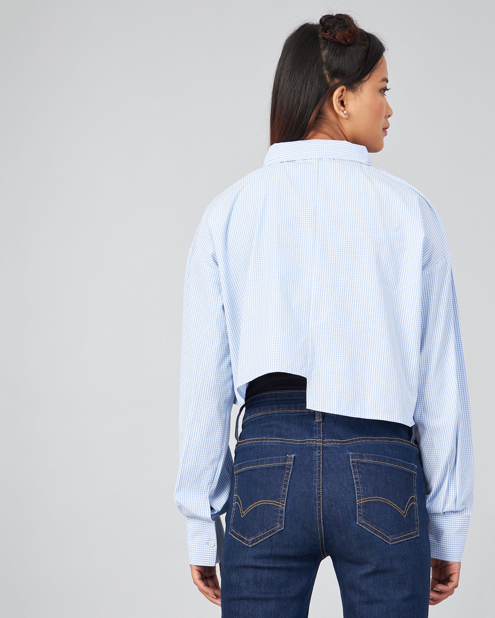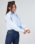 Chimpaaanzee Women Viscose White Striped Loose Fit Crop Shirt