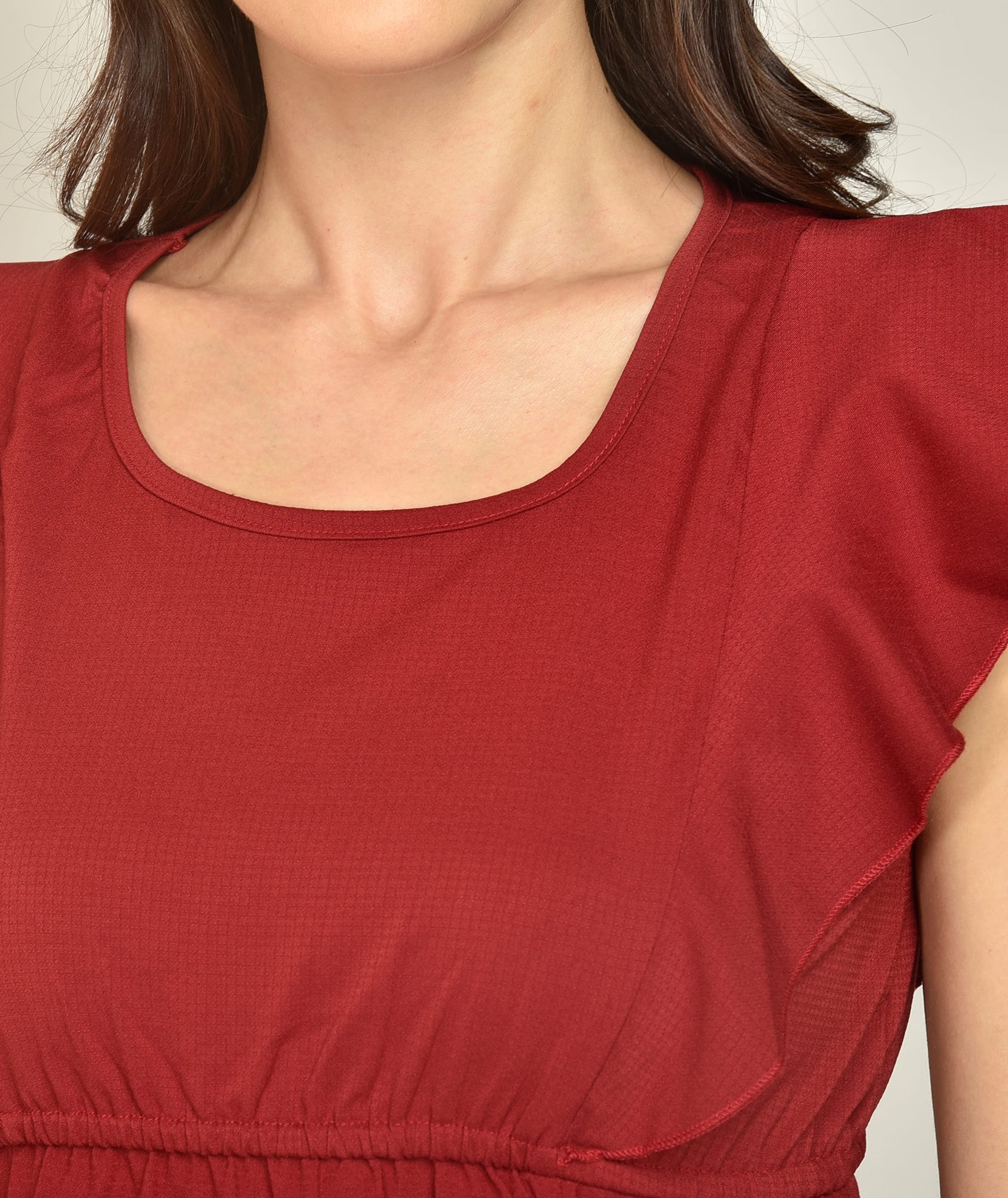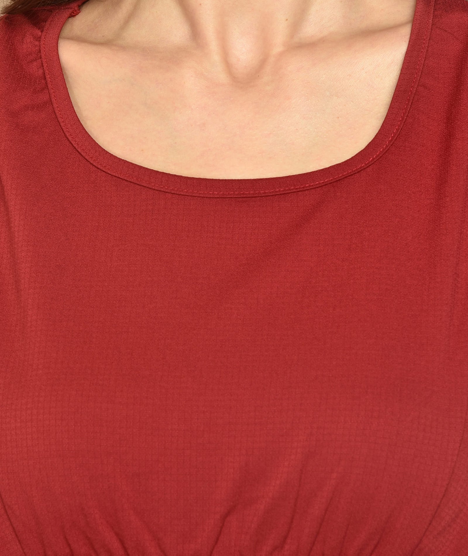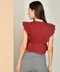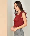This model has a height of 5 feet 7 inches and is wearing a Top of Size "S"