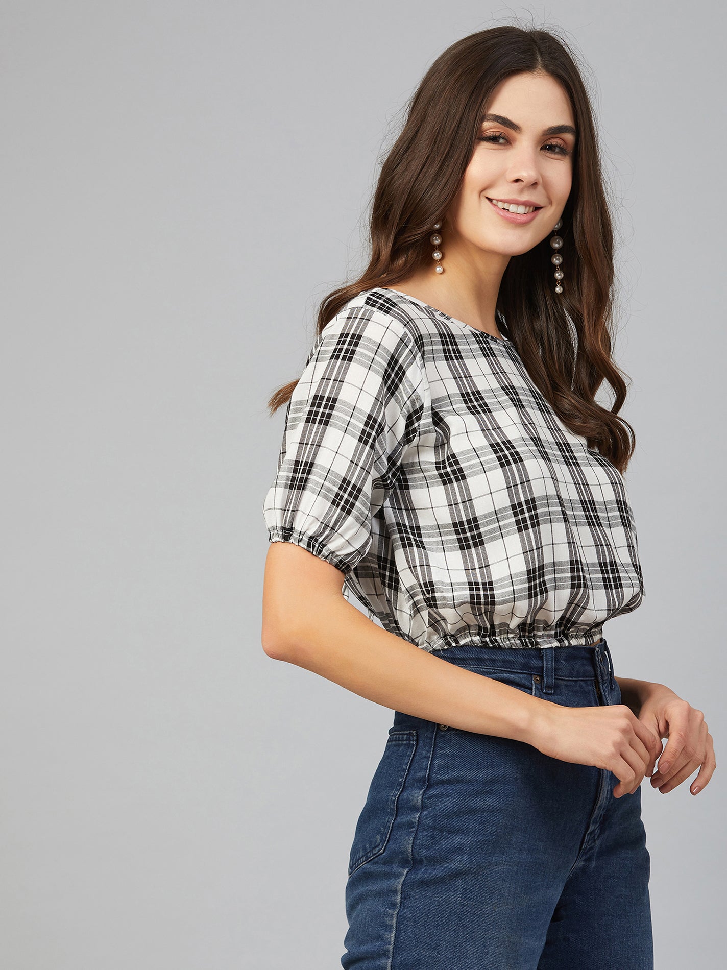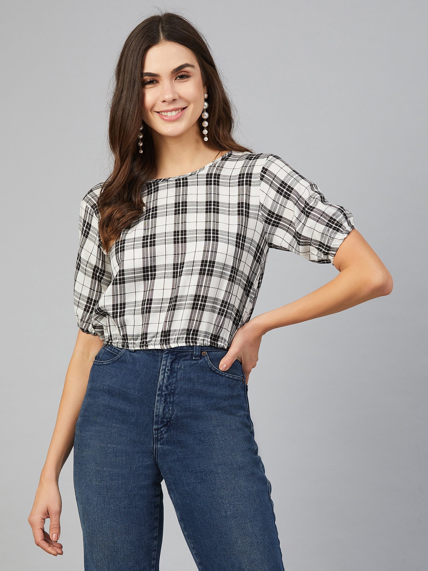 Chimpaaanzee Women White and Black Backside knotted Crop Top