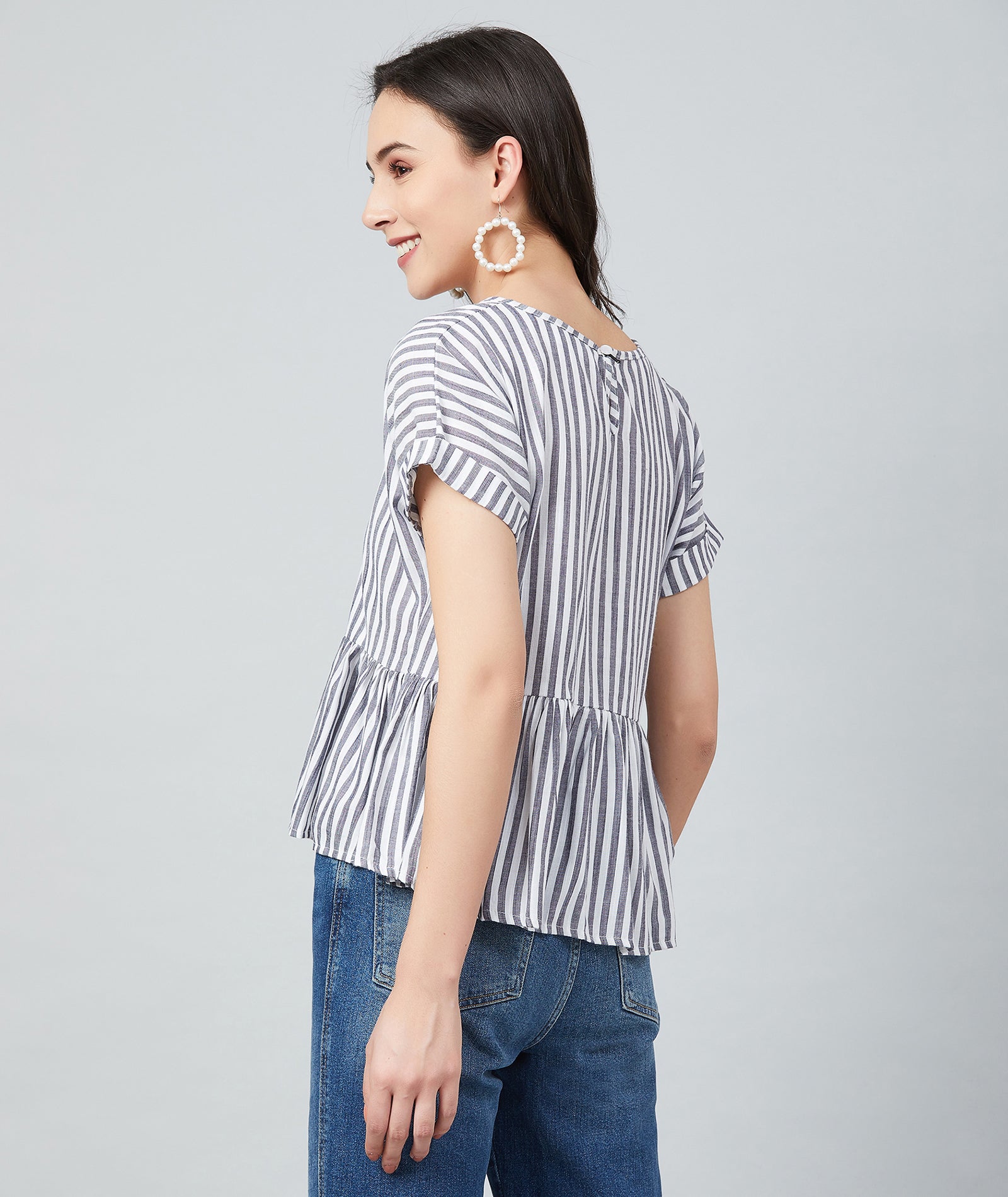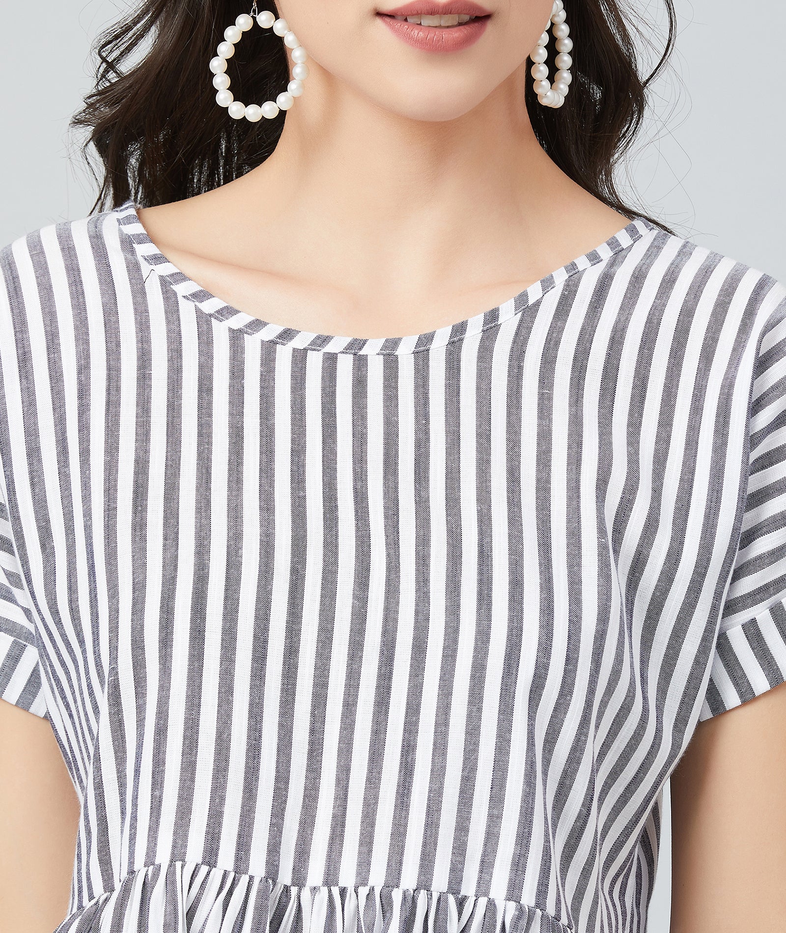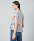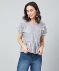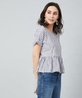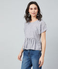 Chimpaaanzee Women White and Black Single Stripe Frill Style Top