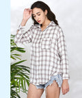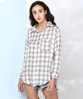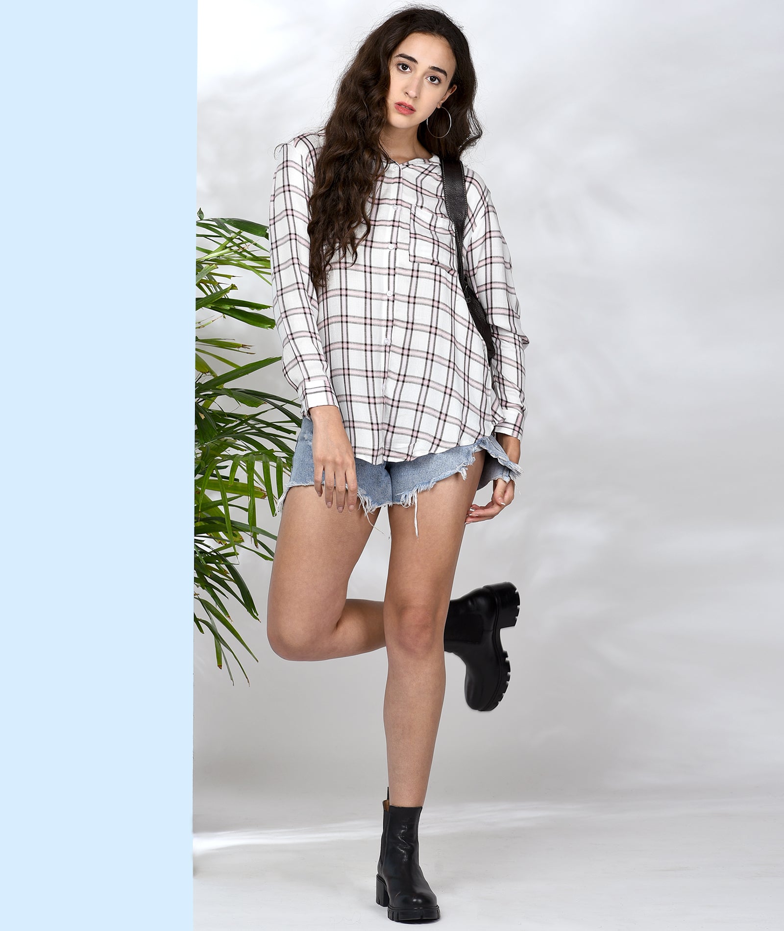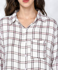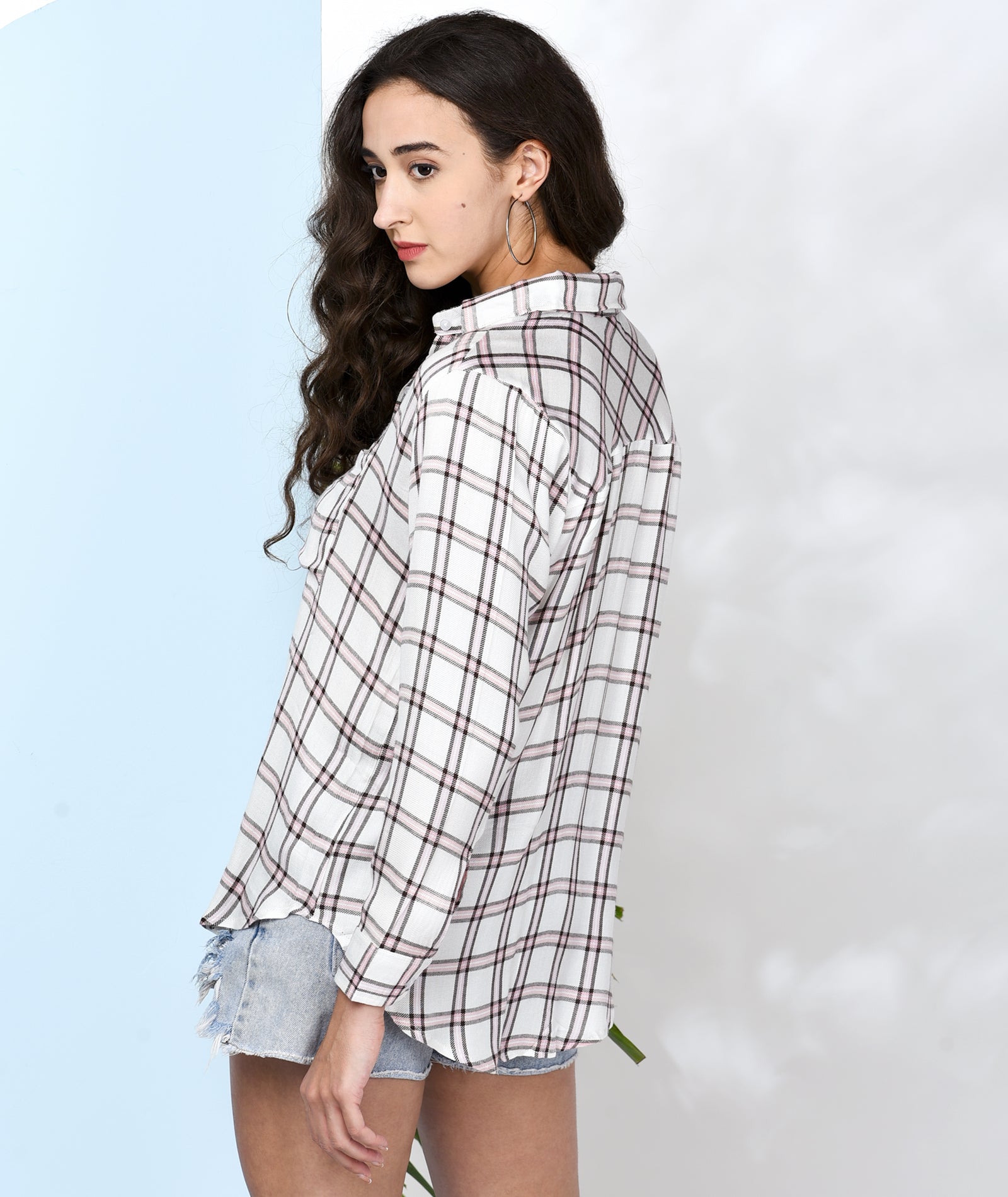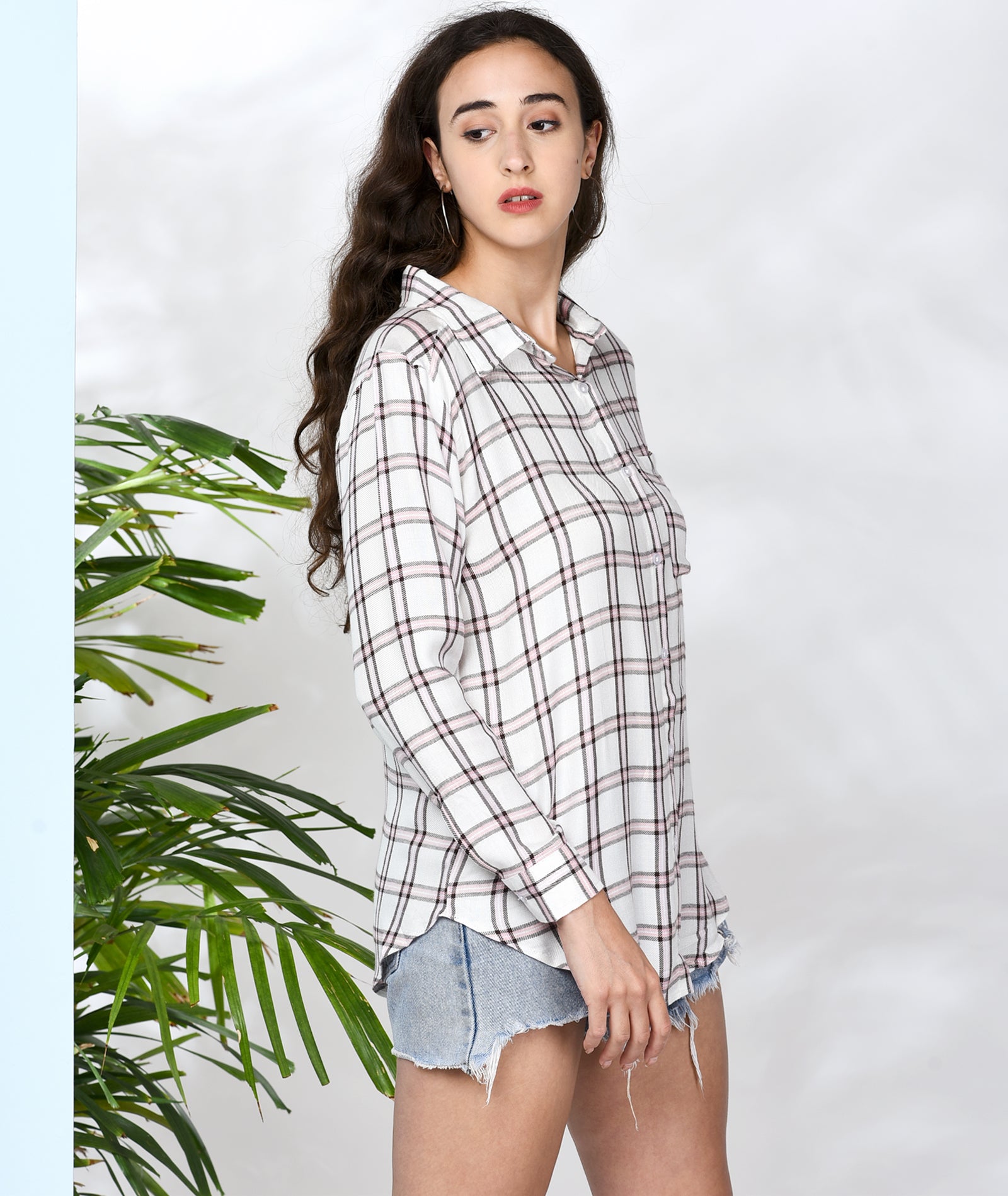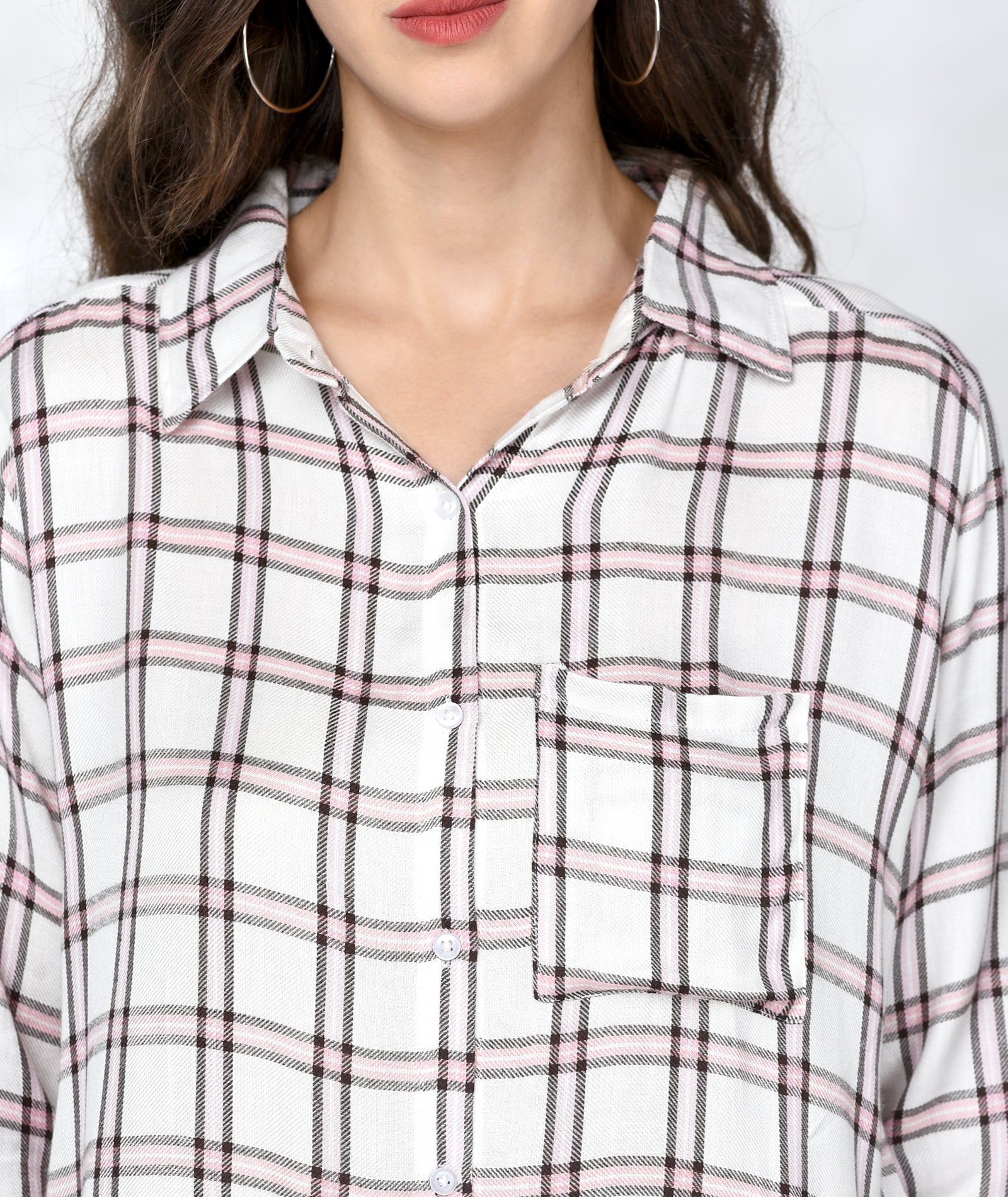 Chimpaaanzee Women White and Pink Viscose Loose Fit Checkered Shirt