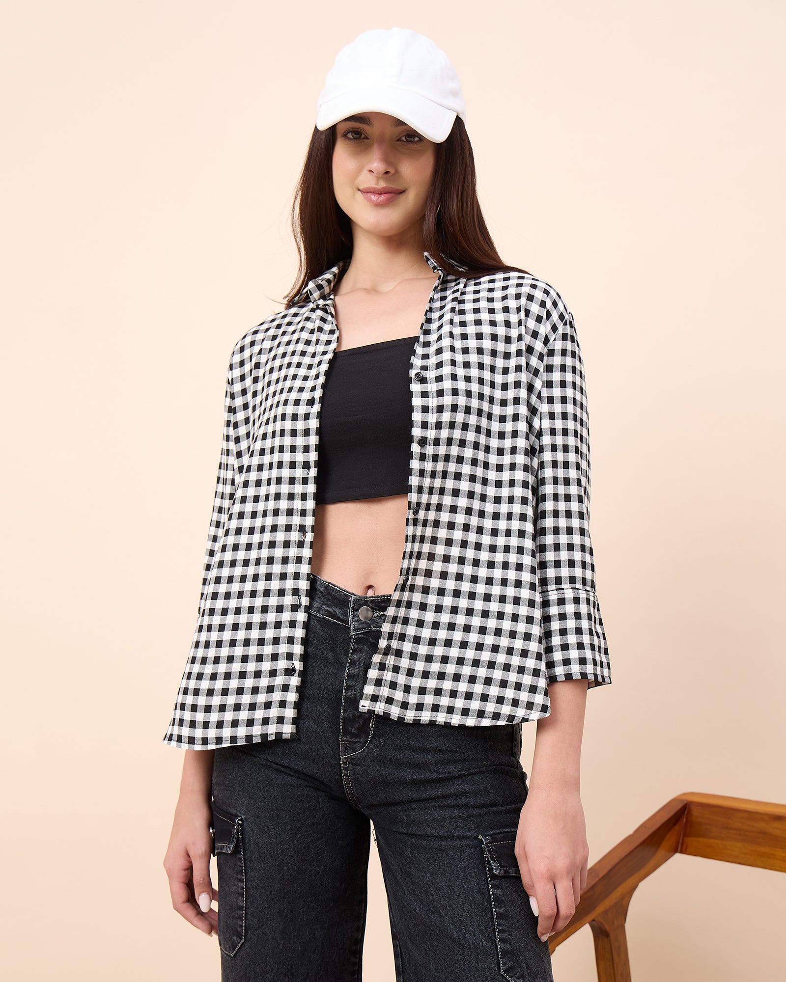 Chimpaaanzee Women Black & White Oversized Shirt