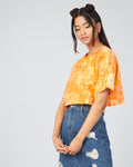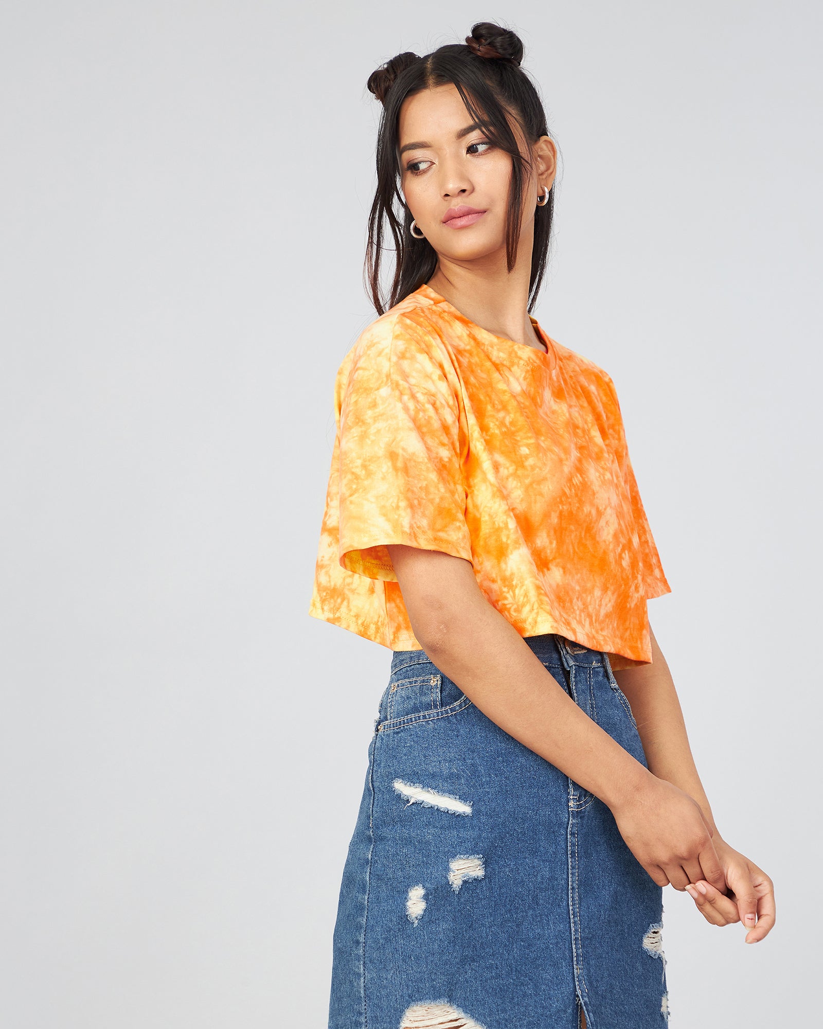 Chimpaaanzee Women Yellow Tie & Dye Loose Fit Crop T-shirt