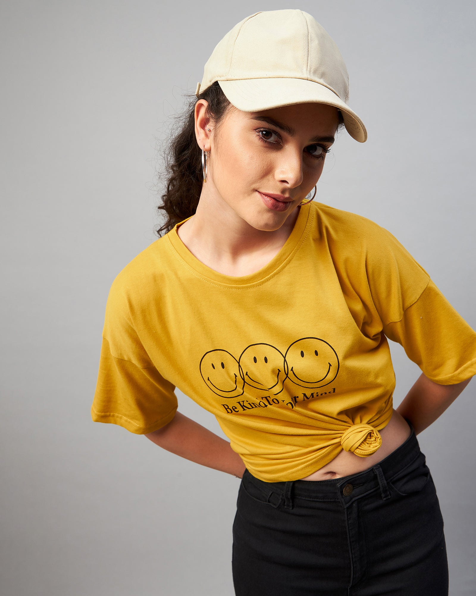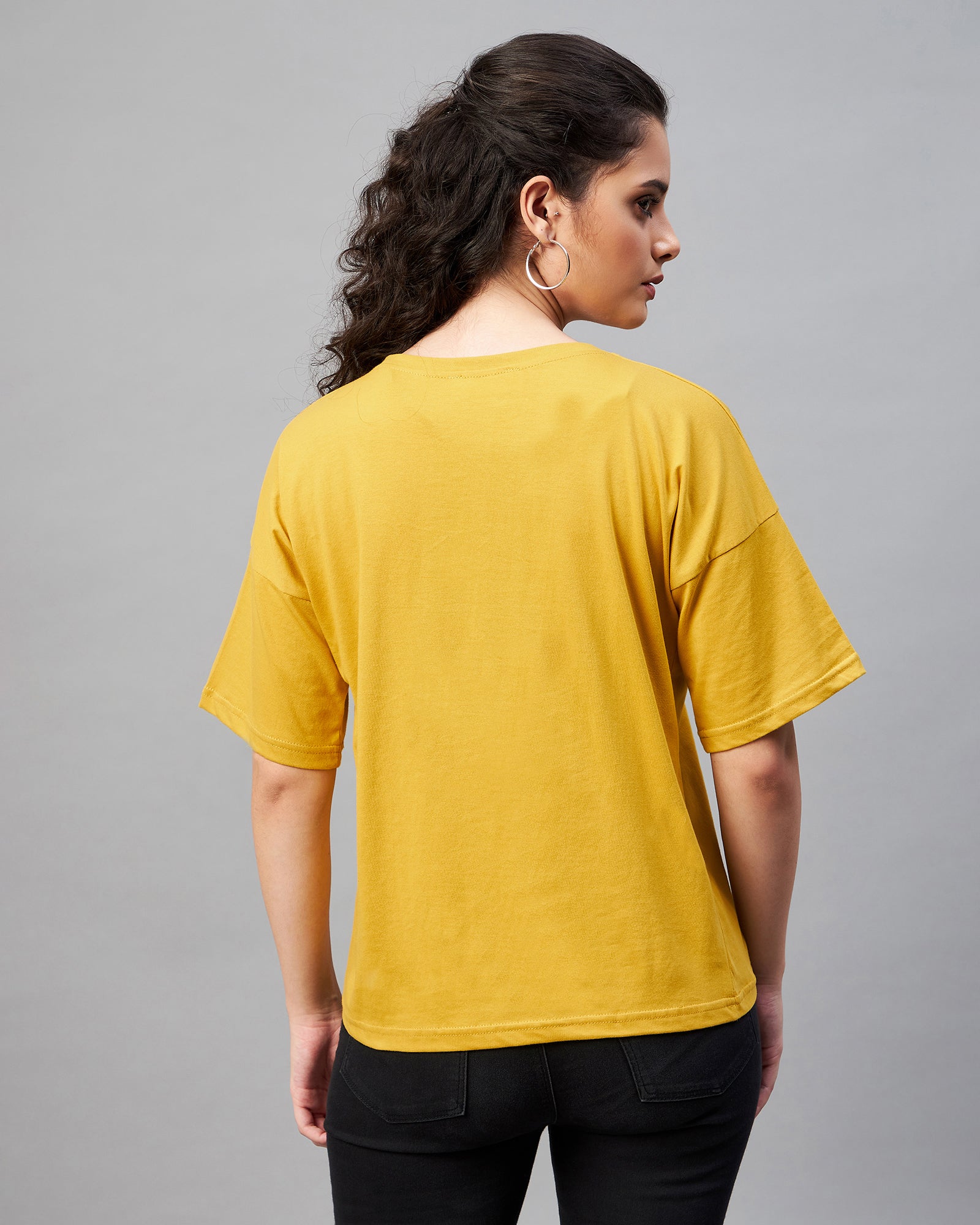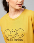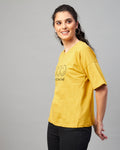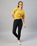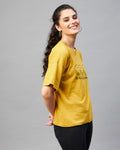 Chimpaaanzee Women Yellow Typography Printed Half Sleeve Regular T-shirt