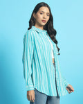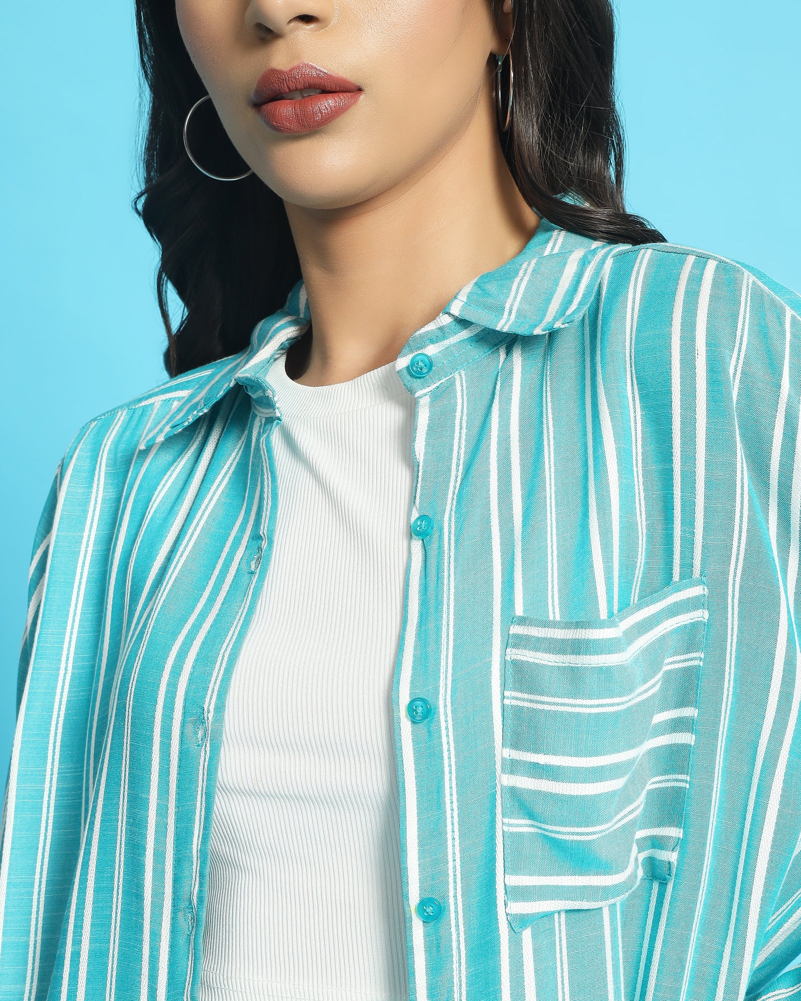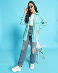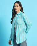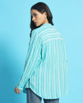 Chimpaaanzee Women Skyblue & White Oversized Shirt